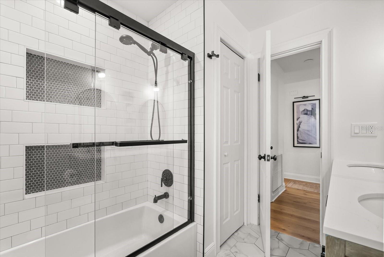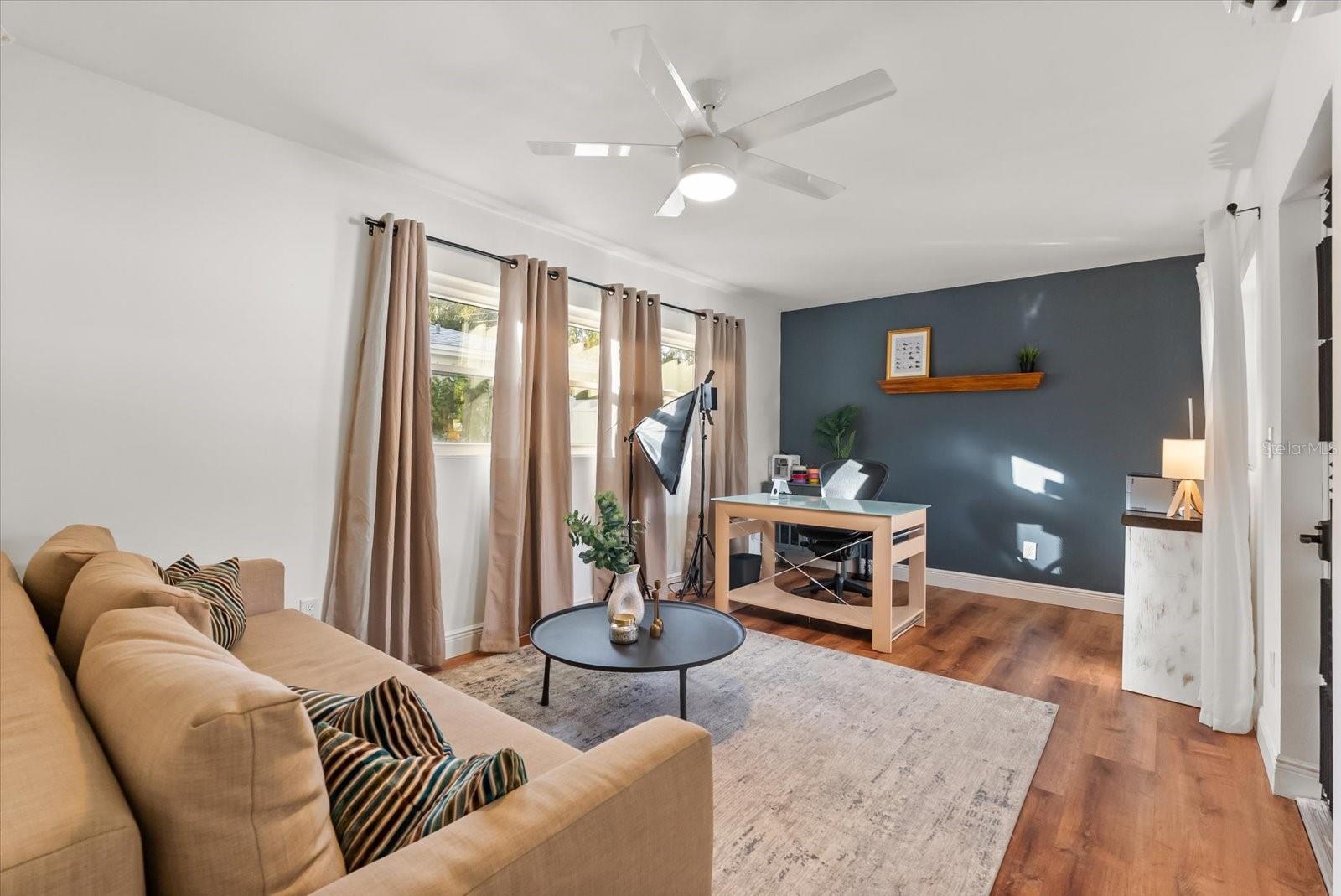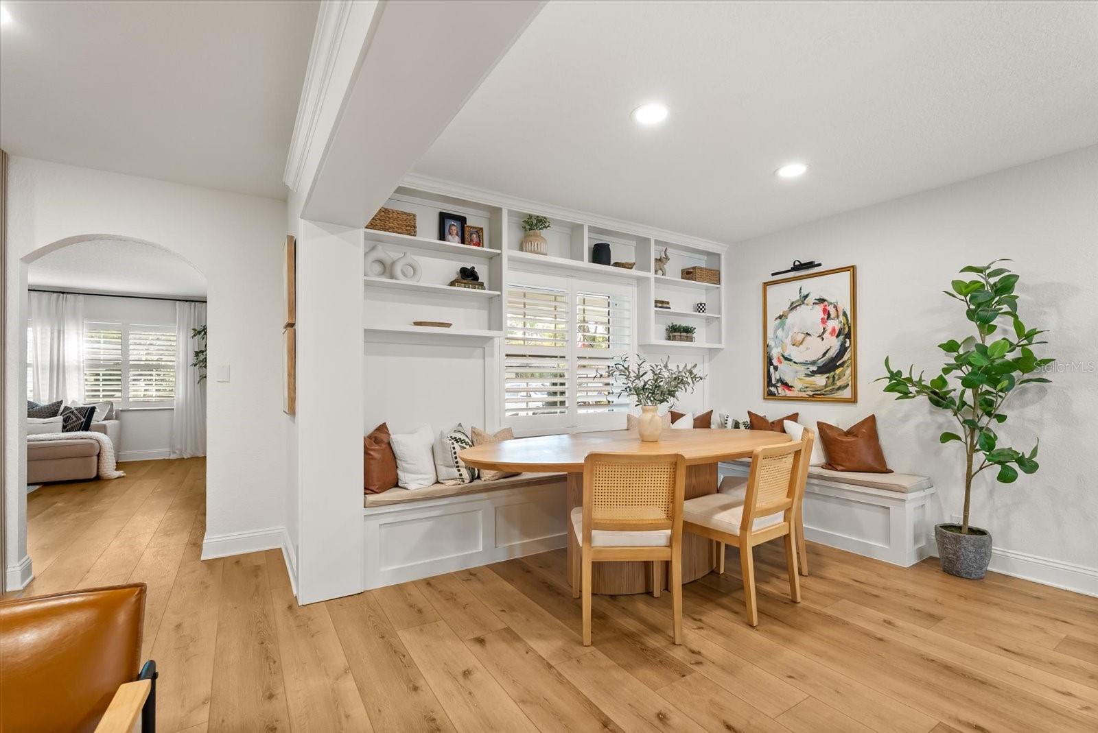 Under contract-accepting backup offers. Expect to be impressed with this stylish renovation on a cozy quiet street in the desirable neighborhood of Dommerich in Maitland. This three-bedroom, two-bath home is 2,216 square feet with a separate flex space, ideal for a home office, studio or transform it into guest suite. A modern layout with generous spaces and consistent neutral finishes make it feel expansive and it beams with light. Kitchen is sleek with white clean lined 42-inch cabinetry, subway tile backsplash, quartz counters, center island that seats four and is a great workspace, stainless appliances with gold accents making it shine. Kitchen also features a built-in dining nook adding to the charm. Custom-designed built-ins add storage to living room and electric fireplace is the showstopper with slatted wood warming the additional family room. Baths are completely renovated with fresh appointments and timeless selections. So many updates to this home which include luxury vinyl plank flooring in 2024, 2022 new windows, 2022 new roof, 2022 new HVAC and ducts, custom closet systems, plantation shutters, white vinyl fence 2023, mini-split in flex space, new sod and landscaping 2025, pool deposit is paid and permit acquired, new owner can assume contract and start right away if they wish. Every detail is accounted for in this incredible move-in-ready home. Zoned for fantastic schools Dommerich Elementary, Maitland Middle and Winter Park High.