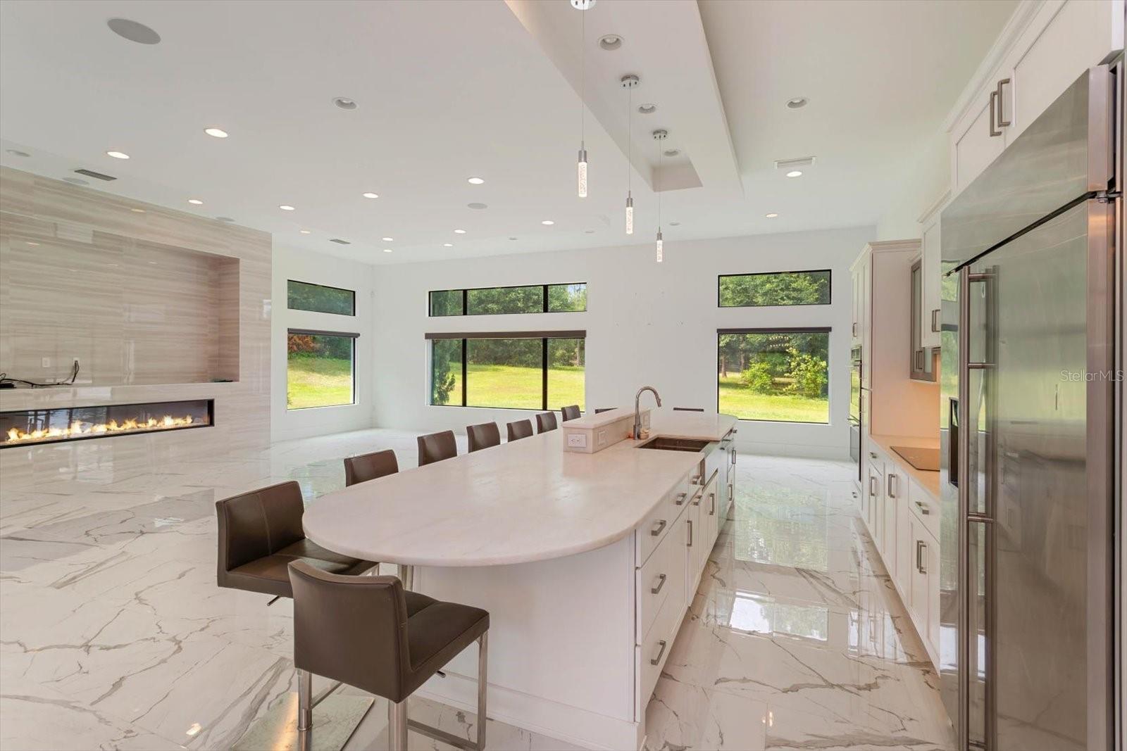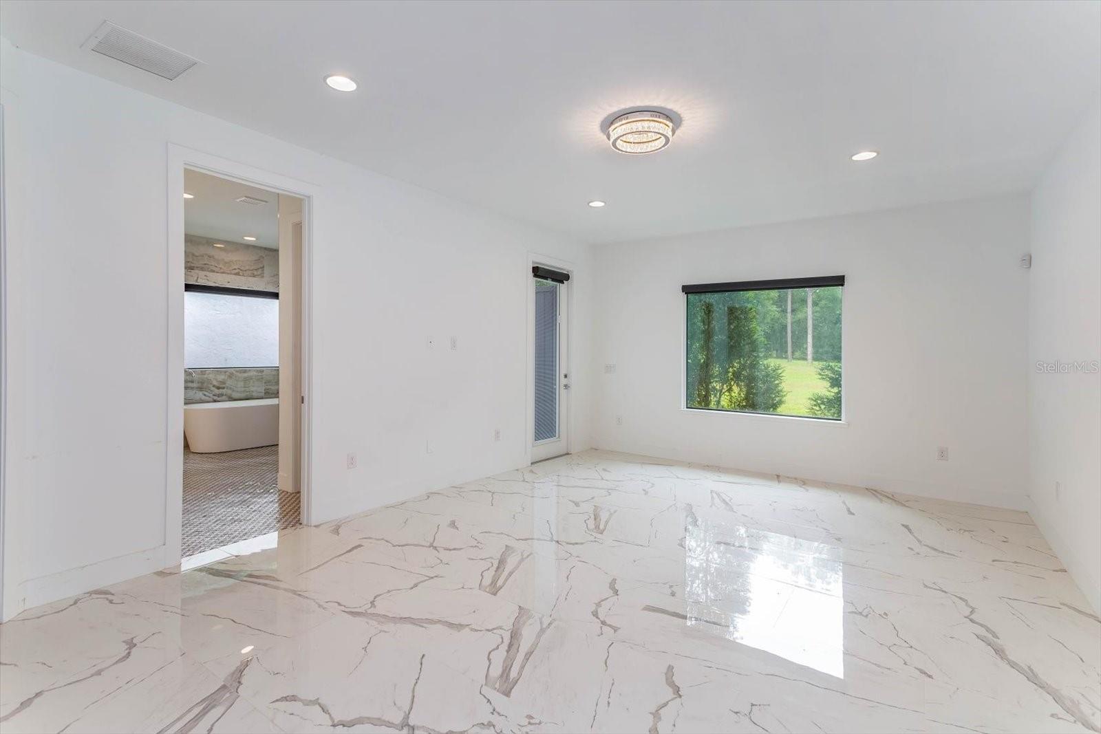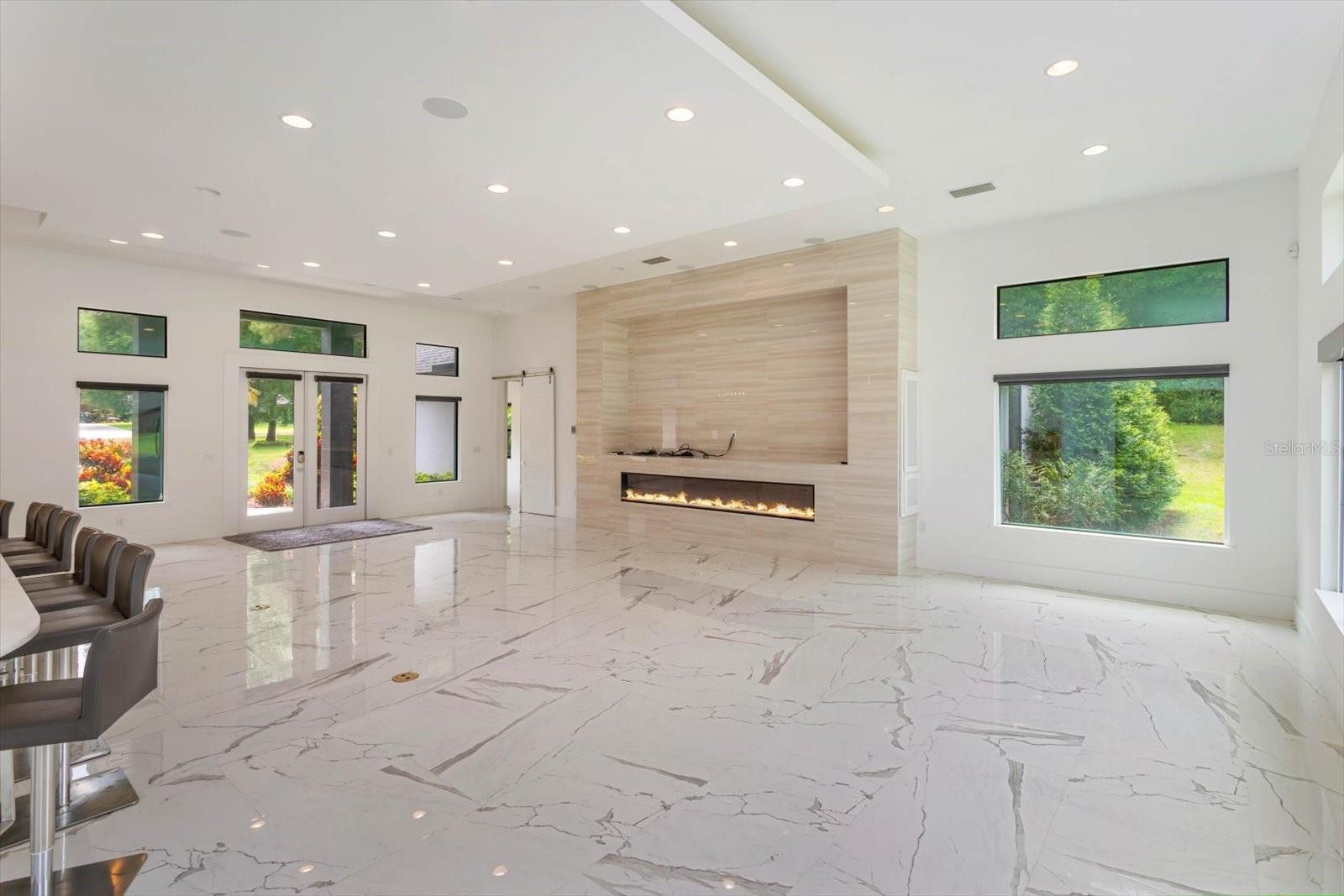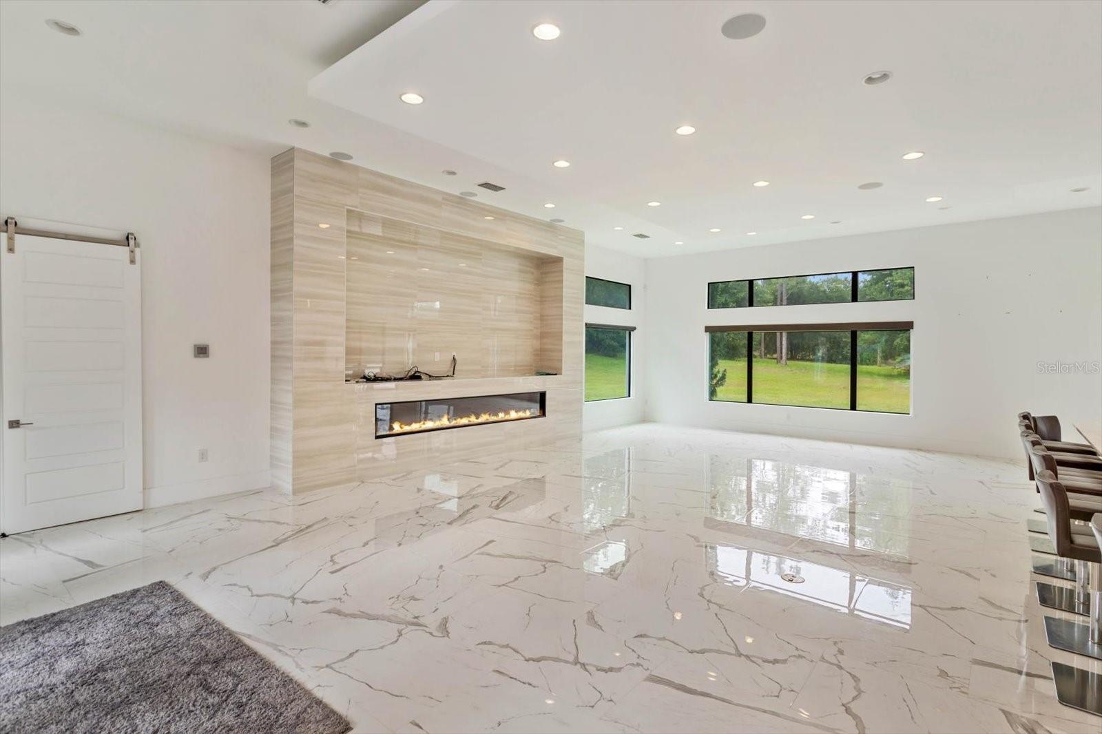 A unique Community in that you can have multiple out buildings such as car collector garage, guest house, barn, etc. Existing 4 car garage built with extremely high ceilings for 8 cars in total or A/C mezzanine space and/or storage. Light and bright, open concept, transitional home, to include equestrian uses allowed. Home has 4 bedrooms and 4 baths the primary bath flooring is Italian mosaics with modern open shower and tub and the bedroom has exterior private walled courtyard for sunning or plants. The extremely large family room/kitchen combo is anchored by a custom fireplace with led lighting and surround sound. Innovative cloud ceilings with led lighting and level 5 drywall. Kitchen includes top of the line appliances with stone bar seating for 10+. Carrera porcelain throughout entire home. Hybrid hot water system, concrete drive was constructed with the ability to entertain a large gathering of guests and also accommodate RV Parking in rear of home. Home is ready for pool as was designed for when built. Home is priced at the appraised value!!