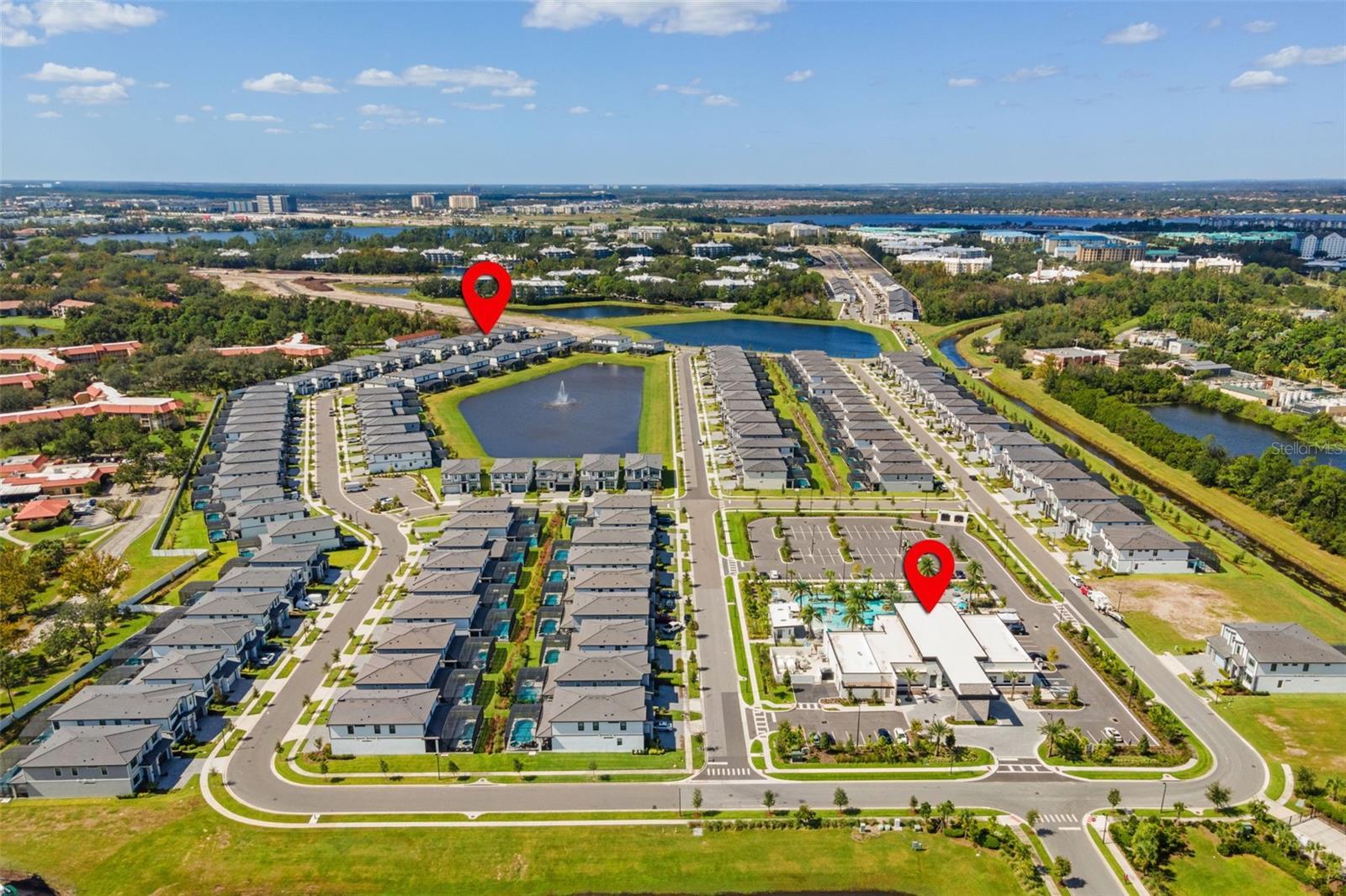 Don’t miss this luxury vacation home opportunity at Paradiso Grande! This remarkable new construction with PREMIUM LOT, never occupied features an 8-bedroom, 8-bathroom Lagoon II floor plan, complete with an inviting loft area perfect for relaxation or entertainment. Located in the premier vacation community by Park Square Homes in Orlando, you’ll be just minutes from SeaWorld, Universal Studios, premium outlets and Disney. This property boasts amazing features, including additional laundry rooms on each floor, two refrigerators and dishwashers, granite countertops, gray cabinets, and a screen-enclosed pool. The seller has added numerous upgrades during construction, such as a Summer Kitchen Pre-Plumb with hot/cold water, drain pre-plumb, exterior J-box, and gas drop to elevate your outdoor entertaining experience. The upgraded 15x30 pool includes a spa and fountains, along with four flush-mount can lights in all bedrooms. Step outside to your private pool area, where you can enjoy stunning water views. Key features include an EV car charger and gas heaters for both the house and pool, ensuring comfort year-round. The Summer Kitchen pre-plumb is installed for your convenience. Inside, the open-concept kitchen is a chef’s dream, equipped with two refrigerators, two dishwashers, granite countertops, and elegant gray cabinetry. The first-floor master suite adds convenience, while the transformed 2-car garage doubles as a spacious game room. Paradiso Grande offers exclusive access to the luxurious Aquarius Clubhouse, featuring a resort-style pool, lazy river, café, game room, and fitness center. This property is perfect for both short-term rentals and long-term living. Don’t miss your chance to own this exceptional property in the heart of Orlando!