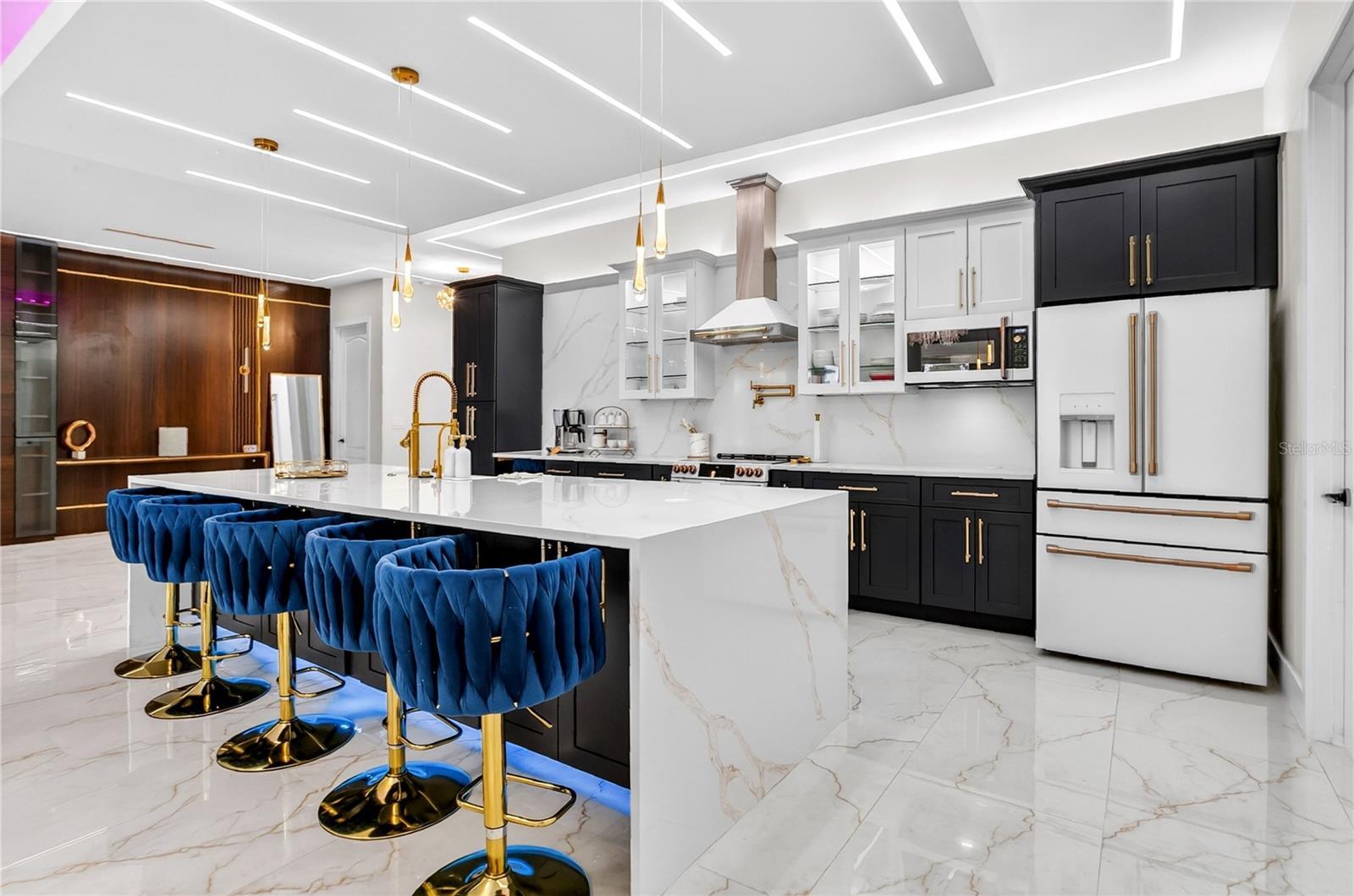 This custom home at 18965 Sheldon St, built in 2024, offers modern living with refined design elements. The residence features four bedrooms and four bathrooms, providing ample space. The kitchen is equipped with GE Cafe appliances, known for their customizable options and professional-inspired features, allowing for both aesthetic appeal and functional performance. Custom light fixtures are installed throughout the home, contributing to a unique and curated ambiance. Further enhancing the property's appeal are integrated built-ins, offering tailored storage and display solutions. The exterior of the home includes a contemporary heated/saltwater pool and spa, designed for modern leisure and entertainment.