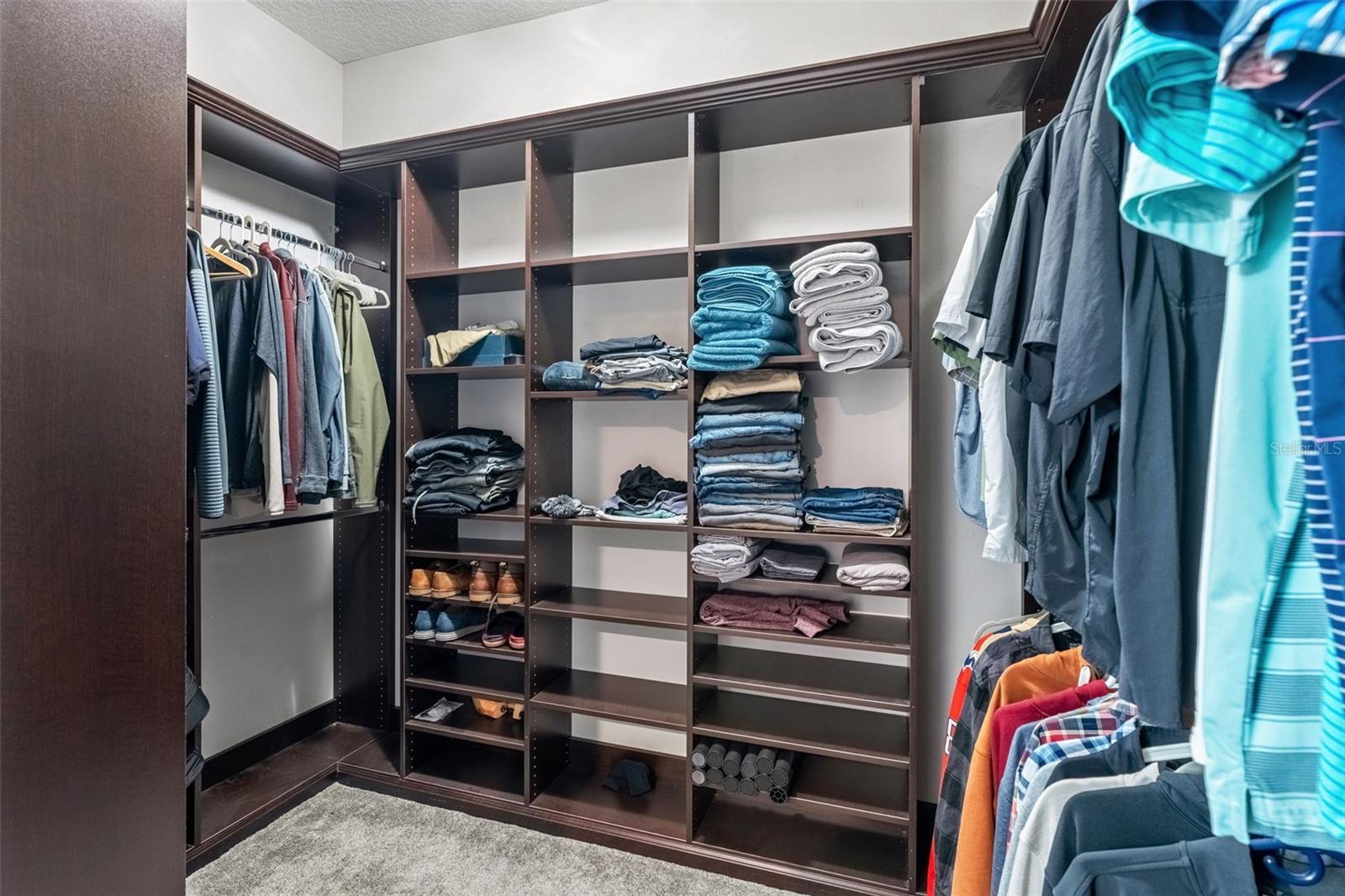 - Built-in Features, Ceiling Fans(s), Crown Molding, Eat-in Kitchen, High Ceilings, Living Room/Dining Room Combo, Open Floorplan, Primary Bedroom Main Floor, Solid Surface Counters, Solid Wood Cabinets, Split Bedroom, Thermostat, Walk-In Closet(s), Window Treatments