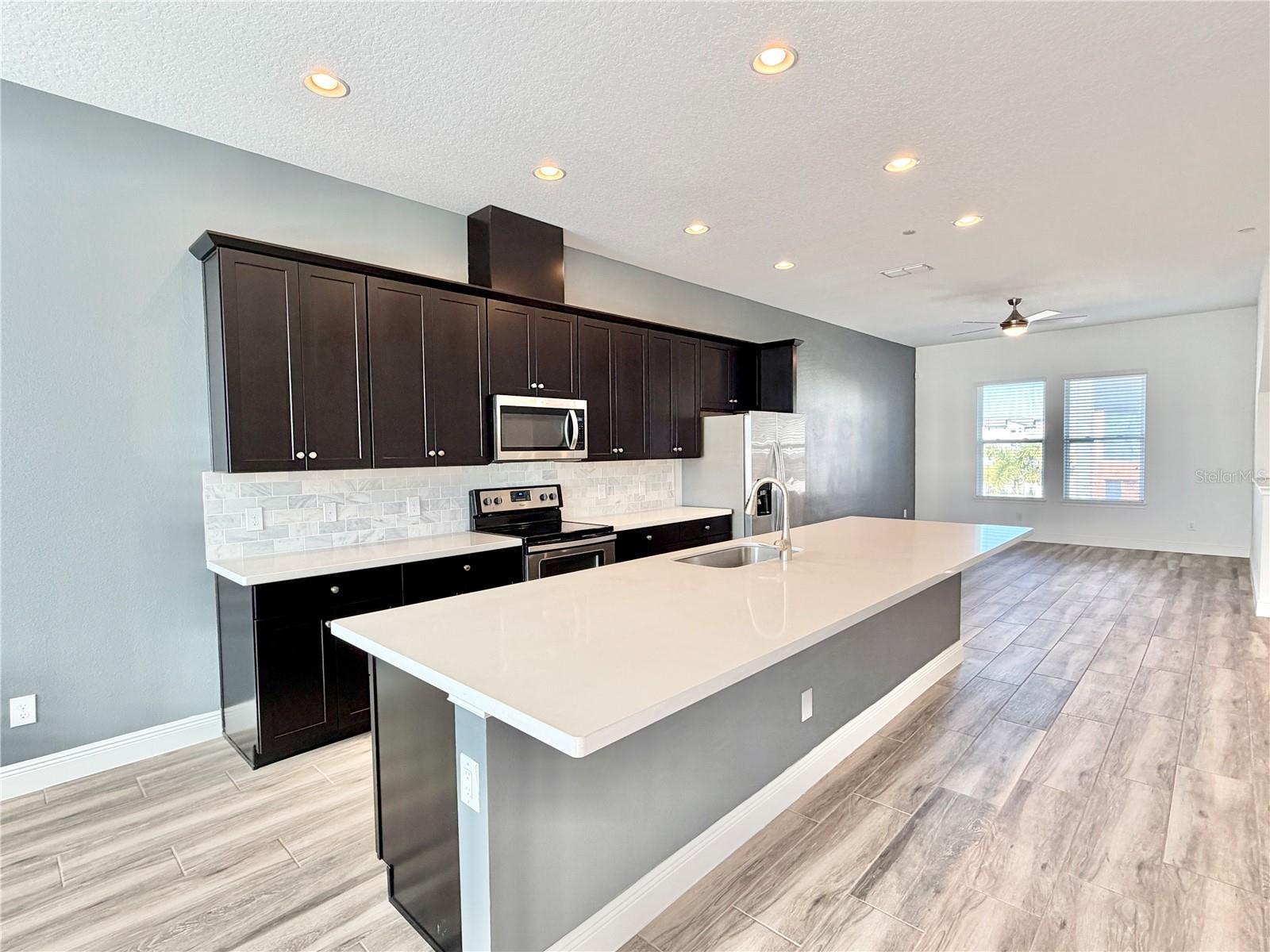 - Ceiling Fans(s), Eat-in Kitchen, High Ceilings, In Wall Pest System, Kitchen/Family Room Combo, Open Floorplan, Other, PrimaryBedroom Upstairs, Smart Home, Solid Surface Counters, Solid Wood Cabinets, Thermostat, Walk-In Closet(s), Window Treatments
