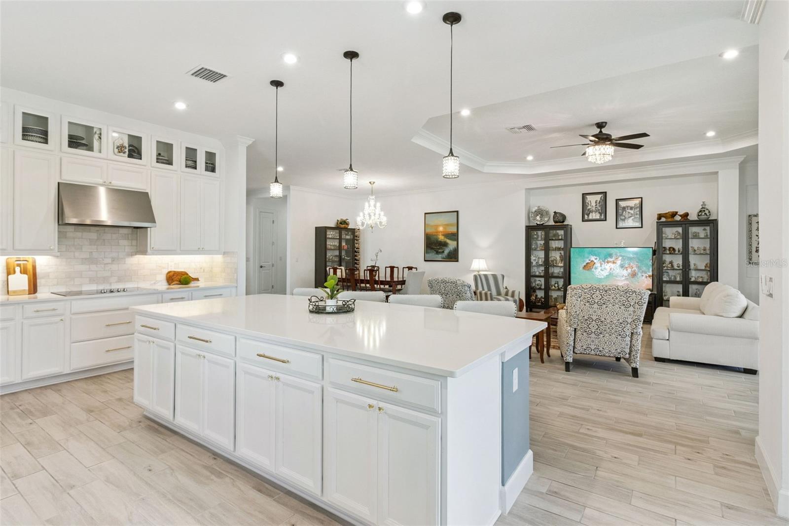 - Ceiling Fans(s), Coffered Ceiling(s), Crown Molding, Kitchen/Family Room Combo, Living Room/Dining Room Combo, Open Floorplan, Primary Bedroom Main Floor, Solid Surface Counters, Stone Counters, Thermostat, Tray Ceiling(s), Walk-In Closet(s), Window Treatments