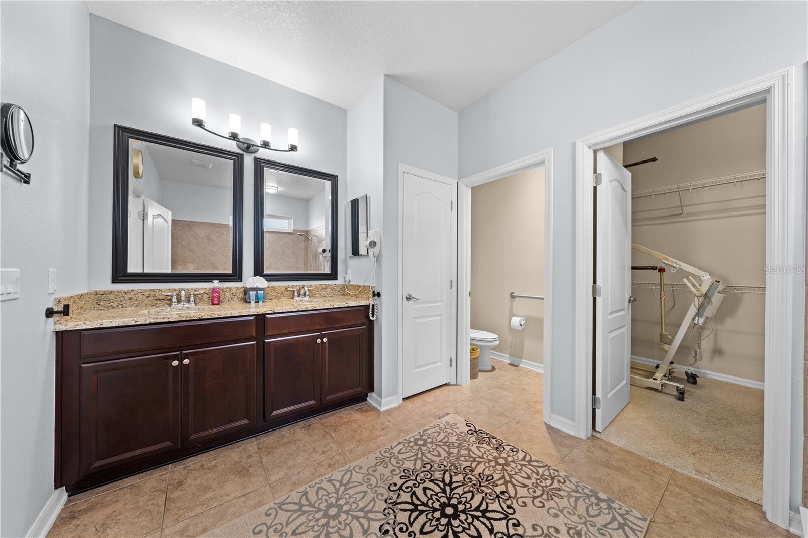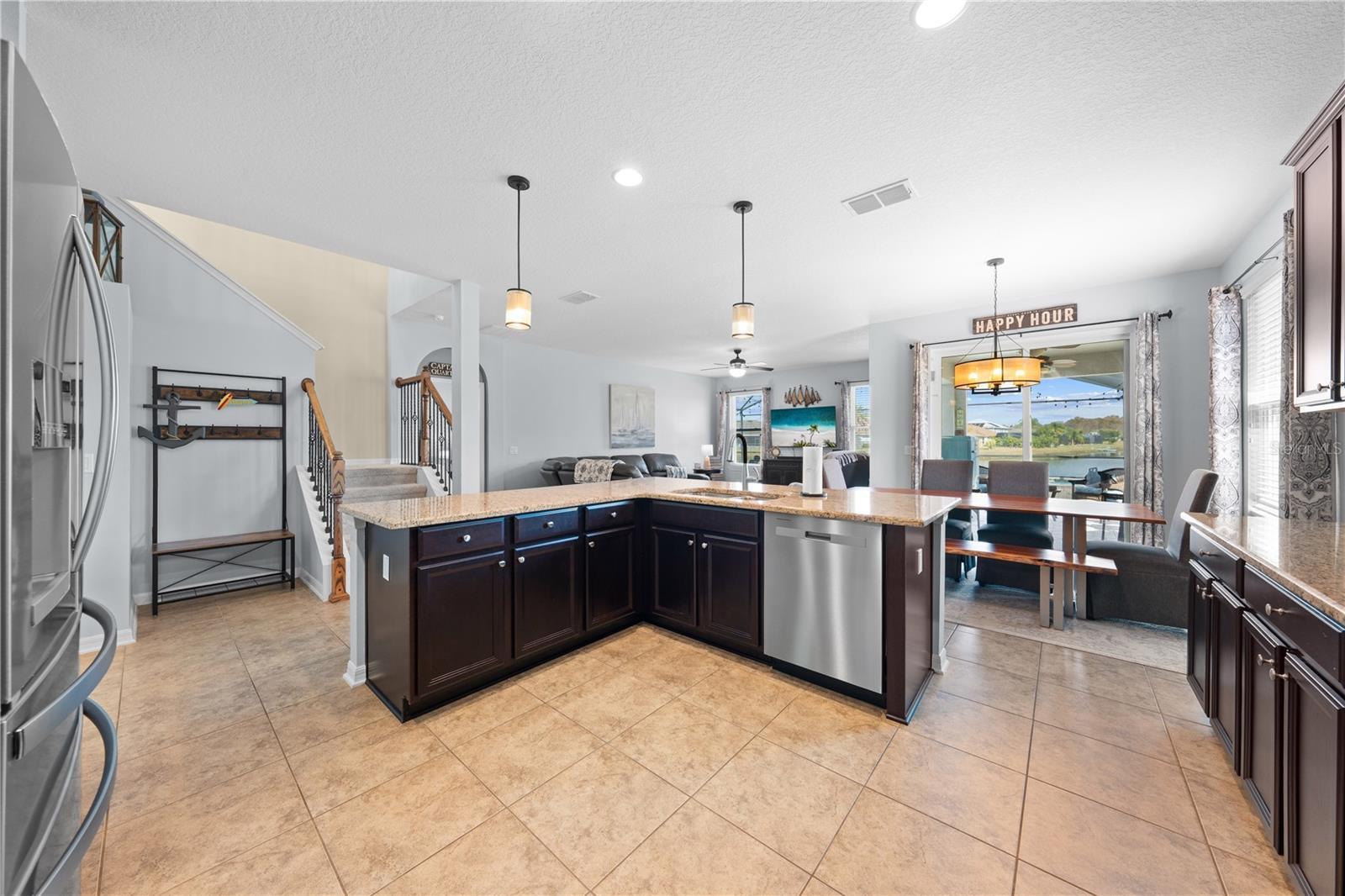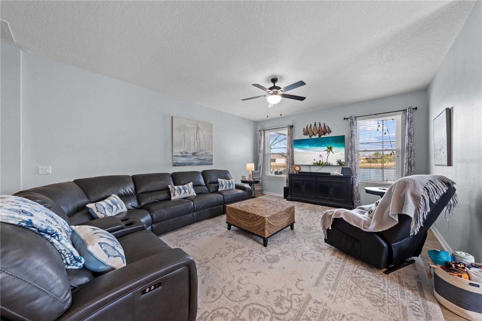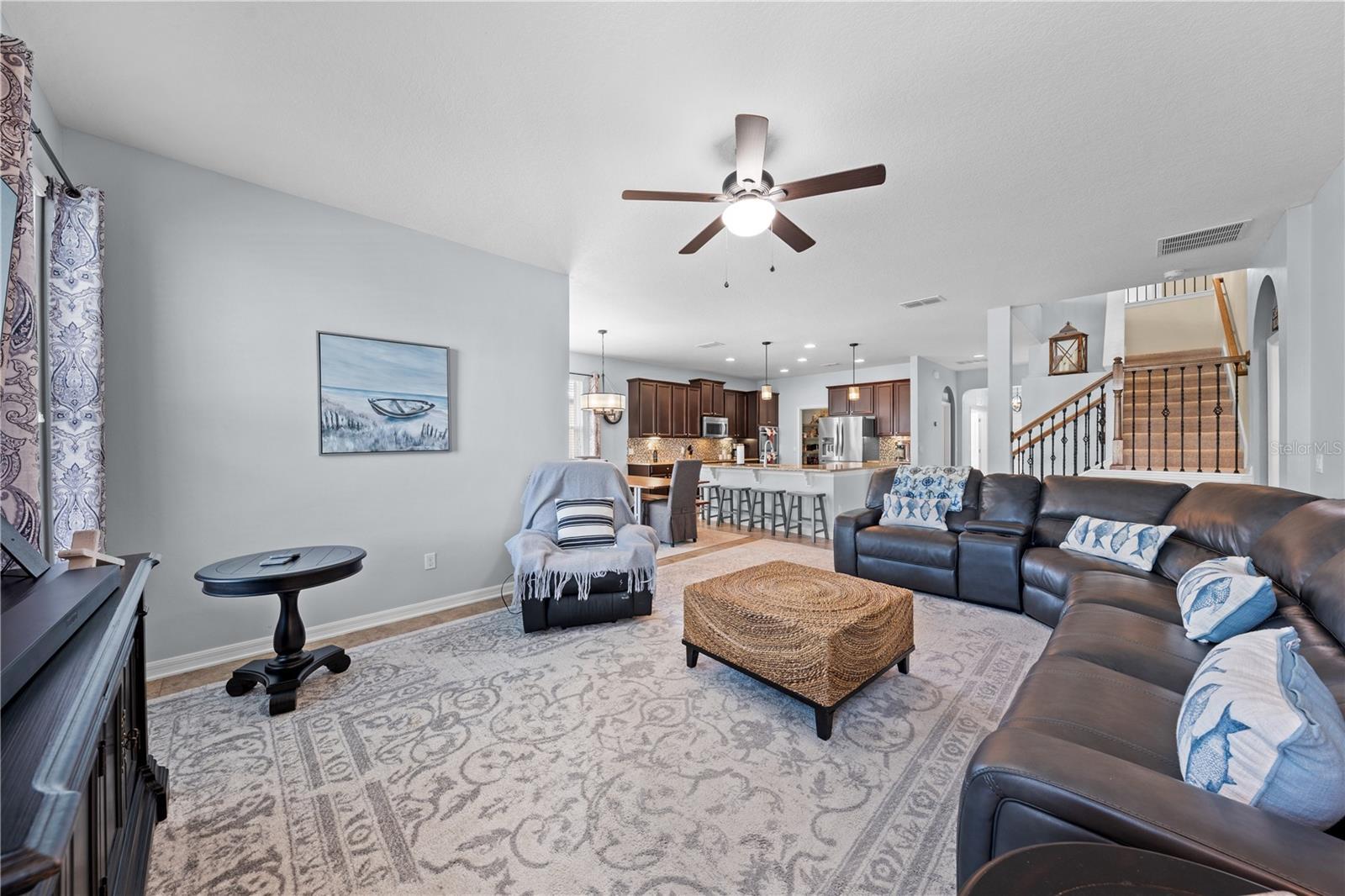 - Ceiling Fans(s), Crown Molding, Eat-in Kitchen, Kitchen/Family Room Combo, Open Floorplan, Primary Bedroom Main Floor, Solid Wood Cabinets, Stone Counters, Thermostat, Walk-In Closet(s), Window Treatments