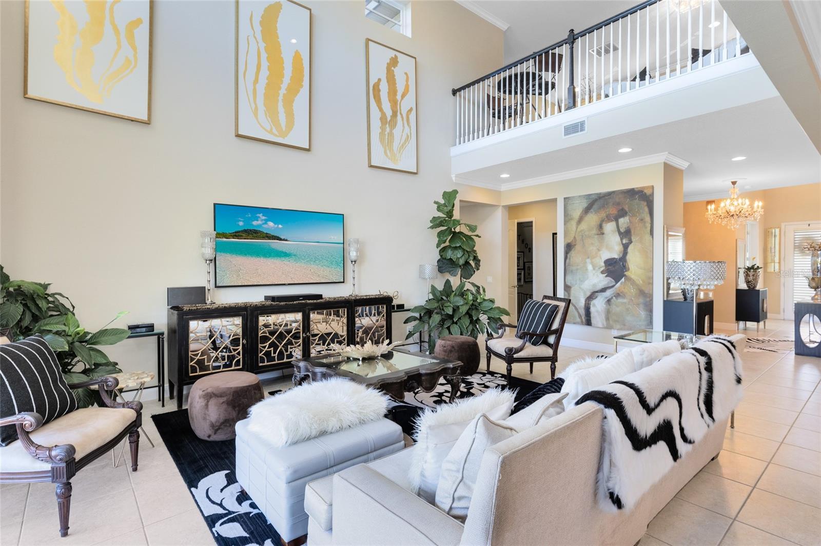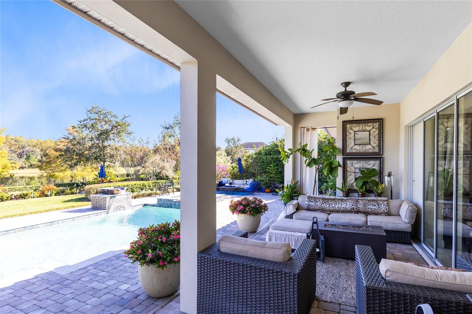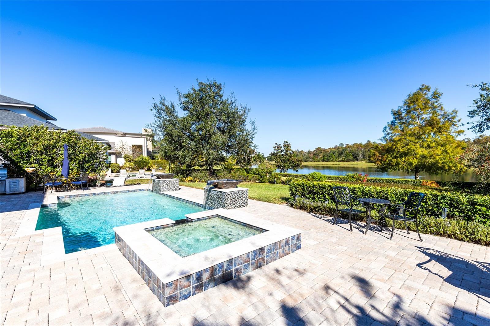 Welcome to this exceptional lakefront residence in Laureate Park, perfectly positioned on one of the larger and most coveted water lots in the community, offering sweeping lake and conservation views that feel both rare and serene. Thoughtfully designed for entertaining and everyday luxury, this Taylor Morrison home spans over 4,700 square feet and blends refined interiors with seamless indoor outdoor living. From the moment you enter, soaring ceilings and abundant natural light set the tone. The open floor plan flows effortlessly through the expansive great room into a chef’s kitchen featuring dual oversized islands, solid wood cabinetry, stone countertops, premium appliances, and a butler’s pantry, creating the perfect backdrop for hosting gatherings both large and intimate. Walls of windows frame the water beyond and lead directly to the private backyard garden oasis, where resort style outdoor living awaits. Step outside to enjoy a covered patio with outdoor kitchen, a custom pool with raised spa and water features, and an expansive paver deck, ideal for entertaining or unwinding while taking in tranquil lake views. Start your mornings with coffee and breathtaking sunrises over the water, and end your evenings surrounded by nature and privacy rarely found in Laureate Park. The first floor primary suite is a true retreat, offering peaceful water views and a spa inspired bath with soaking tub, dual vanities, walk in shower, and generous closet space. A private office and formal dining room complete the main level, adding flexibility and elegance. Upstairs, a spacious loft overlooks the great room below and opens to a covered balcony, creating a second living space with an indoor outdoor feel. Additional bedrooms and a dedicated media room with a full ensuite bath make this level ideal for guests or extended living. Laureate Park delivers a lifestyle unmatched in Lake Nona, with access to the Aquatic Center, resort style pools, LP Fit gym, and over 44 miles of trails, all just minutes from Medical City, Nemours, the VA Hospital, the USTA National Campus, dining, shopping, major highways, and Orlando International Airport. This is more than a home. It is a front row seat to lakefront living at its finest.