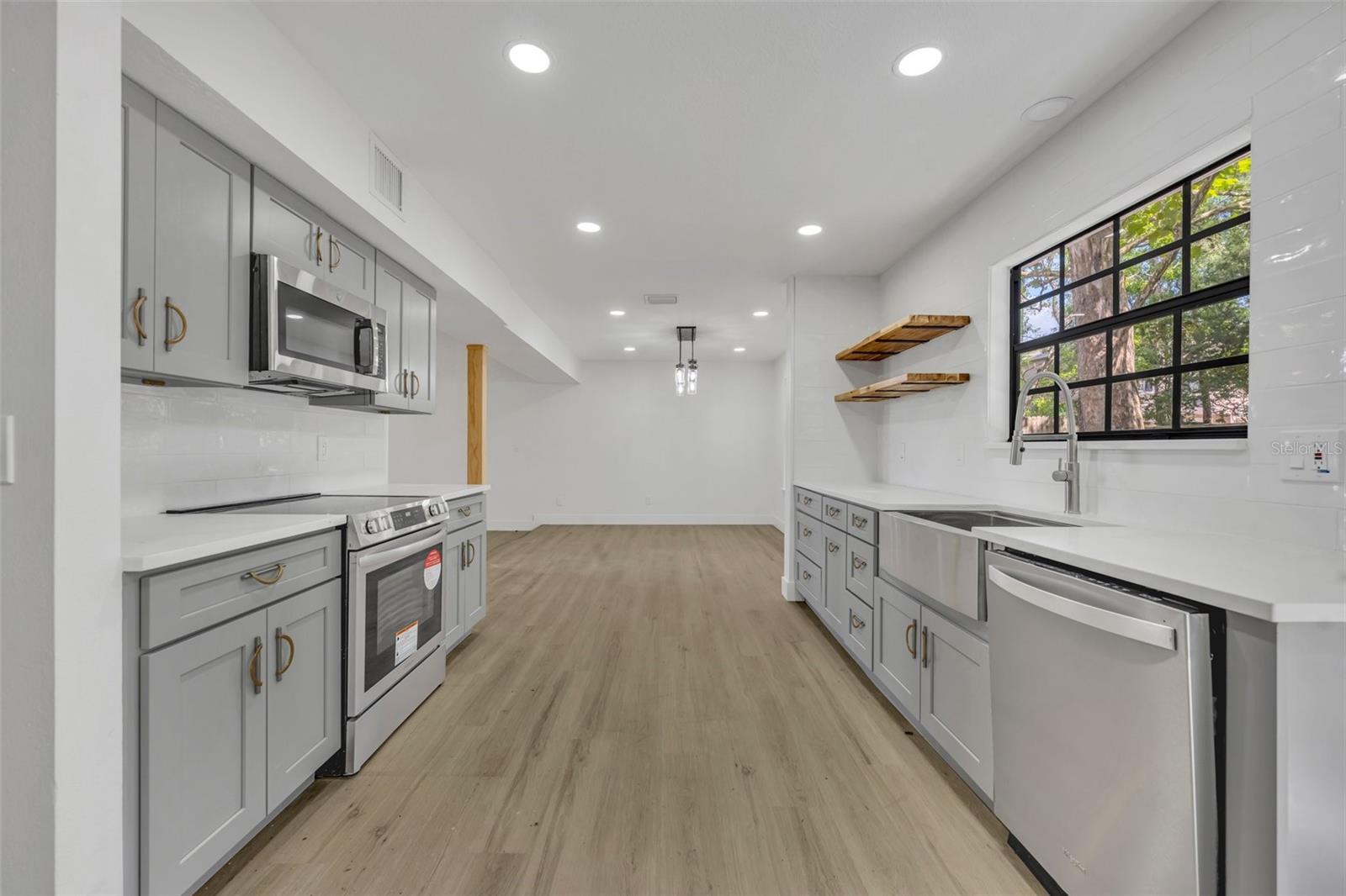 - Ceiling Fans(s), Living Room/Dining Room Combo, Open Floorplan, Solid Surface Counters, Vaulted Ceiling(s)