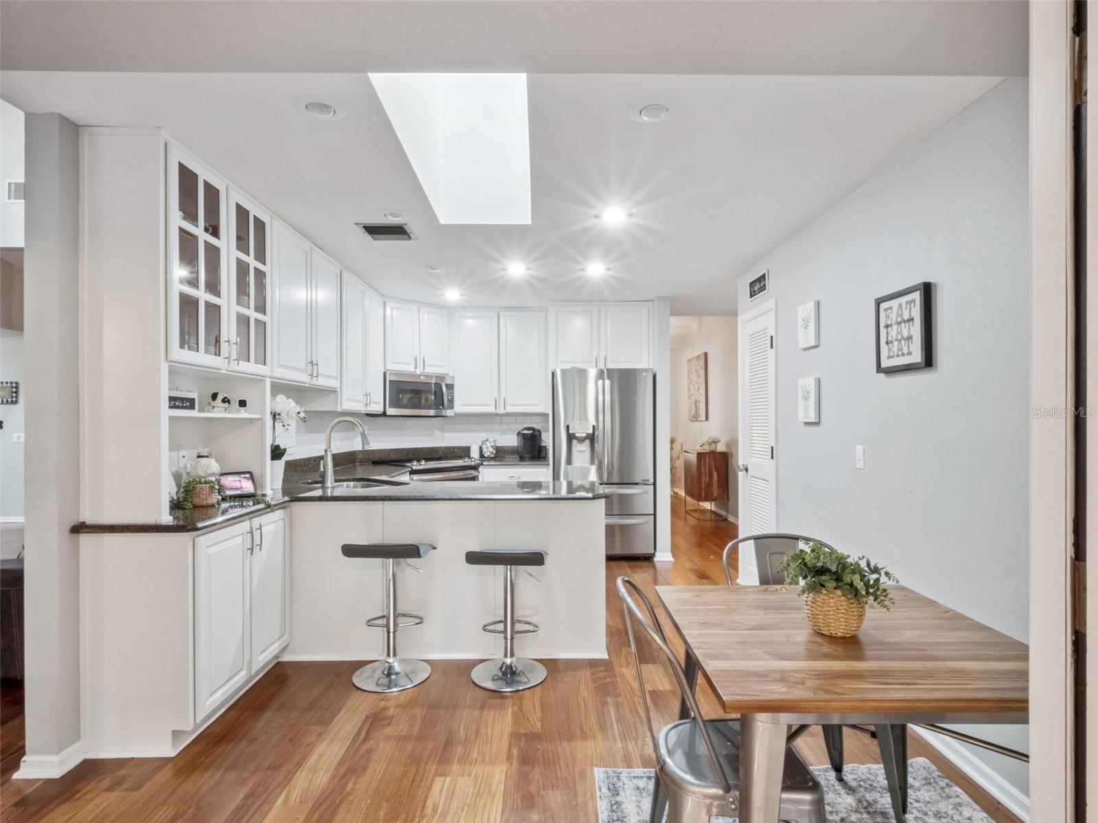 Under contract-accepting backup offers. Tucked inside Springs Landing in Markham Woods, this beautifully updated one-story home blends comfort, character, and space in all the right ways. Enter through the double front doors to wood plank ceilings and sunlight pouring in through skylights and oversized picture windows. The heart of the home is the great room, where a stunning floor-to-ceiling brick fireplace creates the perfect backdrop for cozy nights and easy gatherings. Engineered wood floors and plantation shutters bring a polished, welcoming feel throughout the main living areas. The kitchen shines with granite counters, stainless-steel appliances, and a casual eat-in space, and it flows into a large rear sunroom—a flexible space for entertaining, movie nights, a playroom, or peaceful mornings with coffee. The primary suite is exceptional, featuring Closets by Design and a rare 14x20 study/library with built-ins and a workstation. The en-suite bath offers dual sinks, a spa tub, and a separate shower—your own private retreat. Outside, the over half-acre lot feels like a nature preserve—enjoy it as-is with wildlife and mature vegetation, or clear it for a pool and dream backyard. Recent upgrades include a new roof/skylights (2023), seamless gutters (2019), and fresh paint inside and out (2023–2024). Enjoy easy access to I-4, excellent Seminole County schools, and neighborhood amenities: pool, clubhouse, tennis, playground, and fishing pond.