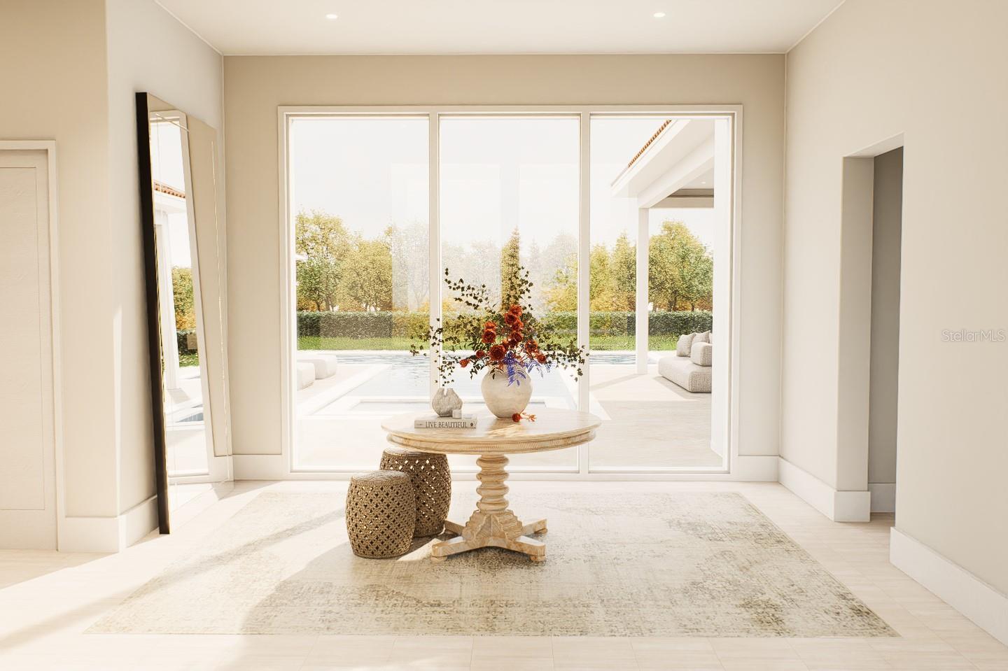 Under Construction. Welcome Home! Parade of Homes 2026 nominee - This remarkable two-story custom home at 7958 South Park Place in Orlando, features a total living area of 4,839 square feet and total area under roof of approximately 6,315 square feet and was built to impress! The first floor contains approximately 3,286 square feet of open living space - full of natural light and with the primary bedroom on the first floor. With oversized windows, travertine flooring throughout, primary bathroom with his and hers shower and toilets, the home was built with every detailed thought to provide comfort, quality of life, and luxury living. The residence offers five bedrooms and five-and-a-half baths. The main level includes the kitchen, pantry, living and dining areas, primary suite, one additional bedroom, laundry room, IT room and a dedicated office or study. The second level includes three bedrooms, baths serving those bedrooms, a loft or flex area, laundry and mechanical space. The residence includes a three-car garage, configured as a two-car garage on one side of the house and a separate single-car garage on the other with an access to the primary bedroom. Exterior living spaces include a large covered and screened main lanai with summer kitchen and outdoor fireplace, a private lanai off the primary suite and a covered front porch. The structure is built on a concrete stem wall foundation with insulated concrete walls, with a wind load design of over 170 miles per hour. High-quality, energy-efficient Andersen windows and doors are provided throughout the home, creating a safe, quiet and comfortable living space. A concrete tile roof with a peel-and-stick underlayment provides exceptional protection from the elements. The building envelope incorporates a high-performance insulated concrete wall assembly (ICF) with a high-performance insulated roof, intended to moderate interior temperatures, reduce heat transfer and improve overall comfort. The two HVAC systems utilize a variable speed inverter hybrid technology, resulting in reduced energy consumption without sacrificing comfort. Since the home is so well sealed, additional dehumidification systems were added to each air-conditioning system to control humidity and increase comfortability. The home also comes equipped with a 16.91-kilowatt solar PV array to offset electricity consumption, and a whole-home propane backup generator with an automatic transfer switch during power outages. The home includes propane gas, supplying a number of appliances including a gas cooktop in the kitchen, outdoor grill, pool/spa heater, two tankless hot water heaters and a whole home backup generator. The kitchen is designed with an oversized island, Sub-Zero double ovens, Sub-Zero refrigerator and freezer, a walk-in pantry, a bar/wine area with dual wine refrigerators and a dedicated coffee station. The main lanai includes a large summer kitchen with a 42-inch grill and hood. Interior features include level 5 drywall finish, solid core doors, large windows, zero-entry showers, granite/quartz countertops, Sub-Zero appliances, large format natural stone flooring, two laundry rooms, and additional insulation in select areas to enhance sound control between rooms and living spaces. The residence is designed to impress for distinguish buyers who enjoys quality, comfort, durability, energy efficiency, and storm resilience, to support long-term performance and livability.