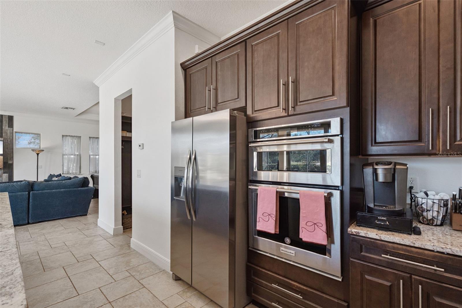 - Ceiling Fans(s), Coffered Ceiling(s), Crown Molding, In Wall Pest System, Kitchen/Family Room Combo, Living Room/Dining Room Combo, PrimaryBedroom Upstairs, Stone Counters, Walk-In Closet(s), Window Treatments