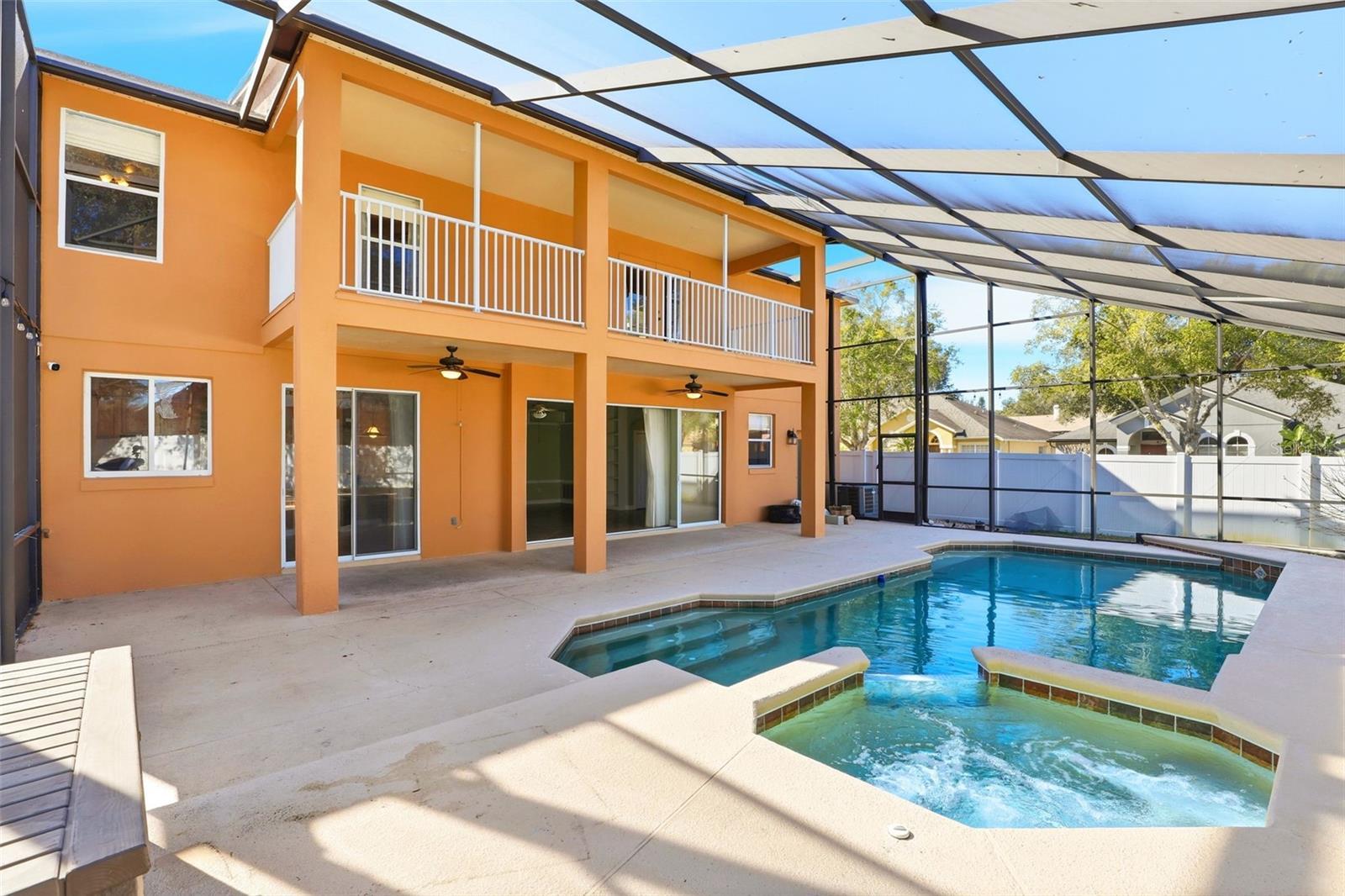 Welcome home to luxurous living in the coveted Central Florida community of Tuscany at Lake Mary. With 3,402 square feet, this home exemplifies the ideal layout to maximize family fun and entertainment. Let's imagine preparing to host a pool party in your dream home to celebrate one of the area's award-winning sports team. You may decide to hop into your golf cart, which is parked in the third bay of your garage, take a spin around the neighborhood, stopping to take a moment to relax at the serene neighborhood lake before heading to the farmer's market or one of the boutique shops to grab a few last minute goodies. As you return to your gated community, you wave to a few neighbors who are taking a leisurely stroll. You enter through your grand entry door, take in the view of the natural light beaming through to your living and dining room. It is at that moment, you notice the pool and spa looks very inviting today. You grab a refreshing drink from your drink fridge and a recipe book from your built-in shelves in the family room, place the bags on the counter between the kitchen and the family room, open the three-panel sliding glass doors, take a seat by the pool to look for your favorite guacamole dip recipe to use the fresh avocados acquired at the farmer's market earlier. You head into the kitchen, grab a few items within your deep storage pantry, place the items on the island, and commence to making a quick breakfast for the family using your Whirlpool appliances. The phone rings and it is your family member informing you that he is boarding the plane and will be arriving in a couple of hours. You run into the laundry room, grab fresh sheets from one of the many storage shelves, head to the office/guest bedroom and dress the Murphy bed. You decide to go upstairs to awaken the family. As you pause on the landing of the stairs, you take a quick look around the circular view to the upstairs, bask in the sunlight entering through the glass windows, and realize that each of the four bedroom doors are open. The family must be in the oversized multi-purpose room enjoying the morning. After morning greetings, you head downstairs and enjoy breakfast at the kitchen table. The family disperses to prepare for the big event. You head upstairs, walk into your massive primary suite, pass through your dual large sinks, and enter into the first of your two walk-in closets to grab your favorite shorts. You would love to take a soak in the garden tub, but there is not enough time. Therefore, you jump into the walk-in shower. Fast forward and the party is a great success. A friend would like to spend the night. As the they are preparing for the nught, you overhear your spouse direct the friend to the bathroom, noting the beautiful double counter and toilet are brand new in their bathroom. You decide to relax on your expansive balcony enjoying the colors of the LED lights on the pool, and reflect on the beautiful day. You fall asleep thinking about your plans to explore an Orlando-area park or enjoy one of the picturesque beaches located within 30 minutes of your home. WAKE UP! This exquisite home could be your reality. Do not hesitate, call today! Note: Vinyl privacy fence (2021), HVAC (2020); Re-roof (2019); Water Heater (2025).