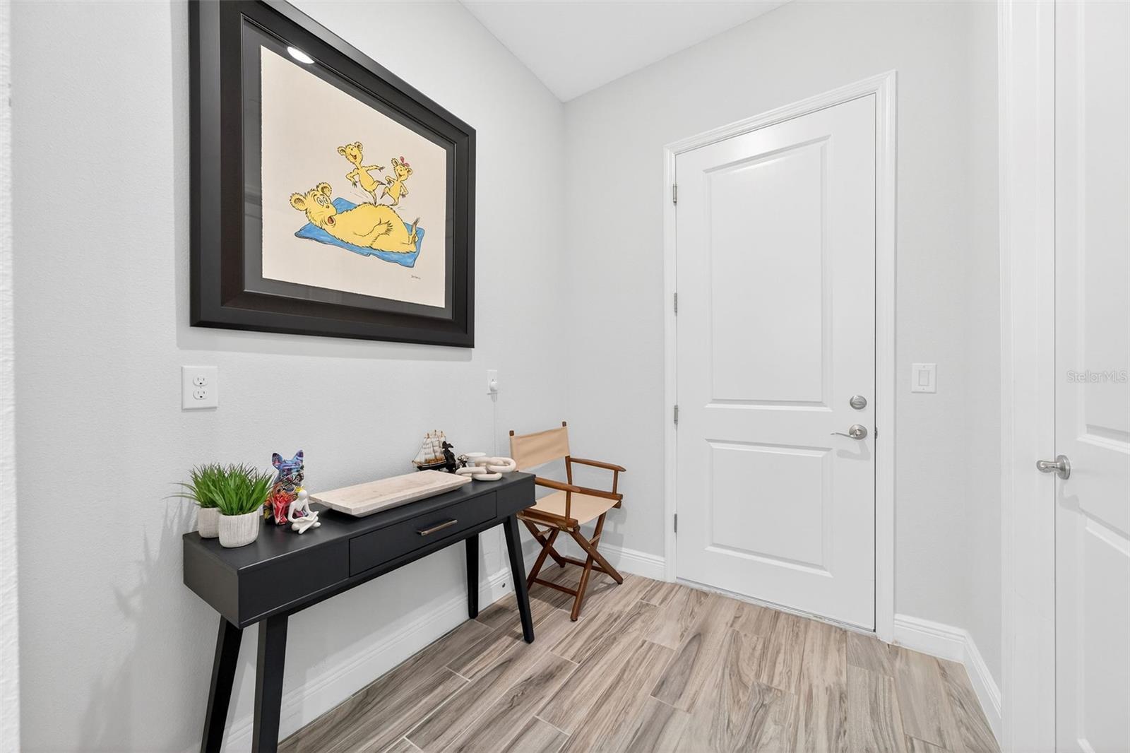 Rare to the market, this large end-unit Laureate Park townhouse offers a 38’ long side paver patio that’s a perfect outside space to wind down or grill-out. With over 2,000 interior sq ft, a wide open floorplan greets you with wood-look tile floors flowing through the spacious great room, dining area, and kitchen (a guest half bath is behind the staircase). A wall of windows with custom wood shutters and a double set of French doors to the side patio makes the space light and bright. Quartz counter tops, breakfast bar, tile backsplash, upgraded cabinets, stainless steel appliances, and a huge walk-in pantry make this kitchen a dream for your home chef. A useful mudroom and separate laundry room (washer/dryer not included) lead to the oversized 2-car garage (there’s even extra parking in the large driveway). The FIRST FLOOR primary bedroom includes an expansive walk-in closet and ensuite bath with double sink, quartz vanity, private toilet room, and tiled walk-in shower. Upstairs off the loft (7’x9’) are two generous size guest bedrooms and a full bathroom with tub/shower combo. Laureate Park is more than just a neighborhood – it’s a lifestyle. HOA covers exterior, roof, high speed internet, ground maintenance, resort style community pool/swim center, and fitness center. Publix is around the corner along with many restaurants and shops, and commuting is convenient with access to the 417 and 428. Other amenities include: dog parks, walking trails, playgrounds, sport courts, tennis, and vibrant community events. Unbeatable location — minutes from Lake Nona Medical City, Boxi Park, USTA, KPMG, Orlando International Airport, and top-rated schools.