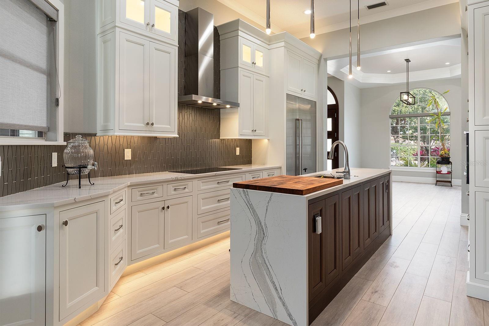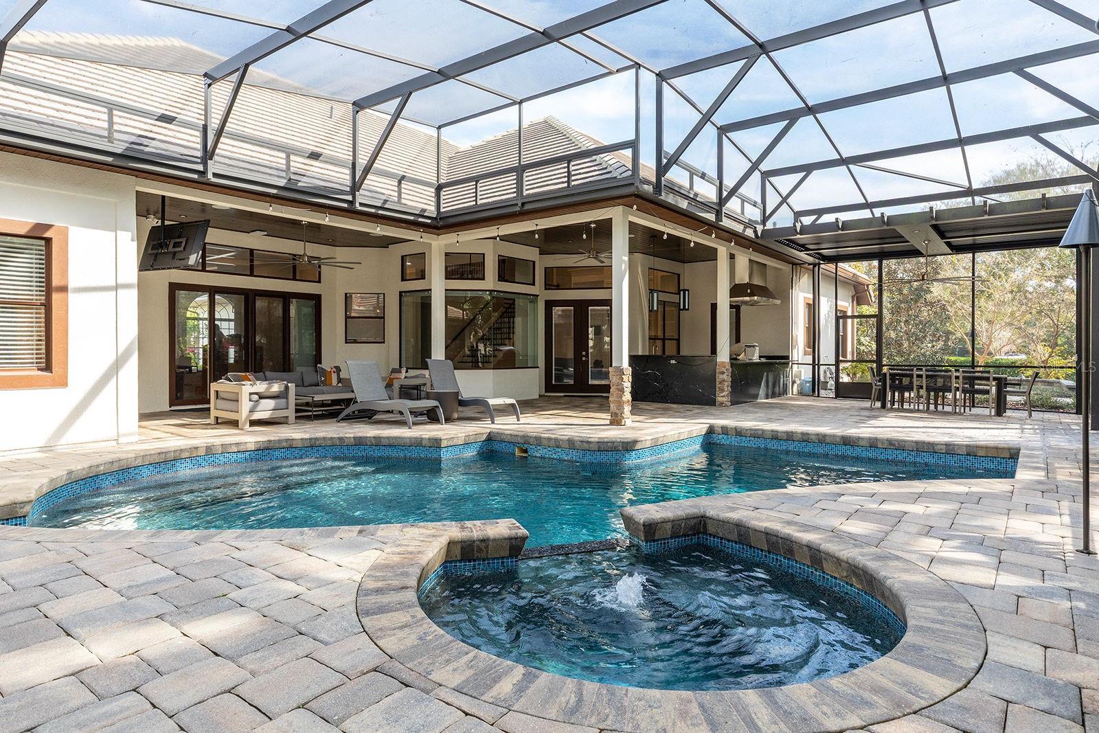Welcome home! Your paradise awaits within the guard-gated community of the Reserve at Heathrow! With more than $1,000,000 in upgrades, this immaculate 4-bedroom, 5.5-bathroom pool home reels you in with its impeccable curb appeal, while its stunning renovations and resort-like backyard ensure you never want to leave. Starting with the heart of the home, the fully renovated kitchen is a chef’s paradise, boasting custom lighting/soft-close cabinetry, durable granite countertops, an island, and high-end Miele appliances, including double wall ovens, a built-in coffee maker, flat cooktop and vented hood, and a large side-by-side refrigerator. Beyond this masterpiece of a kitchen, the floor plan is ideal for any occasion. The formal dining and living rooms feature custom ceilings and trims, along with high ceilings that extend throughout the home, providing an elegant, multi-functional space. A private office and family room complete the common areas on the first floor, both featuring custom built-in storage and shelving. Its split-bedroom floor plan creates a peaceful primary suite, with a seating area overlooking the resort-like pool area, two spacious closets, and a bathroom with dual vanities separated by a makeup vanity, a jetted garden tub, and a shower with dual showerheads. The secondary bedrooms reside on the opposite side of the home, with two bedrooms connected by a jack and jill bathroom, while the fourth bedroom includes a kitchenette and an en-suite bathroom with an accessible, zero-entry shower. Upstairs is the loft and bonus room with a full bath, ideal as a guest suite, game room, theater, or a secondary office. As if the interior is not enough, the outdoor living in this home is unparalleled. Its redesigned backyard boasts a large, air-conditioned accessory building with a full bathroom, serving as a gym, guest house, studio, or workshop, and two mini-split AC units keep it comfortable year-round. In addition to this unique feature, the backyard includes a custom summer kitchen with Wolf and Sub-Zero appliances, along with a custom in-ground pool and spa, a brick paver deck, and an electronic louvered pergola that lets you control sunlight with the touch of a button, all protected by the newer screen enclosure. Brick paver walkways and another pergola provide even more outdoor space to enjoy, with professionally landscaped grounds and lush tropical plants that create a tranquil oasis. A mosquito-repellent system and built-in speakers enhance your outdoor living, while smart upgrades, including programmable lights, ceiling fans, and a security system, make daily living effortless. Topping things off is the side-entry three-car garage with epoxy flooring and an expansive brick-paver driveway, providing ample parking and storage. Heathrow residents can enjoy 24-hr guard-gated security and a wide array of amenities. Access to the playgrounds, parks, athletic fields, and miles of walking and jogging trails amid preserved natural lands are included with your dues, while the community boasts a country club with championship golf and a racket club (separate membership required). Altogether, this community and home provide a serene backdrop, while having immediate access to restaurants, shopping, schools, medical services, and I-4 and SR-417, adding to the appeal. Don't let this incredible opportunity slip away - schedule your private tour and experience firsthand why this beautiful home could be the perfect place to call your own.