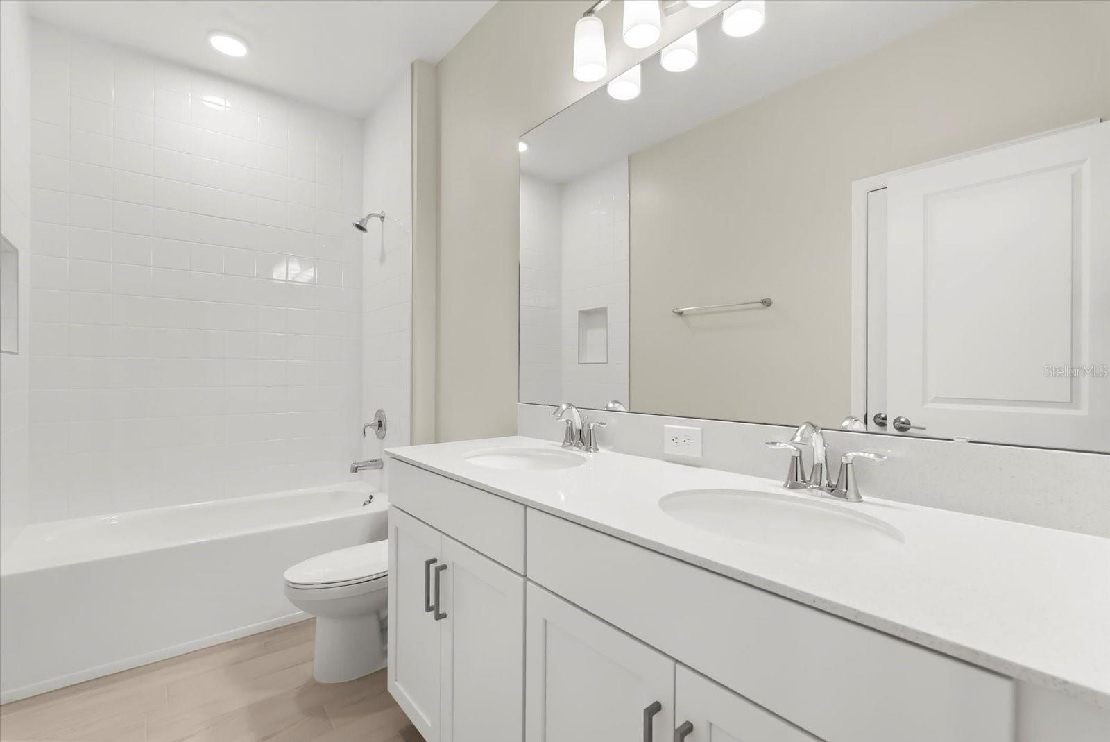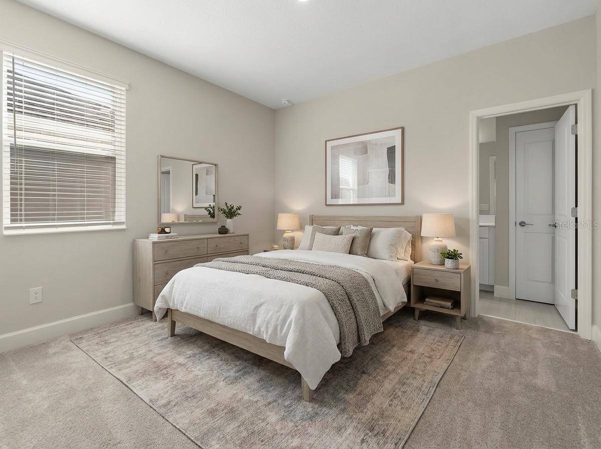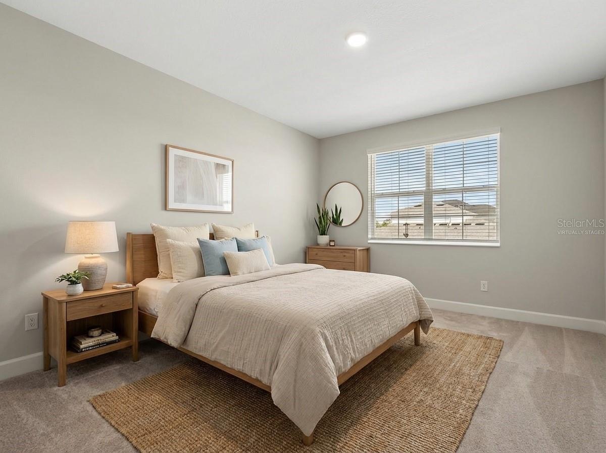 One or more photo(s) has been virtually staged. Step into a brand-new, never-lived-in home in Center Lake Ranch, just 20 minutes from Lake Nona. With 5 bedrooms, 4 baths, and over 3,500 square feet, this home was designed to feel open, comfortable, and easy to live in. Tile floors lead you to a versatile flex space, perfect for an office or dining room. Enjoy a bright, open kitchen with quartz countertops, gas cooking, and built-in appliances that flow naturally into the main living area. A full bedroom and bath on the first floor make hosting guests or avoiding stairs effortless. Upstairs, the primary suite feels like a true retreat, complete with a private balcony, and a spa-style bath with dual sinks, a soaking tub, and walk-in shower. A large loft invites movie nights, workouts, or playtime, while three additional bedrooms, one with its own ensuite, really helps round out the space. Past your sliding glass doors, you have a covered lanai and ample backyard space for you to uitilize. Enjoy access to the community pool and a growing 10-acre central park, all within a pet-friendly neighborhood. Thoughtfully designed and close to everything Lake Nona and Saint Cloud have to offer, this is a home meant to be lived in.