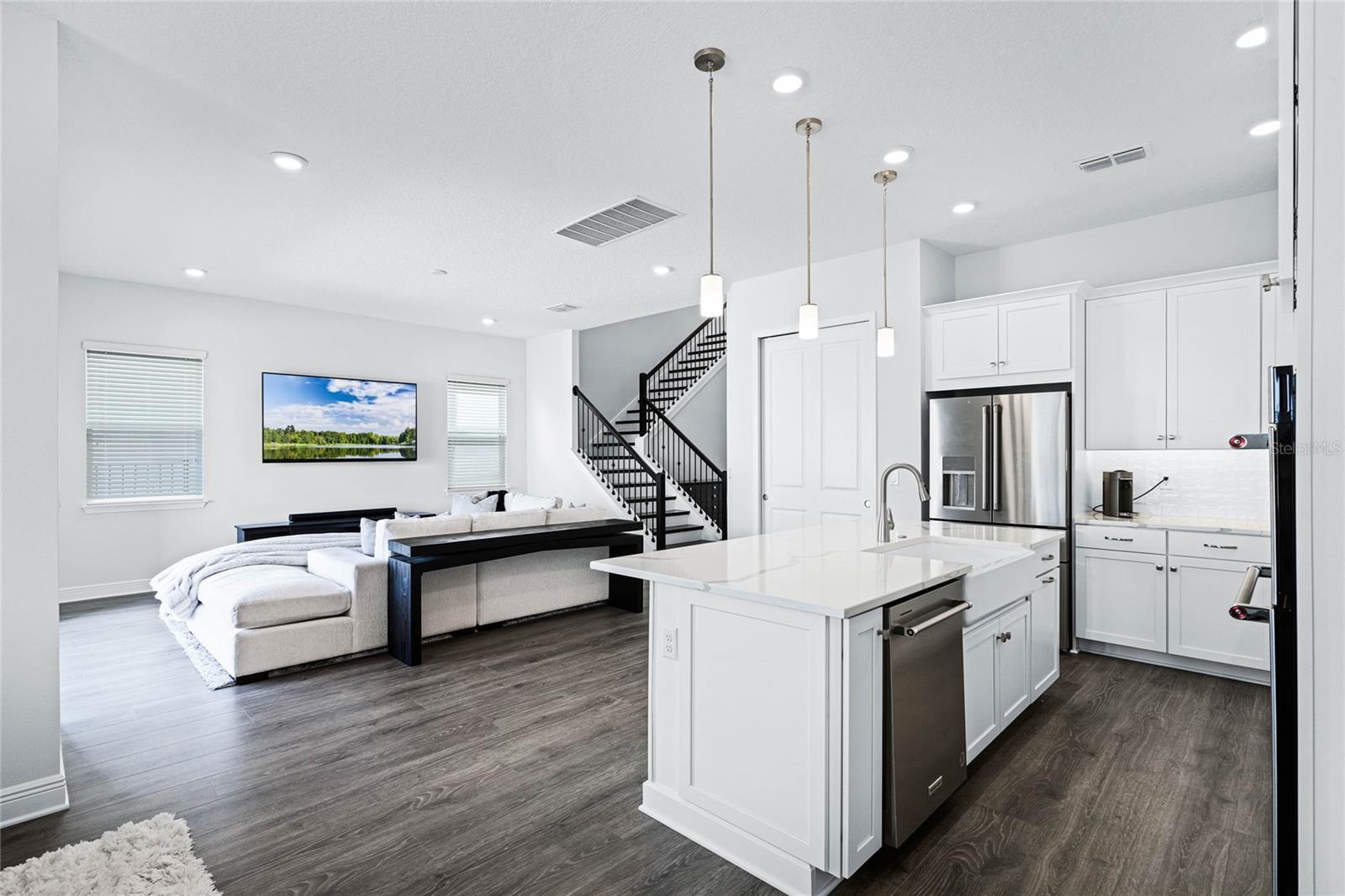 Welcome to the pinnacle of refined living in the exclusive gated community of Bella Collina. This distinguished 4-bedroom, 3.5-bath golf course residence showcases timeless features and tasteful upgrades throughout the dining room, kitchen, primary suite, and staircase. Upon entering, you’re greeted by an abundance of natural light, soaring ceilings, and upgraded luxury vinyl flooring that flows seamlessly throughout the home. The main living area features an open-concept design, seamlessly blending the family room, kitchen, and dining room—all offering stunning views of the pool and golf course. The kitchen is a chef's dream, boasting shaker cabinetry, quartz countertops, a stylish backsplash, KitchenAid appliances, a gas cooktop, and ample space for all your culinary needs. The dining room comfortably accommodates eight, perfect for entertaining friends or enjoying family meals. The primary suite, conveniently located on the first floor, offers a spacious retreat with a walk-in closet, built-in features, and a spa-like ensuite with dual vanities, upgraded countertops, a soaking tub, and a large walk-in shower with a rain feature. Ascend the beautifully designed staircase to discover a large loft, three additional bedrooms, and two more bathrooms, including one bedroom with an ensuite. All bedrooms feature walk-in closets. Outdoor living is taken to new heights with a fully automated pool and hot tub combo, complete with LED lighting, a heat pump, and an extended paver deck within a fully fenced lot. The Club at Bella Collina offers upscale amenities, including spa facilities, a full-service fitness center, and a member-exclusive restaurant serving breakfast, lunch, and dinner daily. Nestled between Lake Apopka and Bella Collina’s own spring-fed Lake Siena, the Sir Nick Faldo-designed championship golf course boasts impressive views with dramatic elevation changes and undulating greens. Located just a short drive from the magic of Disney, the vibrant atmosphere of International Drive, and premier shopping at Millennia Mall, this home offers it all. Montverde Academy, a world-class educational institution known for its commitment to academic excellence, is also less than three miles away. Discover the perfect blend of sophistication and functionality in this meticulously crafted home, offering both comfort and style. Schedule a private viewing today and make this your retreat in the heart of convenience.
