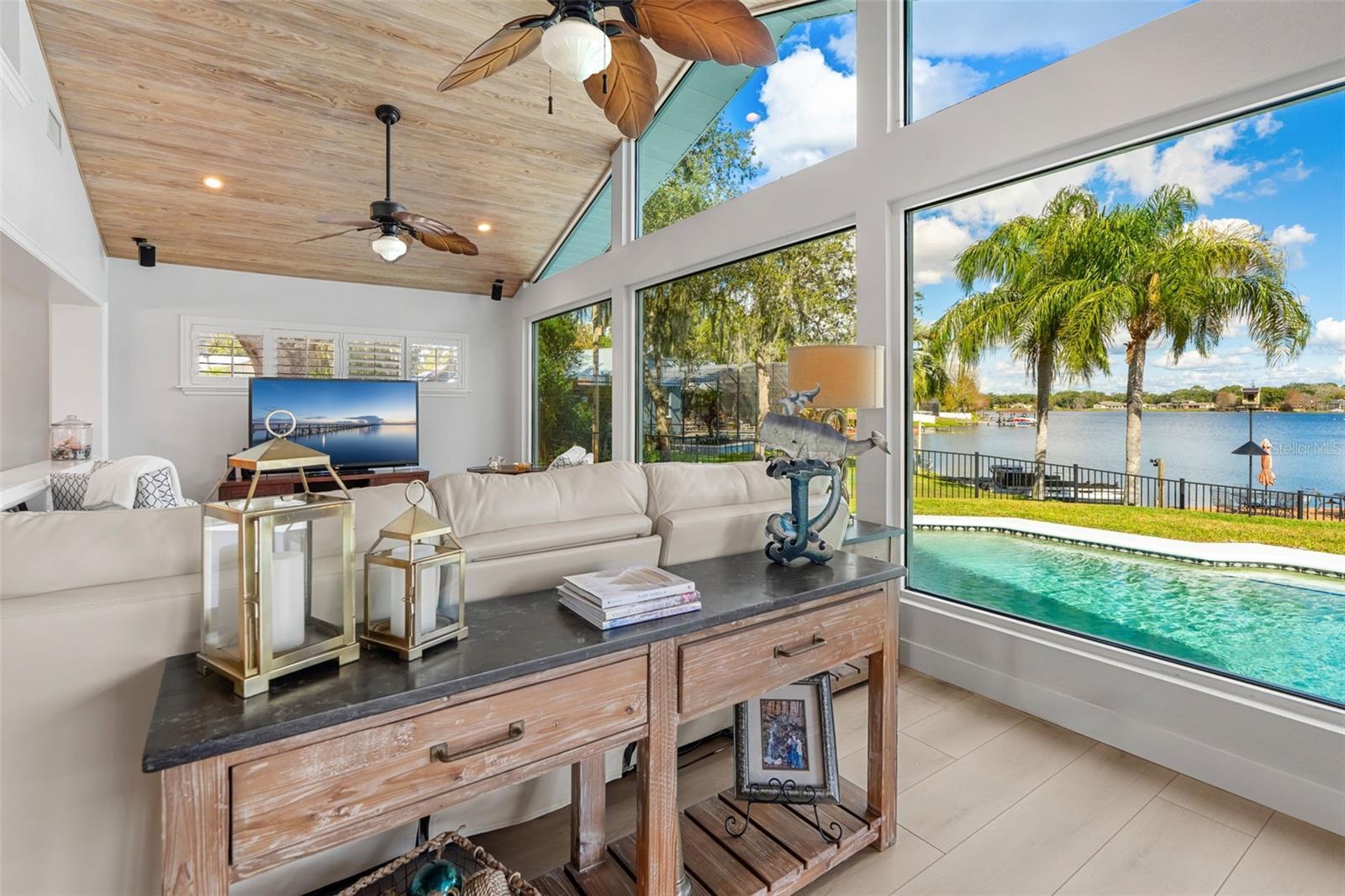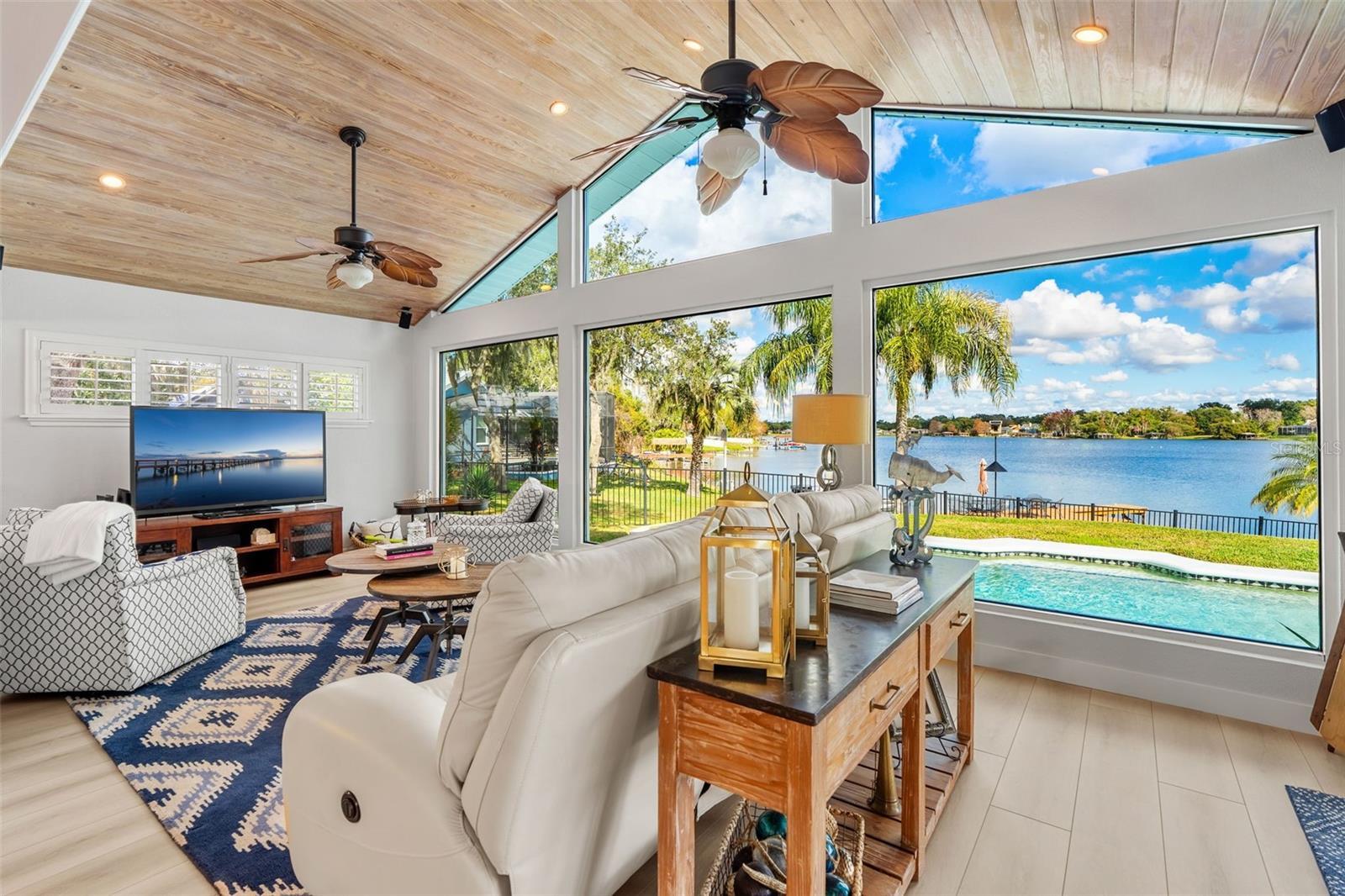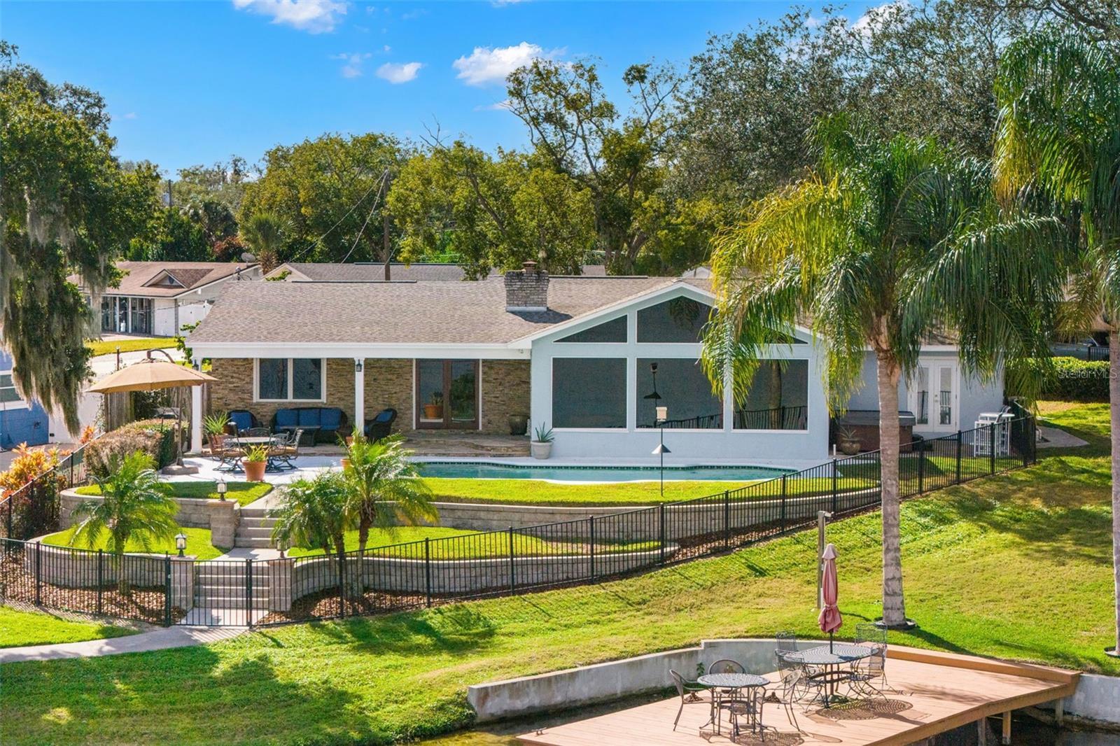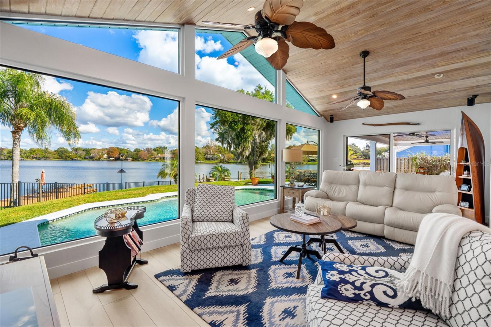 Under contract-accepting backup offers. Welcome to 185 Birchwood Drive, a rare Maitland SKIABLE LAKEFRONT retreat offering the perfect combination of privacy, elevation, and effortless Florida luxury. Positioned high above the waterline with sweeping lake views, this property delivers true lake living without the typical flood insurance requirement. Inside, the home is bright and inviting with luxury vinyl plank flooring throughout and a functional layout designed for both everyday comfort and entertaining. The open-concept main living space is highlighted by vaulted ceilings and a dramatic wall of glass framing the water, flowing seamlessly into the kitchen with generous cabinetry, stainless appliances, and a large center island ideal for gathering. The home also features beautifully updated bathrooms, and a split floor plan that provides ideal separation for guests, a home office, or multi-generational living. Outdoors, enjoy a private waterfront oasis complete with a resort-style pool, expansive entertaining space, and fully fenced yard perfect for dogs, and a updated 2019 roof. And because the lake is private, you can enjoy boating without the hassle of registering your boat—a rare convenience for waterfront owners. Perfectly located near I-4 with express lane access, 17-92, and just minutes to Park Avenue / Winter Park, this home offers the lifestyle buyers want most: stunning views, privacy, convenience, and true lakefront enjoyment.