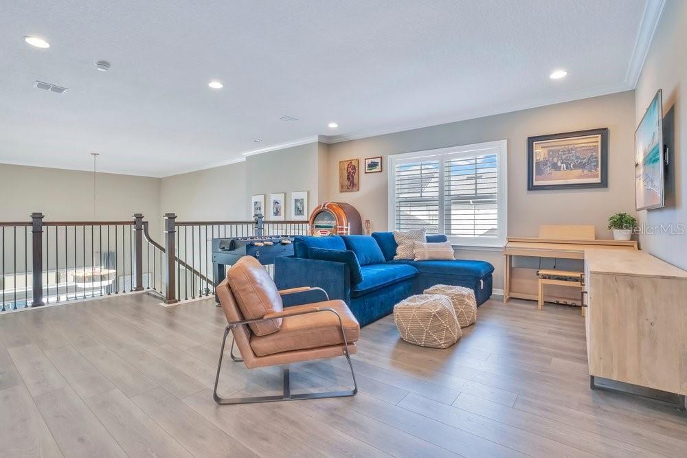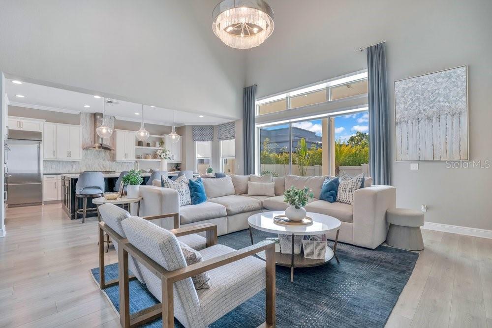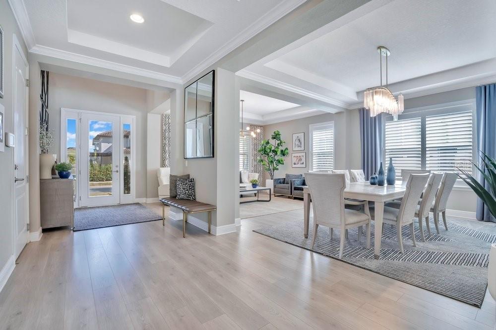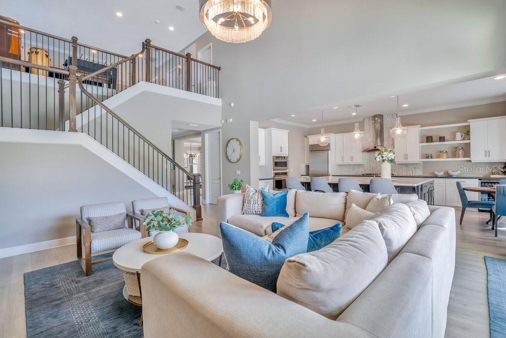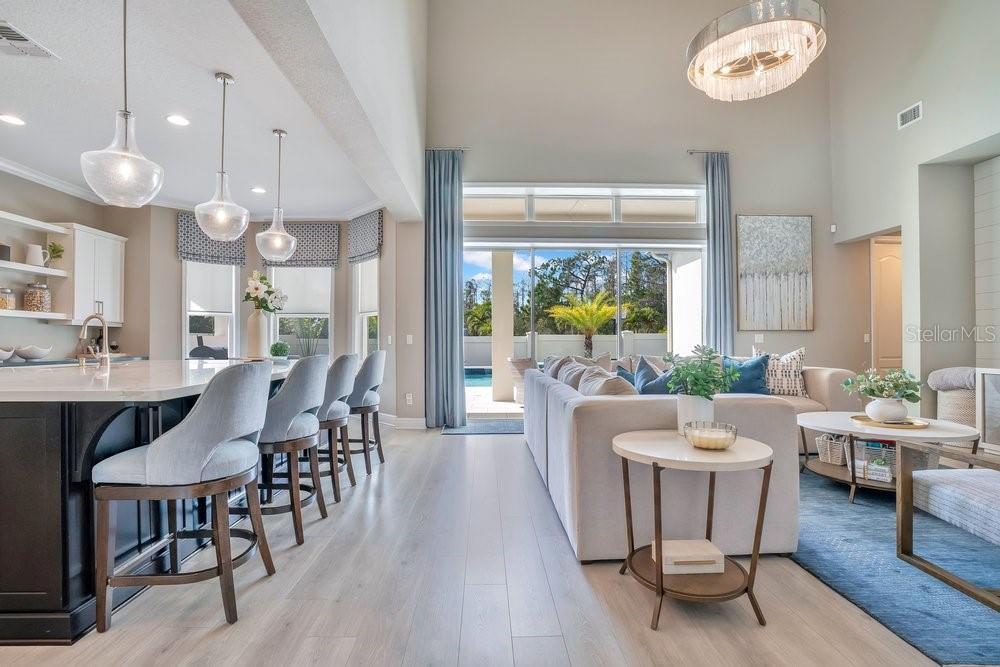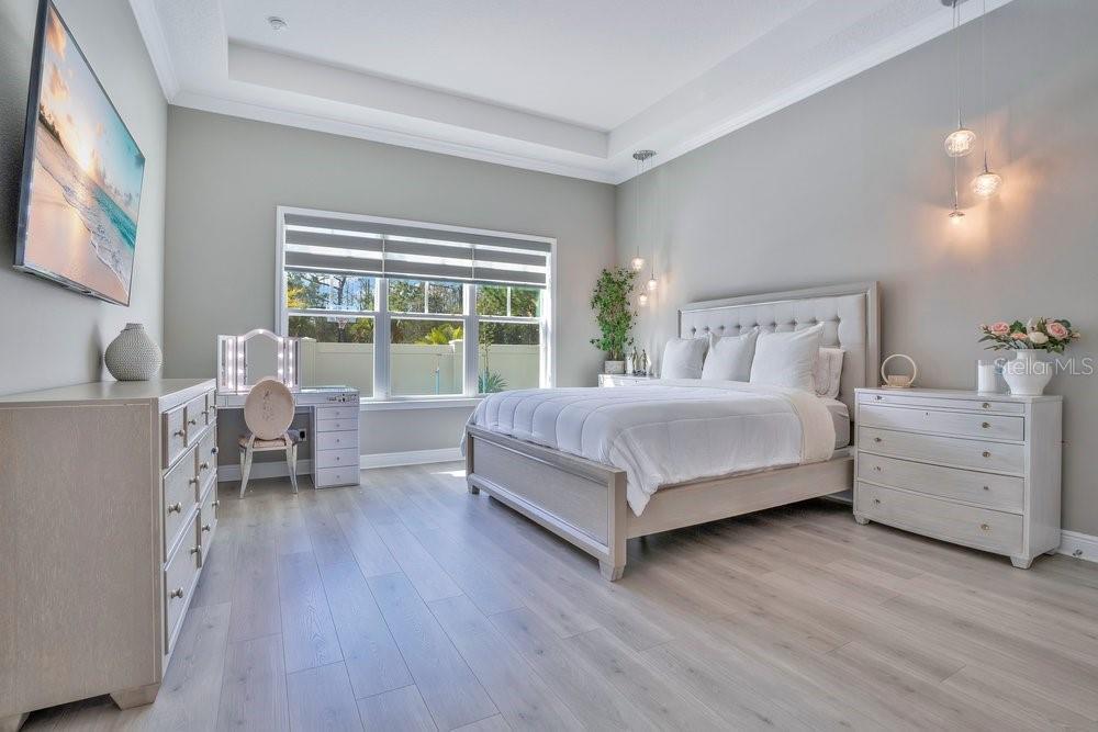 A beautiful modern residence in the Preserve at Laureate Park, offering the exclusivity of Laureate Park’s only gated community. Built by Taylor Morrison in 2019, this thoughtfully designed home offers over 3,613 square feet of living space with four bedrooms, three and a half bathrooms, and a built-in pool. The exterior welcomes you with a covered front porch, clean architectural lines, and a three-car garage. The first floor features high ceilings and luxury vinyl flooring throughout, with crown molding and tray ceilings adding subtle detail in the entry hallway, formal living room, dining room, and primary suite. A dedicated office or study sits just off the main living areas, ideal for working from home or quiet use. The home flows naturally from the formal spaces into the family room, where a shiplap accent wall and large nano sliding doors open fully to the outdoor area, creating a seamless indoor-outdoor connection. At the center of the home, the gourmet kitchen is designed for both daily living and entertaining. It includes an oversized island with quartz countertops, a Sub-Zero refrigerator, walk-in pantry, and a kitchen nook that brings in natural light. The kitchen opens directly to the family room, making it easy to stay connected whether hosting or spending time at home. The primary bedroom is located on the first floor and offers a private space with tray ceilings, his & her walk-in closets, and direct access to the covered pool porch. The primary bathroom is spacious and well-appointed, continuing the home’s clean, modern aesthetic. Also on the main level is a flex space, an inside laundry room with a mudroom, and additional storage space tucked neatly under the stairs. Upstairs, the home features three additional bedrooms and a large loft area. Two of the bedrooms share a Jack-and-Jill bathroom, while the third bedroom has its own en-suite bath. Carpeted bedrooms and wood stair treads provide warmth and contrast to the modern finishes throughout the rest of the home. The outdoor space is designed for year-round enjoyment. The fenced backyard includes a modern pool completed in 2024, complemented by surrounding patio space, a covered lanai, and a turfed side yard. The layout allows for privacy while still feeling open and connected to the interior living areas. Residents enjoy access to miles of trails, playgrounds, and a resort-style aquatic center. The home is less than ten minutes from Boxi Park, Lake Nona Town Center, Medical City, and The Wave, with Laureate Park restaurants just minutes away. Easy access to the 417 and close proximity to Orlando International Airport make this location as convenient as it is desirable. Now available for private showings!