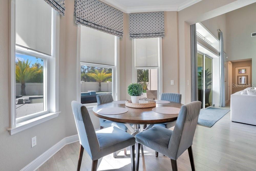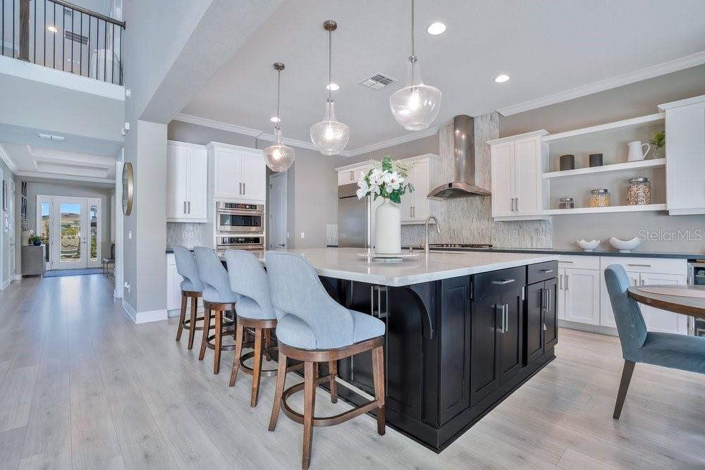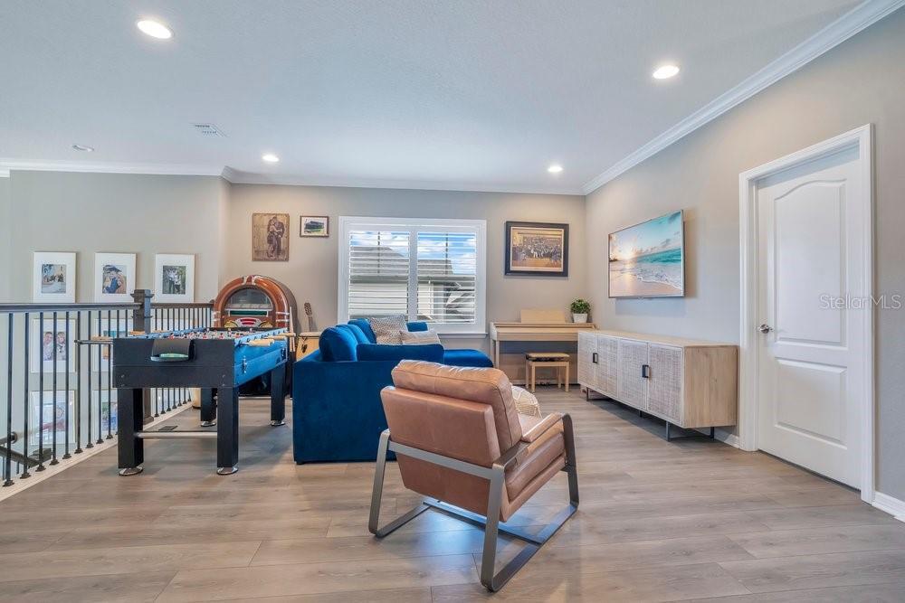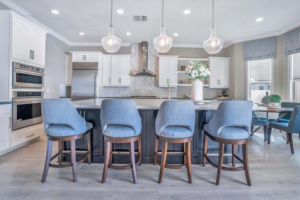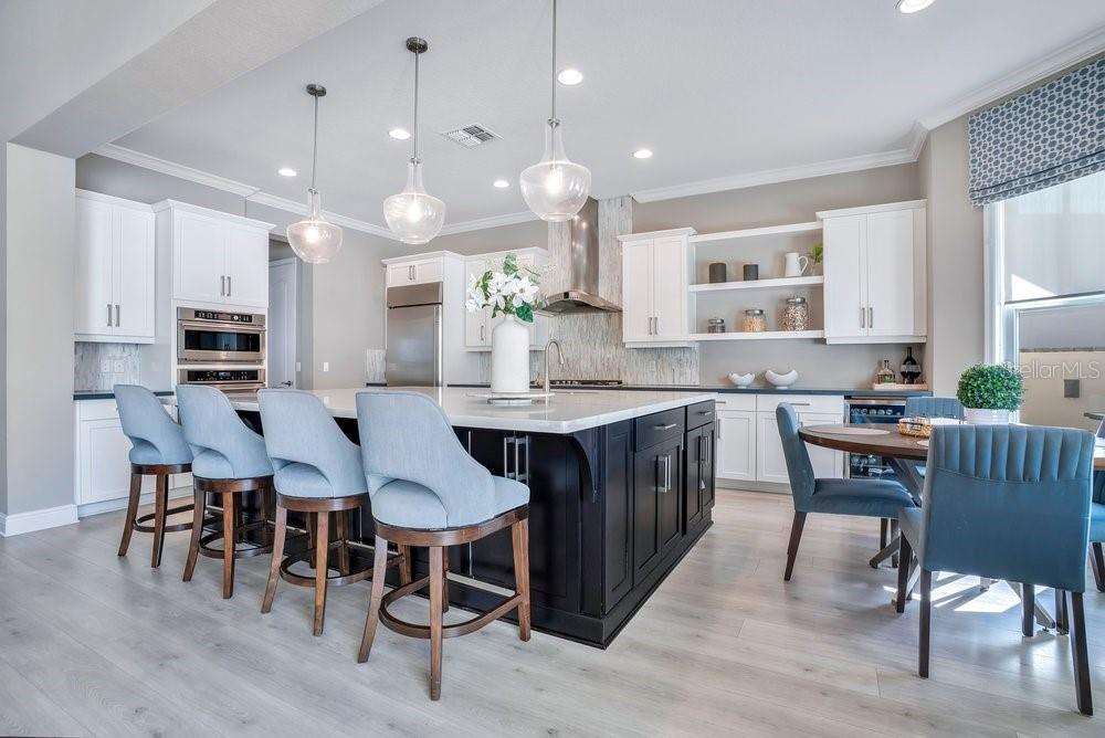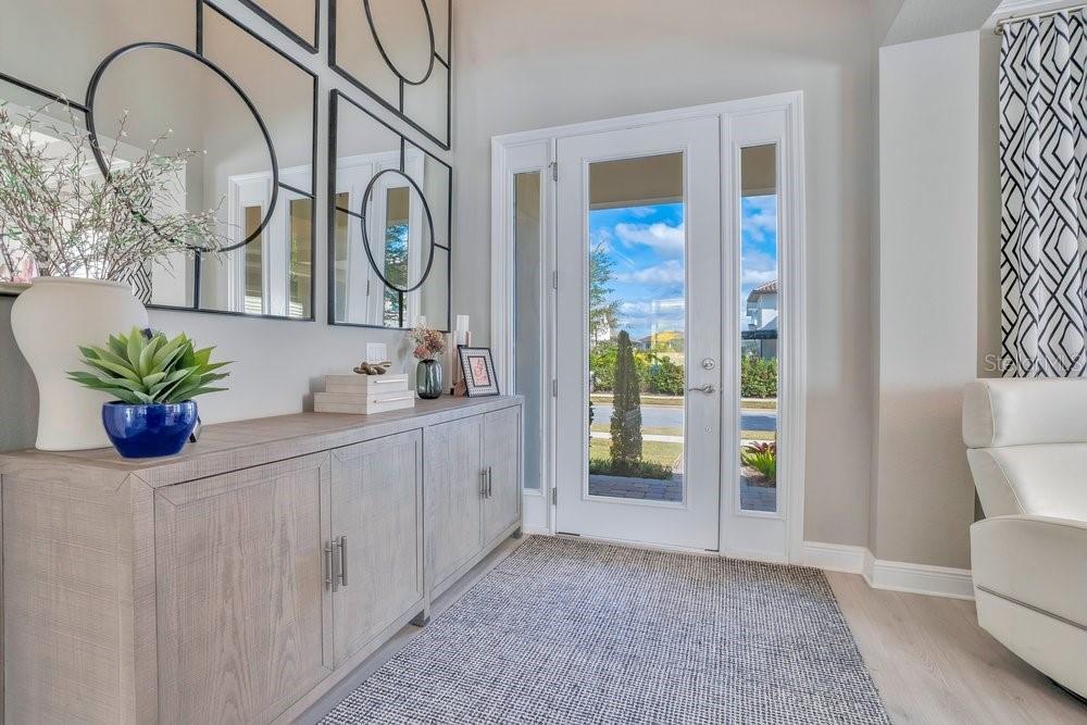 A beautiful modern residence in the Preserve at Laureate Park, offering the exclusivity of Laureate Park’s only gated community. Built by Taylor Morrison in 2019, this thoughtfully designed home offers over 3,613 square feet of living space with four bedrooms, three and a half bathrooms, and a built-in pool. The exterior welcomes you with a covered front porch, clean architectural lines, and a three-car garage. The first floor features high ceilings and luxury vinyl flooring throughout, with crown molding and tray ceilings adding subtle detail in the entry hallway, formal living room, dining room, and primary suite. A dedicated office or study sits just off the main living areas, ideal for working from home or quiet use. The home flows naturally from the formal spaces into the family room, where a shiplap accent wall and large nano sliding doors open fully to the outdoor area, creating a seamless indoor-outdoor connection. At the center of the home, the gourmet kitchen is designed for both daily living and entertaining. It includes an oversized island with quartz countertops, a Sub-Zero refrigerator, walk-in pantry, and a kitchen nook that brings in natural light. The kitchen opens directly to the family room, making it easy to stay connected whether hosting or spending time at home. The primary bedroom is located on the first floor and offers a private space with tray ceilings, his & her walk-in closets, and direct access to the covered pool porch. The primary bathroom is spacious and well-appointed, continuing the home’s clean, modern aesthetic. Also on the main level is a flex space, an inside laundry room with a mudroom, and additional storage space tucked neatly under the stairs. Upstairs, the home features three additional bedrooms and a large loft area. Two of the bedrooms share a Jack-and-Jill bathroom, while the third bedroom has its own en-suite bath. Carpeted bedrooms and wood stair treads provide warmth and contrast to the modern finishes throughout the rest of the home. The outdoor space is designed for year-round enjoyment. The fenced backyard includes a modern pool completed in 2024, complemented by surrounding patio space, a covered lanai, and a turfed side yard. The layout allows for privacy while still feeling open and connected to the interior living areas. Residents enjoy access to miles of trails, playgrounds, and a resort-style aquatic center. The home is less than ten minutes from Boxi Park, Lake Nona Town Center, Medical City, and The Wave, with Laureate Park restaurants just minutes away. Easy access to the 417 and close proximity to Orlando International Airport make this location as convenient as it is desirable. Now available for private showings!