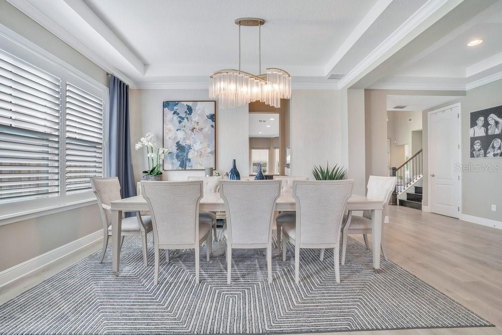 - Ceiling Fans(s), Crown Molding, High Ceilings, Kitchen/Family Room Combo, Living Room/Dining Room Combo, PrimaryBedroom Upstairs, Tray Ceiling(s), Walk-In Closet(s)