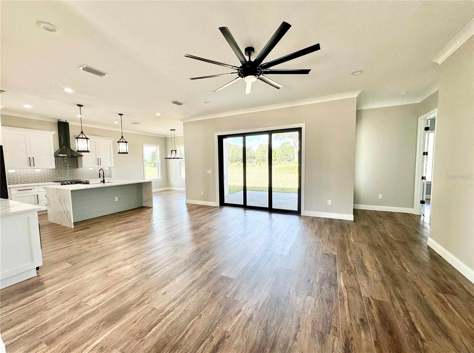 Beautiful, newer home available for long term lease, unfurnished. This home is located in an award-winning golf course community & located right on the golf course (#17 Green) with beautiful views! This home is 4 Bedrooms/2 Bath. It has a ton of upgrades! The gourmet kitchen includes a large island with an infinity-edge quartz countertop, white 42" upper cabinets, glass tile backsplash, a built-in beverage fridge, high-end black stainless Samsung appliances, & a large farm sink. The primary bedroom and bathroom oasis features sliding barn doors, a large walk-in closet with beautiful built-ins, zero entry enclosed shower and custom accents. Other upgrades include luxury vinyl floors throughout (no carpet), cove crown molding, 10 ft. ceilings, tropical landscaping and epoxy garage floors. This home is available for 12-month lease term, unfurnished (washer & dryer will be provided for tenants.)