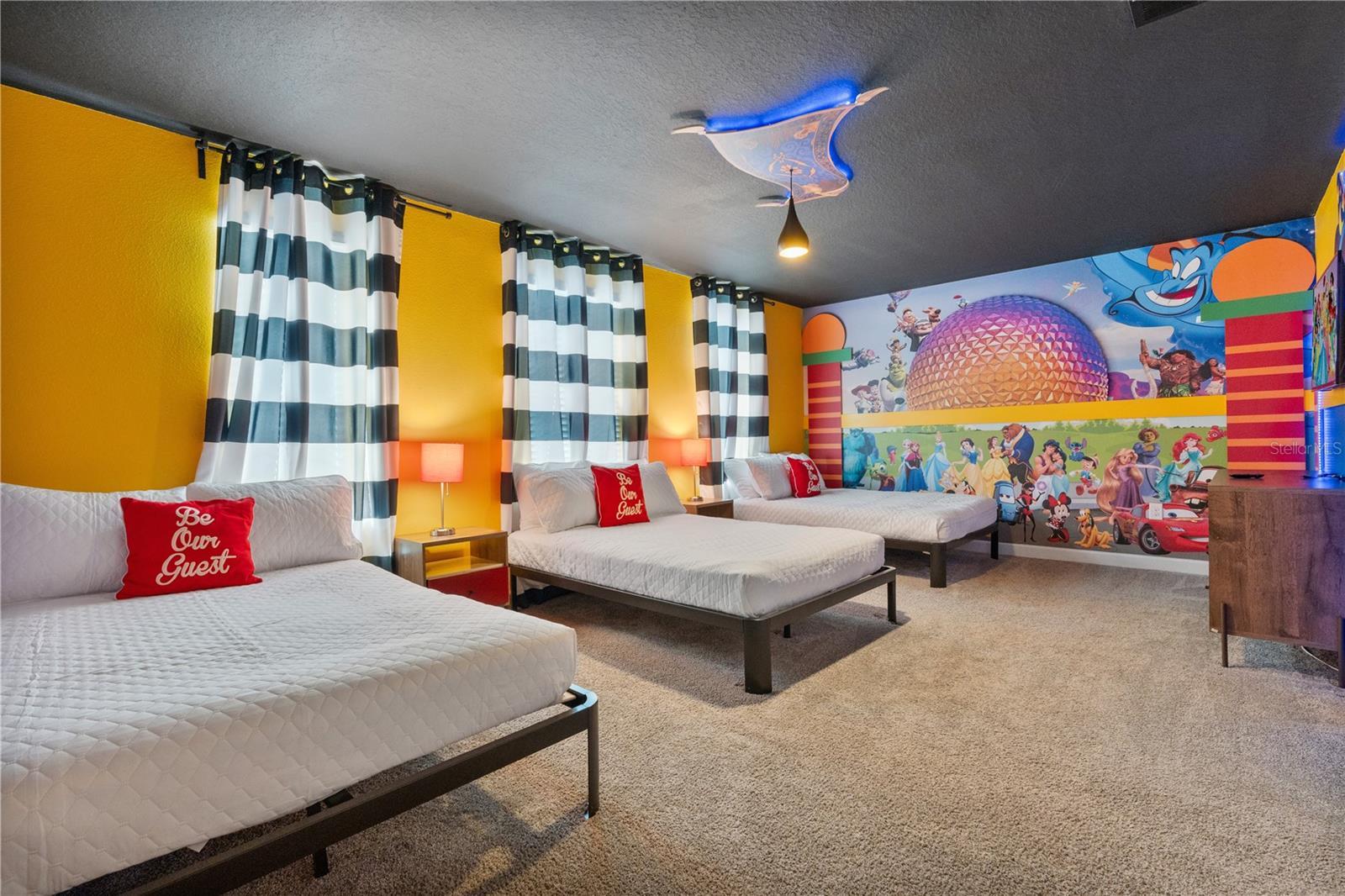 This 8 bedrooms plus a bonus room currently utilized as a 9th BEDROOM (formerly a game room). Beautifully and professionally decorated vacation property located in one of Davenport’s most desirable resort-style communities. Enjoy views of the GOLF COURSE AREA from the private pool. Designed for both relaxation and rental potential, this home offers an ideal blend of comfort, privacy, and convenience. The themed rooms are a standout feature, creating a memorable experience that guests love. Enjoy bright, open living spaces perfect for entertaining after a day at the parks, along with access to community amenities that enhance every stay. The prime location places the home just minutes from world-famous attractions, championship golf courses, shopping, dining, and major highways—supporting strong year-round demand. Situated on a quiet court, the property provides a peaceful retreat while remaining close to everything Central Florida provide. Fully suited for vacation use, it presents an excellent opportunity to enjoy a slice of Florida paradise or leverage it as a proven income-producing vacation rental. Turn the key and enjoy the Florida lifestyle—or let it work for you.