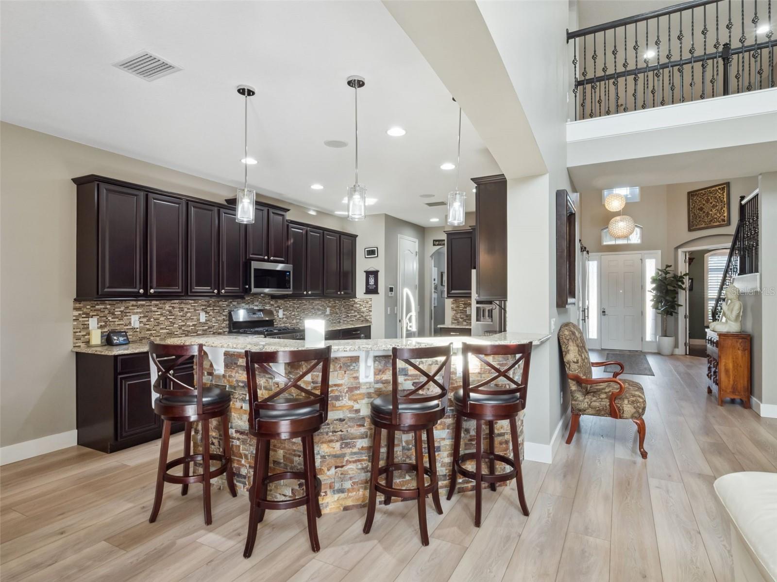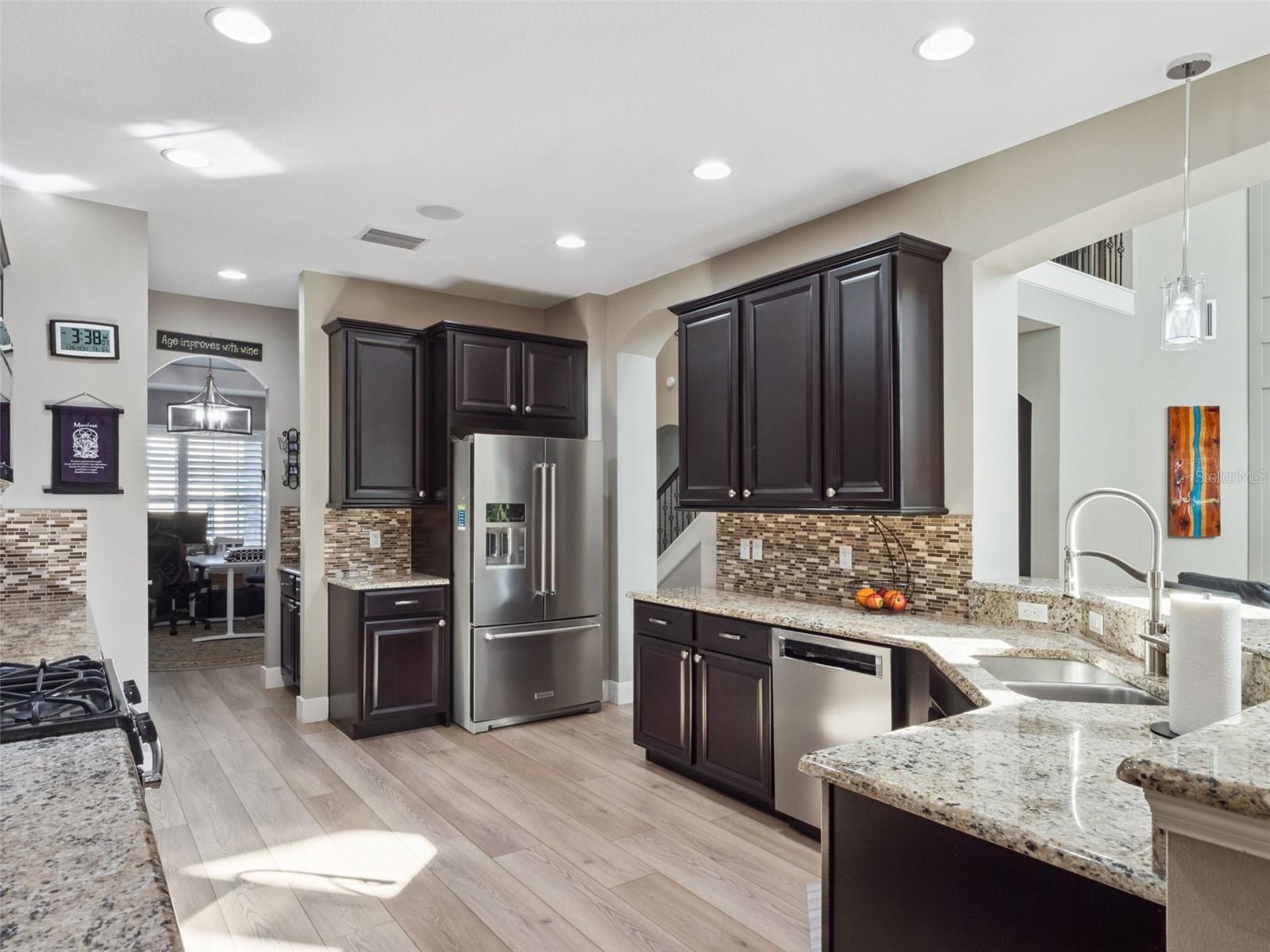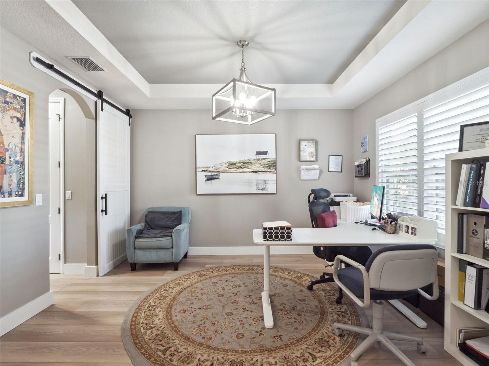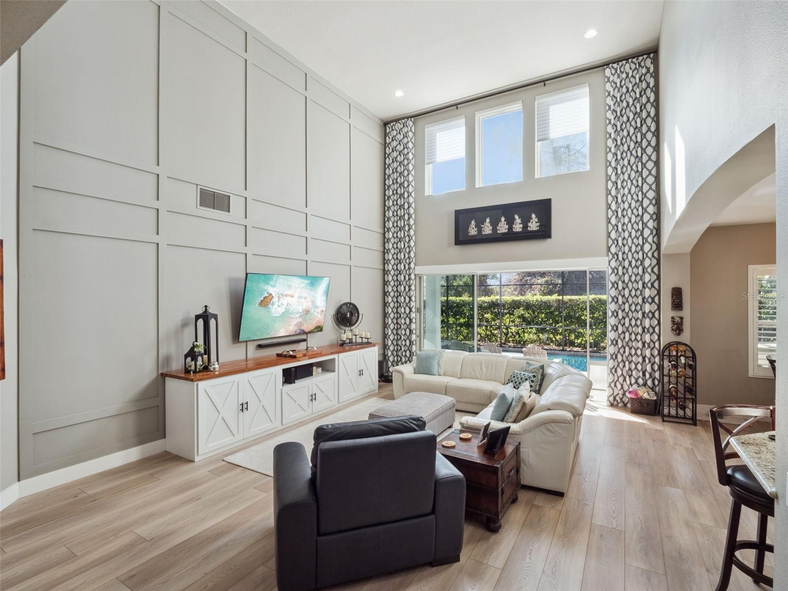 Offered for the first time by the original owner, this exceptional Abbott floor plan is located in the highly sought-after gated community of the Reserve at Carriage Pointe. Pride of ownership is evident at every turn, starting with the upgraded stone-accented elevation, side-entry garage, and premium homesite backing to a conservation buffer that provides privacy and peaceful views. The screened and heated saltwater pool with expansive lanai sets the tone for Florida living at its finest. Inside, soaring ceilings create an immediate sense of scale, with a welcoming foyer framed by barn doors that open to a flexible living space and additional dedicated home office. The great room is both impressive and inviting, featuring a custom built-in entertainment center and an abundance of natural light streaming through transom windows and a full wall of sliders that seamlessly connect indoor and outdoor living. The well-appointed kitchen opens to the great room and offers generous counter space, espresso 42" cabinetry and natural gas range. The primary suite is conveniently located on the main level and offers a true retreat with dual walk-in custom closets, a spa-inspired bath featuring a large walk-in shower, garden soaking tub, and expansive dual vanity. Wood-tread stairs with upgraded railings lead to a spacious upstairs bonus room with vaulted ceilings, along with an additional bonus space wired for a home theater, gym or 5th bedroom. An ensuite guest bedroom provides added privacy for one family member. The two additional bedrooms share a Jack-and-Jill bath and walk-in closets, completing a thoughtfully designed floor plan ideal for both everyday living and entertaining. Upgraded remote blinds and shutters are worth mentioning. Perfectly positioned just minutes from the 429 Expressway, Winter Garden Village, and the Hamlin retail district, the home is surrounded by dining, shopping, and local favorites all within a mile. Zoned for sought-after K–12 schools with several private school options nearby, the location offers quick access to Disney in just 15 minutes and Downtown Orlando in approximately 20. This is an outstanding opportunity to own a meticulously maintained home in one of the area’s most desirable communities, offering exceptional value in today’s market.