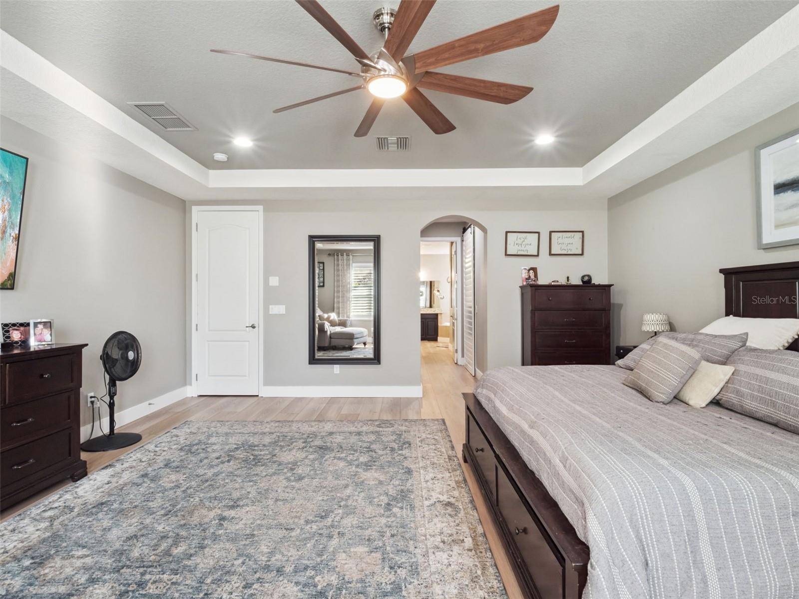 - Cathedral Ceiling(s), Ceiling Fans(s), High Ceilings, Kitchen/Family Room Combo, Open Floorplan, Primary Bedroom Main Floor, Solid Surface Counters, Solid Wood Cabinets, Split Bedroom, Stone Counters, Thermostat, Walk-In Closet(s), Window Treatments