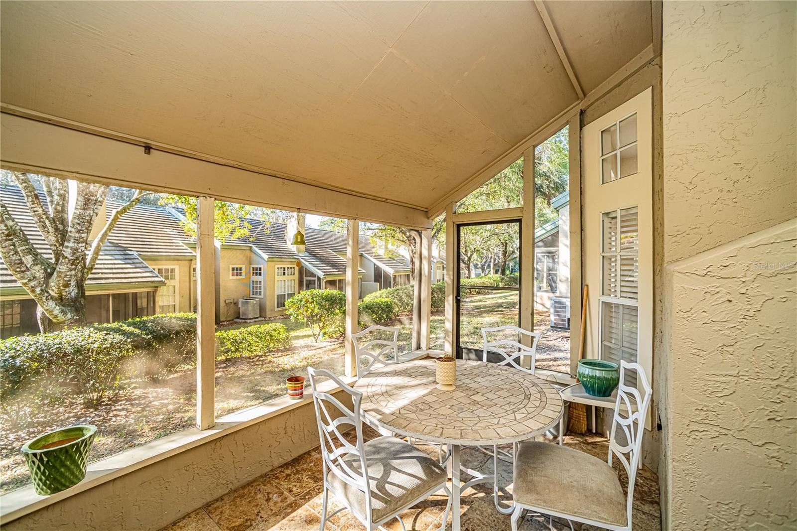 Nestled within the Mediterranean-inspired confines of Barclay Place at Heathrow, this exclusive residence epitomizes the pinnacle of living. Exuding an aura of refined elegance, this two-bedroom, two-bathroom townhome-style condominium is a sanctuary of timeless beauty. Upon entering, the discerning eye is immediately drawn to the tasteful fusion of contemporary design and classical charm. Soaring ceilings effortlessly guide your gaze towards the heart of the home—an exquisitely renovated kitchen adorned with pristine white Shaker cabinetry and sumptuous Dovetail Granite countertops. The room's centerpiece, an opulent wood-burning fireplace adorned with modern tiles, sets the stage for cozy gatherings, as French doors beckon you toward a secluded screened-in lanai. Elegance and practicality coalesce in this spacious dwelling, featuring dual master bedrooms, each a testament to comfort and luxury. Both rooms boast full en-suite bathrooms, complete with water closets and generous walk-in closets, elevating the concept of indulgent living. The entrance, a meticulously crafted courtyard adorned with charming brick pavers, provides an extra outdoor space for basking in the warmth of the Florida sun or nurturing your gardening pursuits. But what truly sets this unit apart is its coveted status as an end unit, offering a breathtaking back patio, abundant with privacy and lush greenery—a truly rare find within this enchanting community. Barclay Place at Heathrow embraces its residents with an array of exceptional amenities. A glistening pool, recreational center, and a clubhouse beckon for leisurely afternoons, while tennis courts invite enthusiasts to elevate their game. Additionally, nature enthusiasts will delight in the community's proximity to the Seminole Wekiva Trail, offering miles of scenic paths for biking, hiking, and leisurely strolls. For those seeking more extensive entertainment and sporting opportunities, the Athletic Club of Heathrow and Heathrow Golf Course and Country Club stand as close neighbors. And should you long for the bustling vibrancy of urban life, the Interstate is just a stone's throw away, connecting you to both the pristine beaches and the cultural wonders of Orlando to the south. This lovely townhome and the enchanting community of Barclay Place at Heathrow are waiting to be claimed as your very own, offering a lifestyle that transcends the ordinary and embraces the extraordinary. Indulge in the lap of luxury and make this elegant haven your own—a place where time-honored beauty and contemporary convenience seamlessly intertwine
