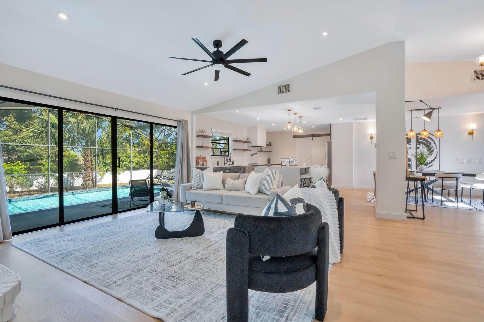 Under contract-accepting backup offers. Here is an opportunity to truly make this exceptional 3-bedroom, 2-bath pool home your own in the heart of Windermere. Offering 1,784 sq ft of fully renovated living space, this residence features a refined open-concept layout with high-end vinyl flooring throughout, a statement kitchen with an oversized waterfall-edge island, and a private attached office framed by custom barn doors. Set on a spacious lot, the outdoor living experience feels like a private resort with a saltwater pool, fully enclosed screened area, and an outdoor hot shower, ideal for entertaining or everyday enjoyment. Thoughtful upgrades include a brand-new roof (2025), HVAC replacement, and updated plumbing completed during renovation. The property also offers space to accommodate a boat or small RV along the side of the home with access to the Butler Chain of Lakes, and is ideally located minutes from shopping, dining, everyday conveniences, and zoned for highly rated schools within a highly desirable community.
