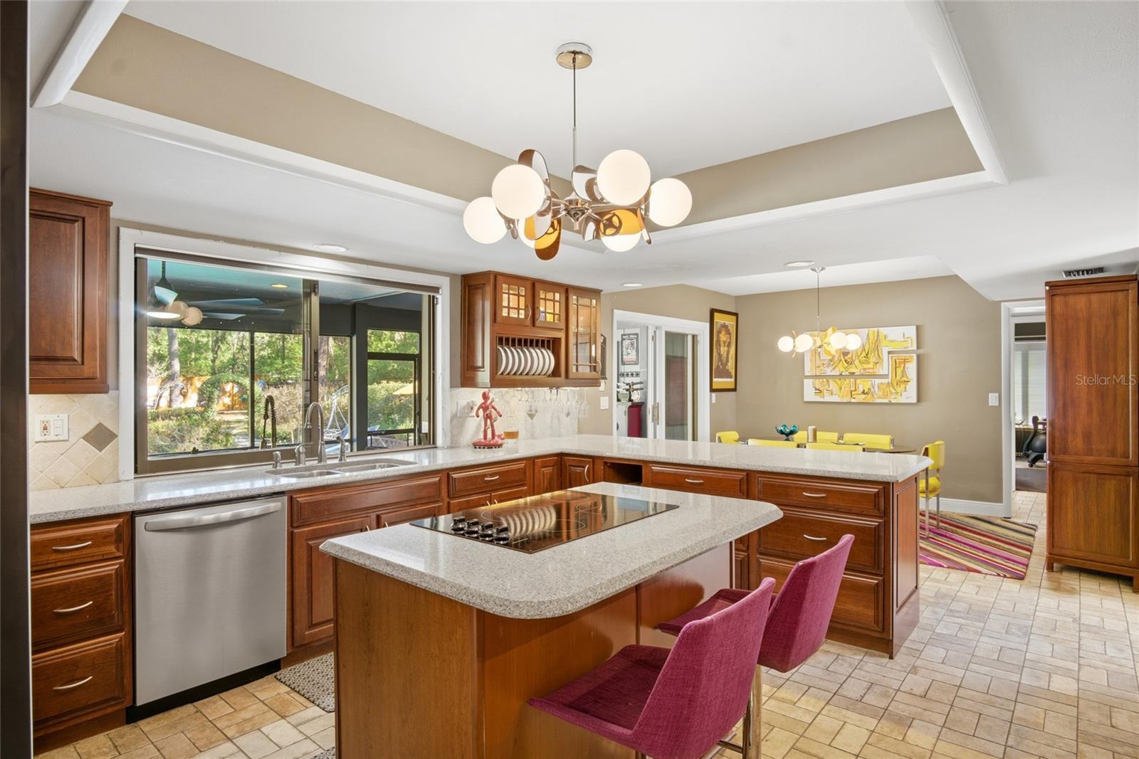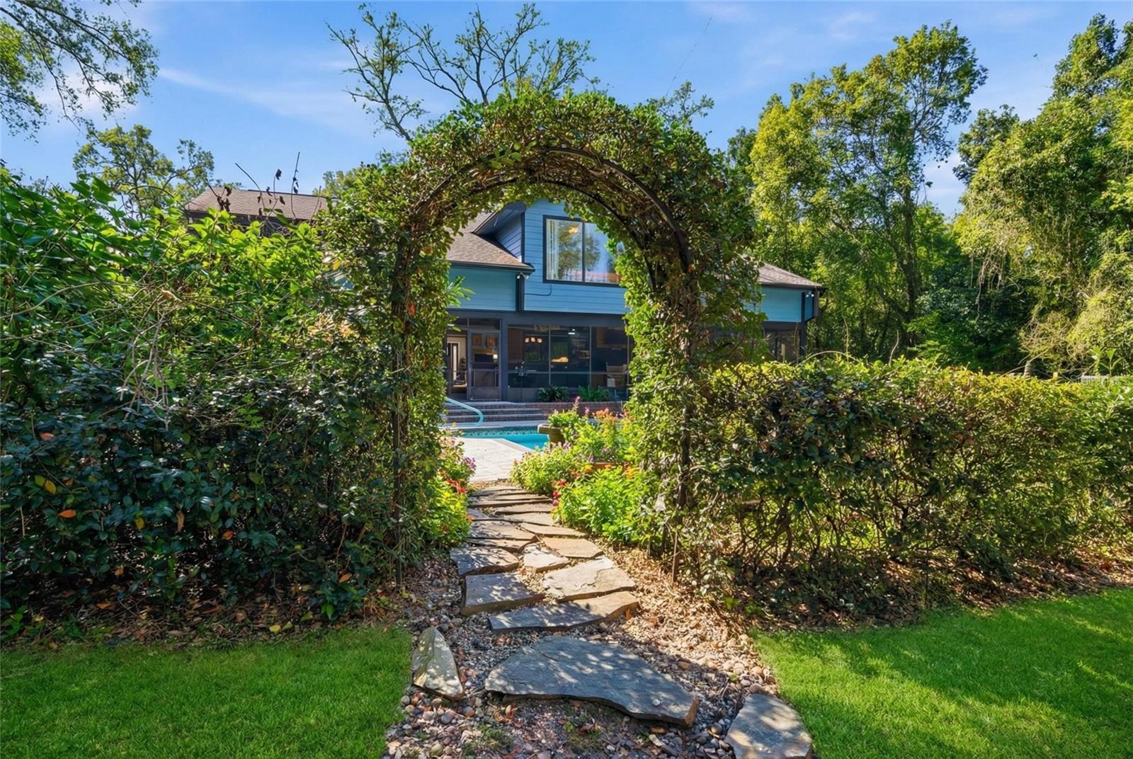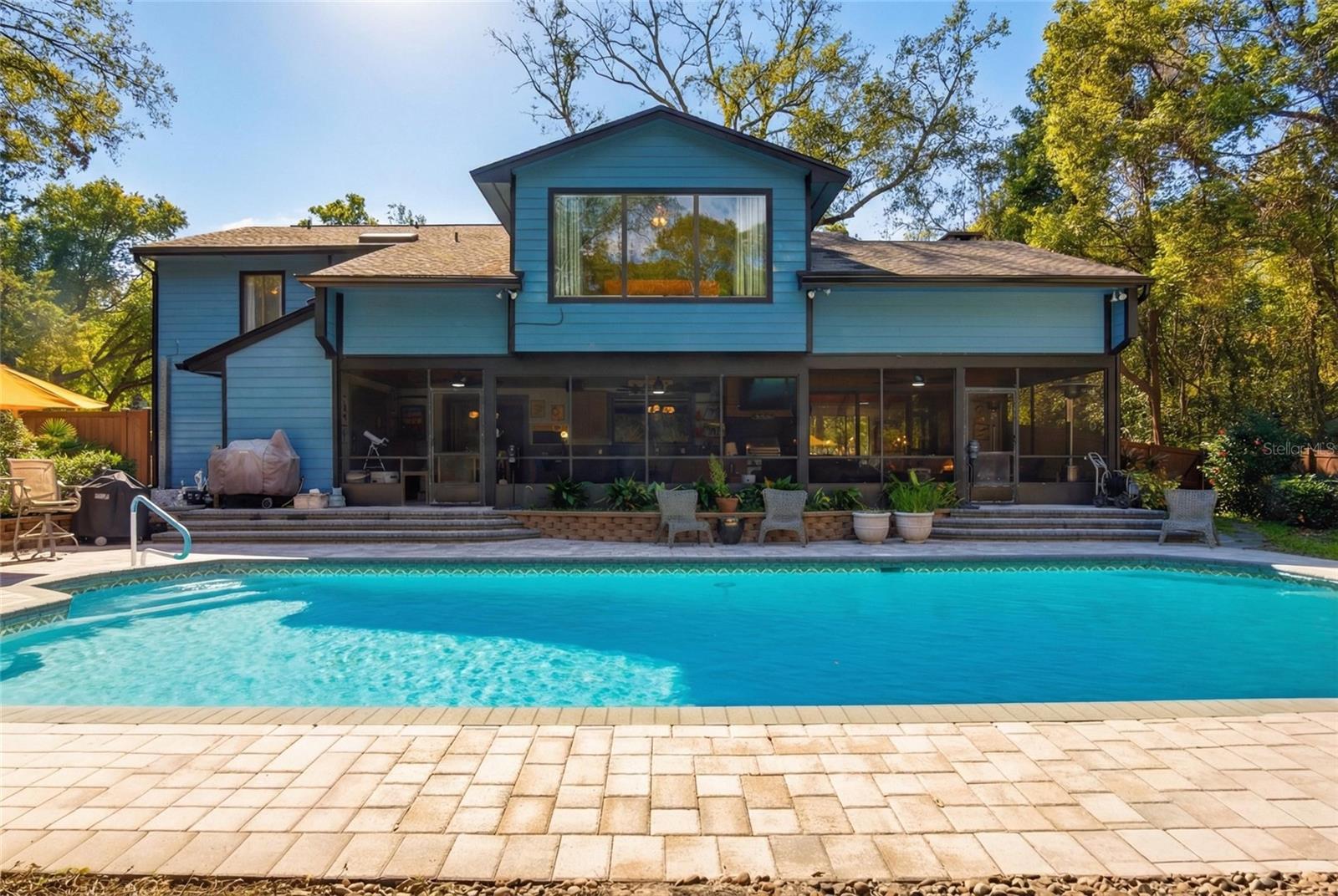 Welcome to this Exquisite 3 Bedroom 3 Bath Pool home with an Oversized 3 Car Garage on 2.18 Wooded Acres in Exclusive Oak Hollow subdivision in Beautiful Apopka! Meticulously landscaped and a true country feel with so many amazing features in this custom home. A lengthy brick paver driveway to a huge 3 car garage, luscious landscaping to the front entry, a grand entrance with an elegant staircase, huge vaulting with cedar ceilings & wood beams with one-of-a-kind custom stained glass features in the family room! It keeps going, hardwood & imported brick flooring, stone accented wood burning fireplace, book shelves, perfectly planned skylights & window placement for natural lighting, WIFI thermostats, outdoor kitchen with a commercial grade refreshment cooler, gas grill and firepit in the lanai/FL room, updated pool equipment and SO MUCH MORE! From the entry and Up the stairs leads you to the primary and second bedroom, loft and office. All have many unique features and have been remodeled with top tier taste and quality craftsmanship. The loft bedroom overlooks the fireplace and custom stained glass features and is the segue to the office. This bedroom is huge with cedar ceilings, luxury & vinyl flooring. The primary bathroom is magazine quality and features a high end clawfoot tub with a beautiful window view and its own skylight, his and hers sinks, custom shower, bidet, tile floors, and a walk-in closet. The office has custom wood cabinets and shelving for all your space and storage needs and the view from the window makes work from home as good as it gets! The second bedroom gets tons of natural light and the bathroom is nicely done with a granite countertop and tile floors. Lets party downstairs-This luxury home was designed to host the very best get-togethers. The main kitchen is a chef's dream with LOTS of solid wood Kraftmaid cabinets, quartz countertops, stainless steel appliances, centrally located island with a cooktop bar, GE convection oven & microwave combo, new fridge, dishwasher, dining area to the side, with a pass-through window at the kitchen sink to the Florida room that keeps everyone connected during your parties. The huge Florida room overlooks the high end pool, paver decking, and professionally landscaped back yard and is loaded with features that will make you never want to leave home. The outdoor kitchen features a built in commercial grade refreshment cooler, sink, granite countertops, Alfresco gas grill, 3 new ceiling fans, TV, gas firepit, and the keyless entry 3rd Bathroom is perfectly placed with access from the pool/Florida room or first floor off the kitchen area. Your 3rd bedroom is located downstairs and is perfect for your guests privacy for a split design feel. This home has been well maintained and the pride of ownership is evident. The newly fenced in backyard is your own nature sanctuary but your lot is actually SO MUCH BIGGER than the fenced part. There is a 12x16 shed for storage and with OVER 2 acres plenty of room to build the shop of your dreams. Super close to Kelly Park, Kings Landing, Wekiva State Forest, 429, Publix, restaurants, ~36 min to Universal or be at the beach in about an hour. Come see this Florida dream home today!