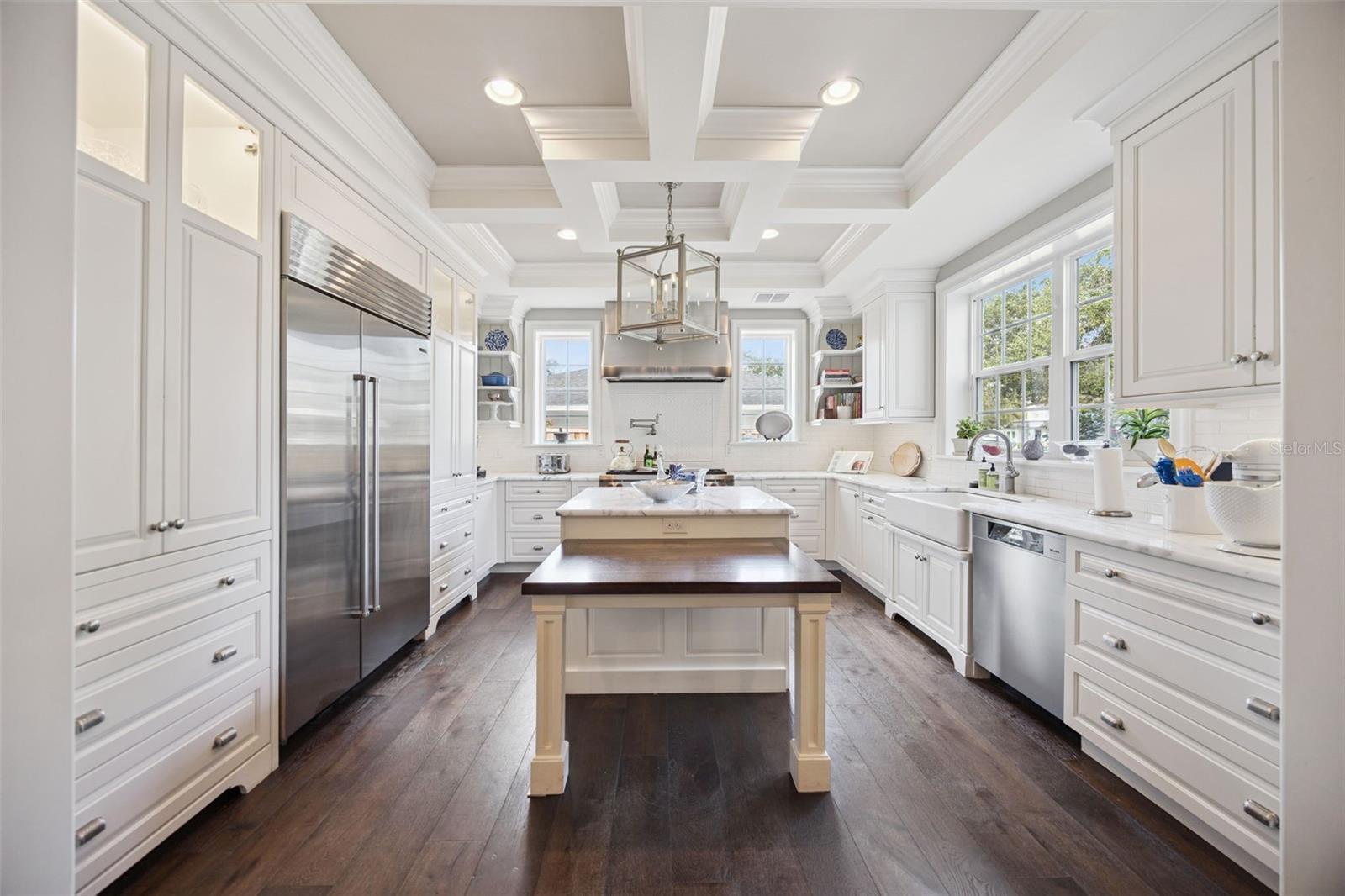 This stunning custom residence built by respected Winter Park Builder Charles Clayton blends classic elegance with refined modern comfort, offering seamless indoor–outdoor living and impeccable craftsmanship throughout. From the manicured lawn and stately traditional exterior to the welcoming front porch with old Detroit brick, the home’s curb appeal sets a tone of understated luxury, all wrapped in an elegant exterior. A foyer with extensive custom molding immediately captures attention, with sightlines extending to the private backyard and pool which creates a natural flow between interior living spaces and the outdoor retreat. Flanking the foyer, a richly detailed private study features custom millwork and a built-in bookcase, while the formal dining room provides an elegant space for entertaining. Expansive family room/dining area offers extensive molding, a gas fireplace, surround sound, and a wall of French doors which open to a covered Detroit Brick porch, creating a natural flow between interior living spaces and the outdoor retreat including a porch and pool. The space easily accommodates a large casual dining area and opens seamlessly to the kitchen. The light-filled chef’s kitchen showcases extensive marble surfaces, a Sub-Zero refrigerator, large farmhouse sink, and an open layout ideal for gathering. The main-level primary suite is a private retreat with direct porch access, dual walk-in closets. The primary bath features marble finishes, a glass-enclosed shower, pedestal soaking tub, and dual vanities. A spacious mudroom, large laundry room, and pantry area sit just off the kitchen, complete with a half bath and convenient access to the garage and porch. The two-car garage includes additional storage, complemented by a brick driveway. Upstairs, a central stair hall opens to an upstairs Family/Kid’s Gathering/Game Area. Bedroom 2 functions as a second primary-style suite, while bedroom 3 is a private suite with its own sitting area. Bedrooms 4 and 5 share a Jack-and-Jill bath, providing flexible space for family or guests. There is an upstairs storage room. Outdoor open pool with living is equally impressive. This exceptional home offers the ideal balance of architectural character, luxury finishes, engineered wood floor and a floor plan designed for comfort, privacy, and unforgettable gatherings.