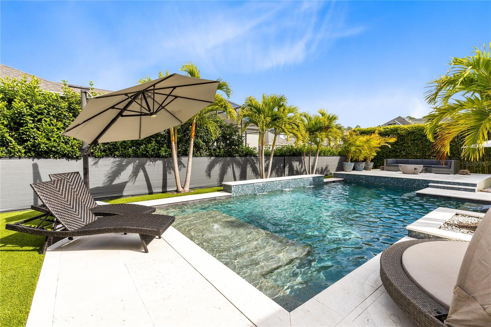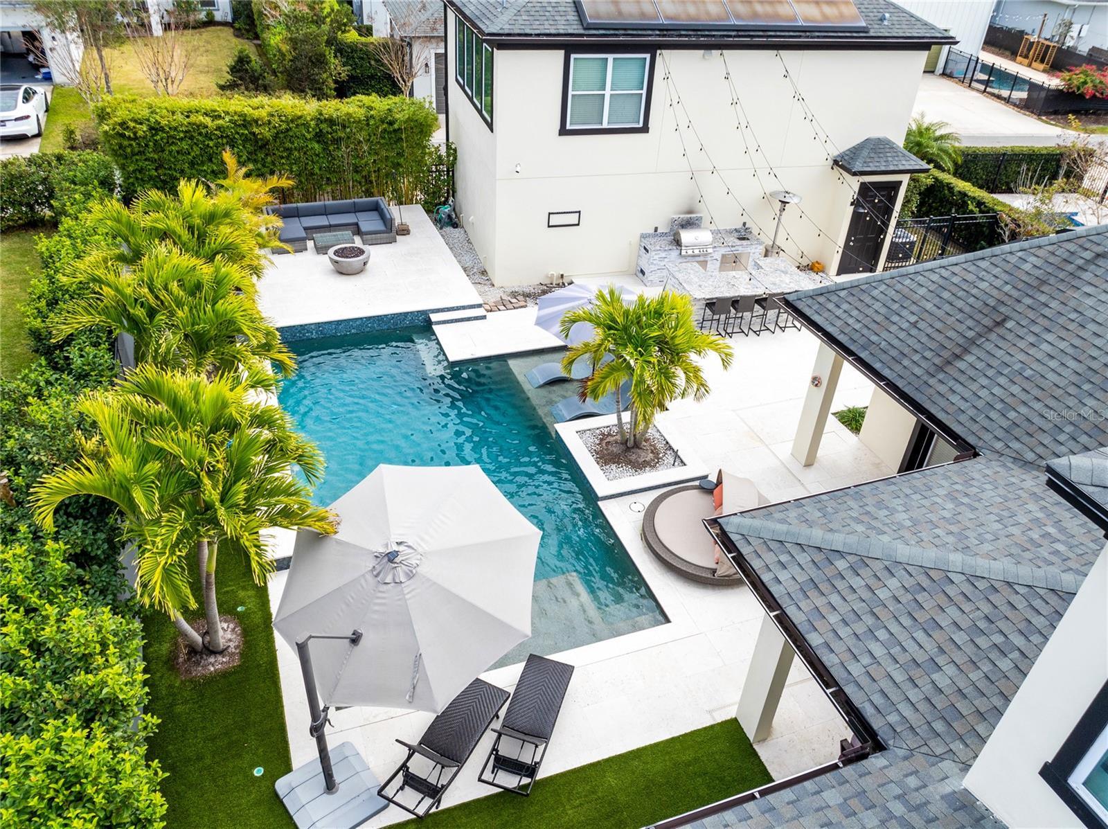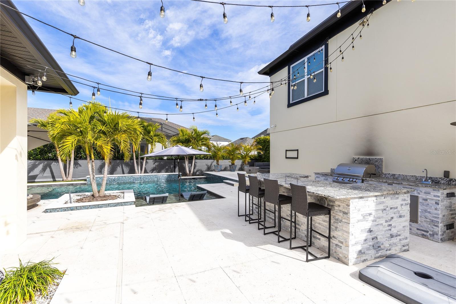 This stunning 4 bedroom, 3.5 bath pool home sits on an oversized lot in the heart of Laureate Park in Lake Nona and offers 2,755 square feet of thoughtfully designed living space. Currently owner occupied, the home features a bright open floor plan with soaring two story ceilings, expansive windows, and rich wood flooring throughout the main living areas. The first floor includes a spacious family room that flows seamlessly into the chef inspired kitchen featuring a large island with seating, stone countertops, upgraded cabinetry, stainless steel appliances, built in oven and cooktop, statement pendant lighting, and excellent sightlines for entertaining. Sliding glass doors connect the main living area to the covered patio and an exceptional private backyard retreat. The first floor primary suite offers a peaceful escape with a custom accent wall, crown molding, ceiling fan, and a spa inspired bathroom with dual vanities, stone counters, a large walk in shower with rain shower head, and a walk in closet. Upstairs, a generous loft provides flexible living space ideal for a second family room, media area, or work from home setup and includes access to a private balcony overlooking the front of the home. Three additional bedrooms and two full bathrooms complete the second level. The backyard is designed for resort style living and entertaining, featuring a custom pool with sun shelf and water features, multiple lounge areas, fire pit seating, a covered patio, and a fully equipped outdoor kitchen with stone counters and grill, all surrounded by privacy landscaping and modern hardscape. Additional highlights include a dedicated home office, laundry room, crown molding, high ceilings, solar panels that help offset electric costs at no additional charge to the tenant, and two garage parking spaces within the rare three car garage. Laureate Park isn’t just a neighborhood, it’s a vibrant lifestyle. Enjoy the Aquatic Center, resort style pools, LP Fit gym, and over 44 miles of trails. Located in prime Lake Nona, minutes from Medical City, the VA hospital, Nemours, dining, and shopping, with easy access to Orlando International Airport, major highways, the USTA National Campus, Orlando theme parks, and Florida beaches.