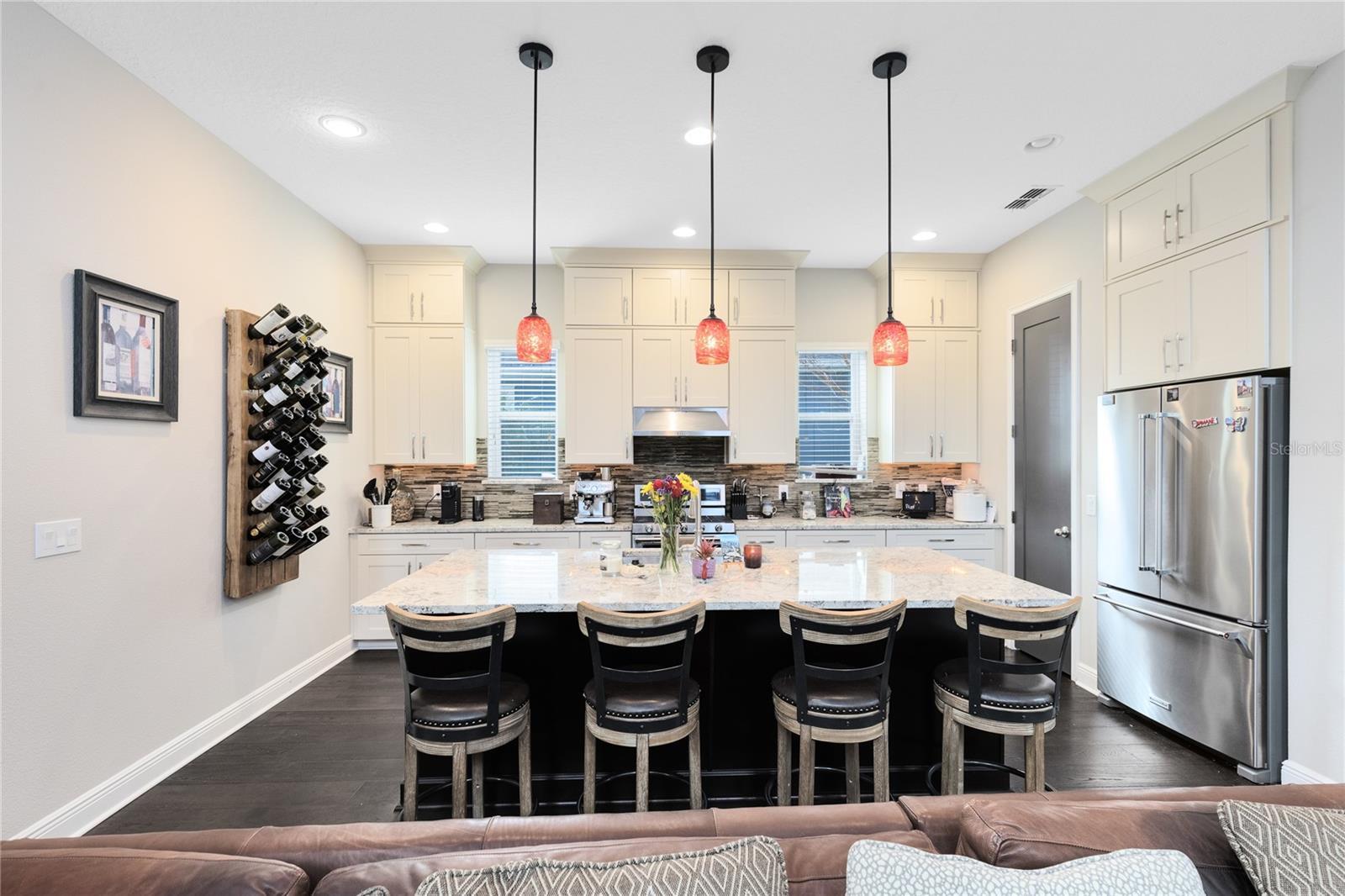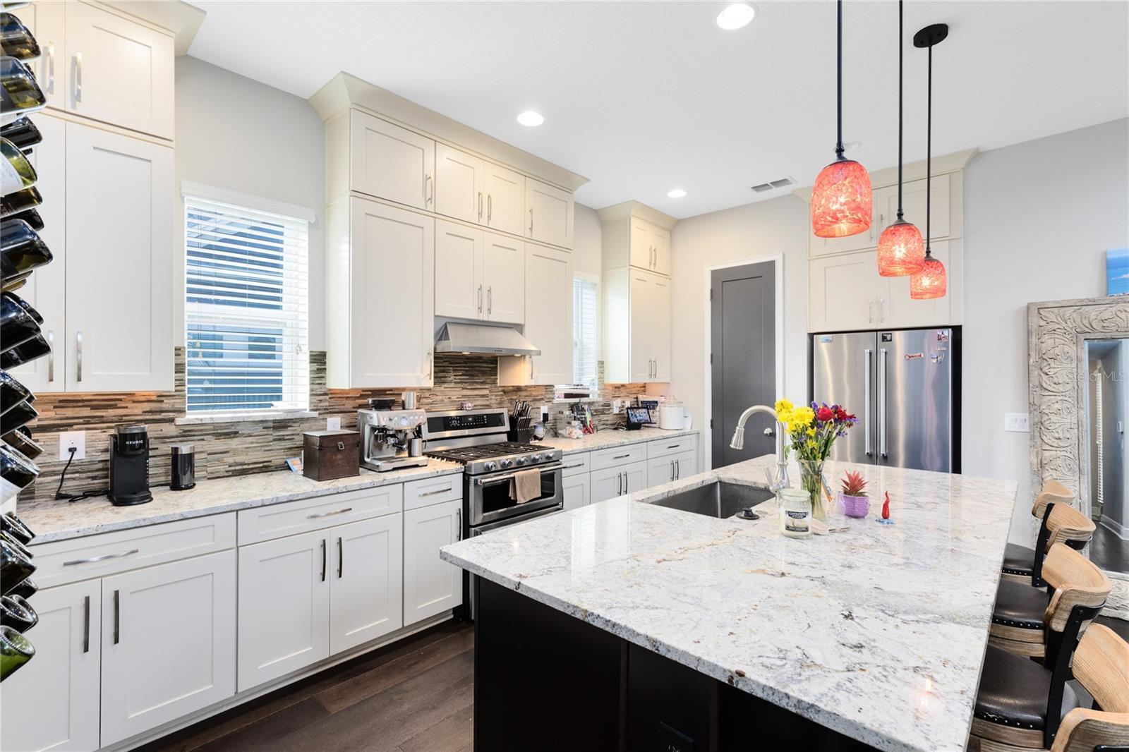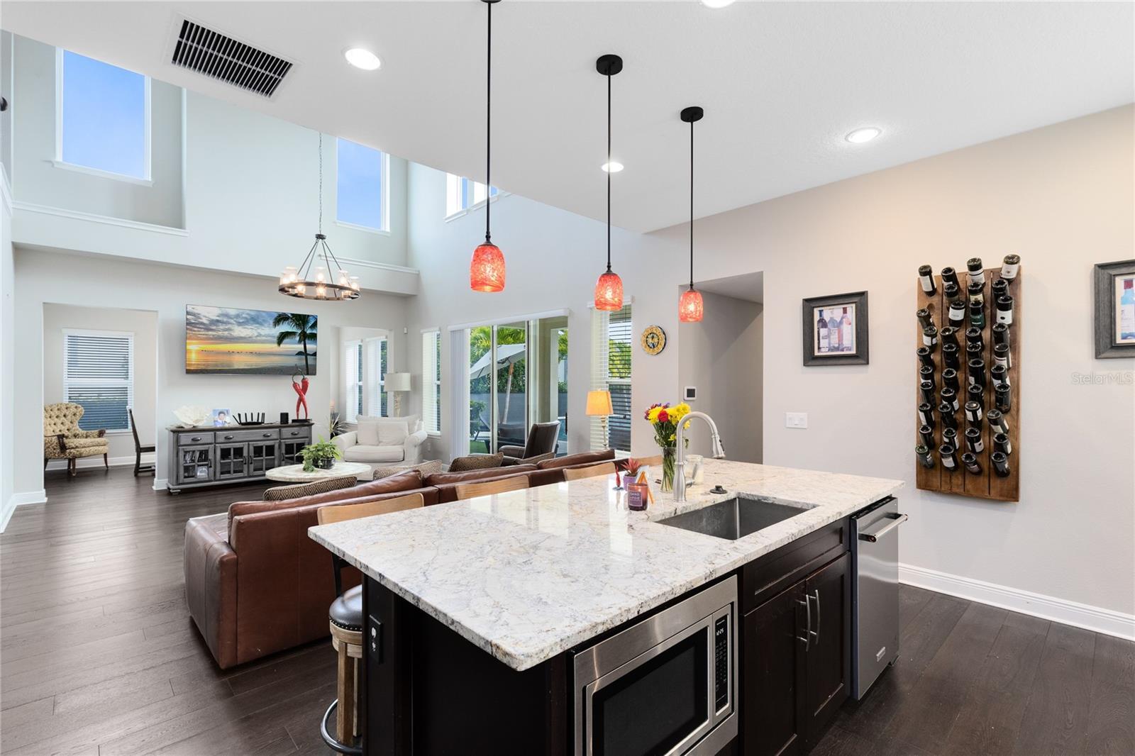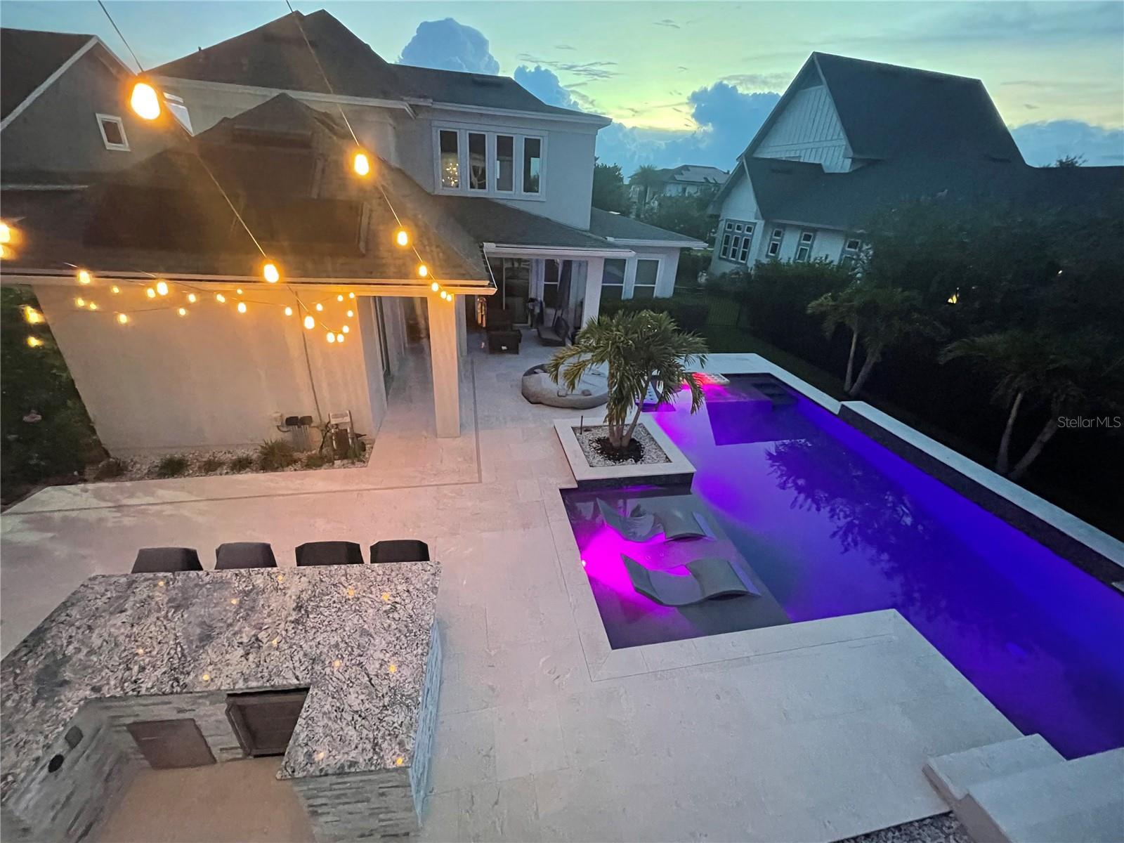 This stunning 4 bedroom, 3.5 bath pool home sits on an oversized lot in the heart of Laureate Park in Lake Nona and offers 2,755 square feet of thoughtfully designed living space. Currently owner occupied, the home features a bright open floor plan with soaring two story ceilings, expansive windows, and rich wood flooring throughout the main living areas. The first floor includes a spacious family room that flows seamlessly into the chef inspired kitchen featuring a large island with seating, stone countertops, upgraded cabinetry, stainless steel appliances, built in oven and cooktop, statement pendant lighting, and excellent sightlines for entertaining. Sliding glass doors connect the main living area to the covered patio and an exceptional private backyard retreat. The first floor primary suite offers a peaceful escape with a custom accent wall, crown molding, ceiling fan, and a spa inspired bathroom with dual vanities, stone counters, a large walk in shower with rain shower head, and a walk in closet. Upstairs, a generous loft provides flexible living space ideal for a second family room, media area, or work from home setup and includes access to a private balcony overlooking the front of the home. Three additional bedrooms and two full bathrooms complete the second level. The backyard is designed for resort style living and entertaining, featuring a custom pool with sun shelf and water features, multiple lounge areas, fire pit seating, a covered patio, and a fully equipped outdoor kitchen with stone counters and grill, all surrounded by privacy landscaping and modern hardscape. Additional highlights include a dedicated home office, laundry room, crown molding, high ceilings, solar panels that help offset electric costs at no additional charge to the tenant, and two garage parking spaces within the rare three car garage. Laureate Park isn’t just a neighborhood, it’s a vibrant lifestyle. Enjoy the Aquatic Center, resort style pools, LP Fit gym, and over 44 miles of trails. Located in prime Lake Nona, minutes from Medical City, the VA hospital, Nemours, dining, and shopping, with easy access to Orlando International Airport, major highways, the USTA National Campus, Orlando theme parks, and Florida beaches.