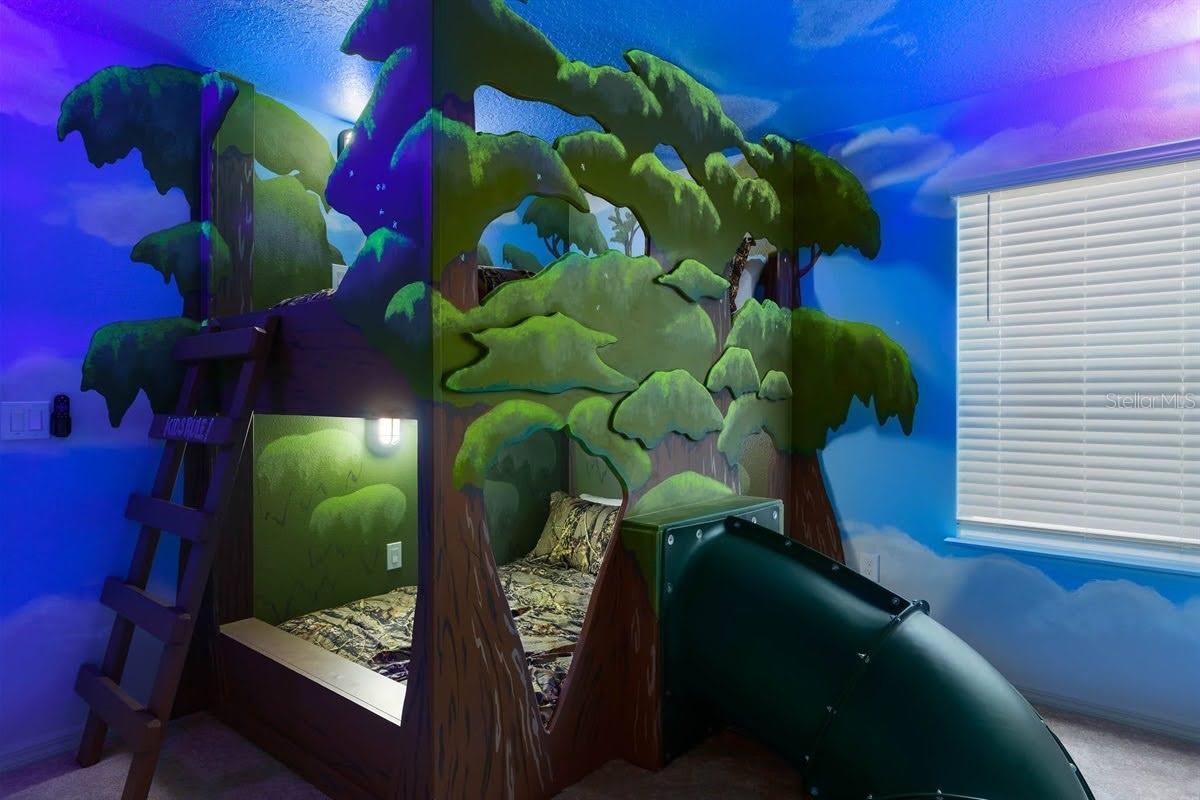 This exceptional 8-bedroom, 6-bath luxury home is located in the highly sought-after Windsor Island Resort, just minutes from Walt Disney World and Orlando’s top attractions. Designed with both comfort and income potential in mind, this spacious residence offers over 4,100 square feet of thoughtfully planned living space, making it ideal as a primary residence, second home, or high-performing vacation rental. The home features a bright, open-concept layout that seamlessly connects the living, dining, and kitchen areas—perfect for entertaining large groups. The gourmet kitchen is fully equipped with modern appliances, ample cabinetry, and an oversized island, offering both style and functionality. Multiple king suites provide hotel-level comfort, privacy, and upscale finishes, creating a true luxury experience for guests and owners alike. What truly sets this home apart is its thoughtful design inspired by the natural beauty and relaxed lifestyle of Central Florida. The home features a show-stopping slide from the second floor to the first, creating a fun and memorable experience for guests of all ages. Comfort was a top priority, with over $10,000 invested in an upgraded high-efficiency AC system and additional attic insulation to ensure consistent, energy-efficient cooling and heating throughout the entire home. Major improvements include a replaced dishwasher and refrigerator, as well as added plumbing and venting to accommodate a convenient double washer and dryer setup. All carpet is removed except in the room with the slide through the floor. Outdoors, enjoy the private saltwater pool—Ideal for unwinding after a full day enjoying Central Florida’s world-class attractions. For movie nights, the home features a private theater experience where guests can enjoy films indoors or watch a movie under the stars, blending luxury with unforgettable resort-style living. Outdoor theming continues around the pool area, creating a cohesive and visually stunning environment that enhances the overall guest experience. Step outside to your private outdoor oasis featuring a resort-style pool and spillover spa, perfect for unwinding after a day at the parks. The covered lanai and expansive deck provide ample space for lounging, dining, and enjoying Florida’s sunshine, all surrounded by thoughtfully designed poolside theming. The home is fully vacation-rental ready and has been meticulously maintained with exceptional attention to detail throughout. As part of Windsor Island Resort, owners and guests enjoy world-class amenities including a zero-entry pool, lazy river, water slides, splash pad, mini golf, fitness center, clubhouse, on-site dining, and more. With its prime location, luxury finishes, highly desirable Disney theming, and unmatched entertainment features, this home represents a rare opportunity to own a truly standout property in one of Central Florida’s premier resort communities.