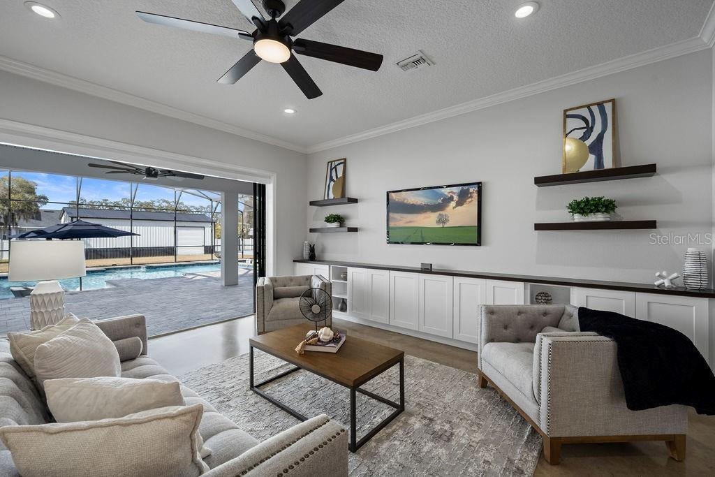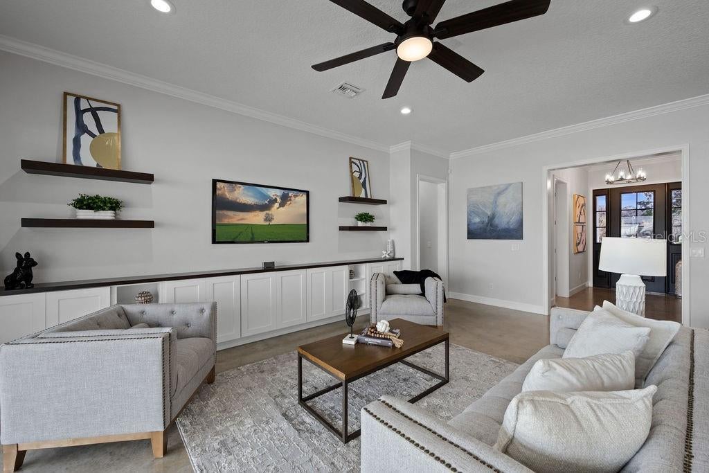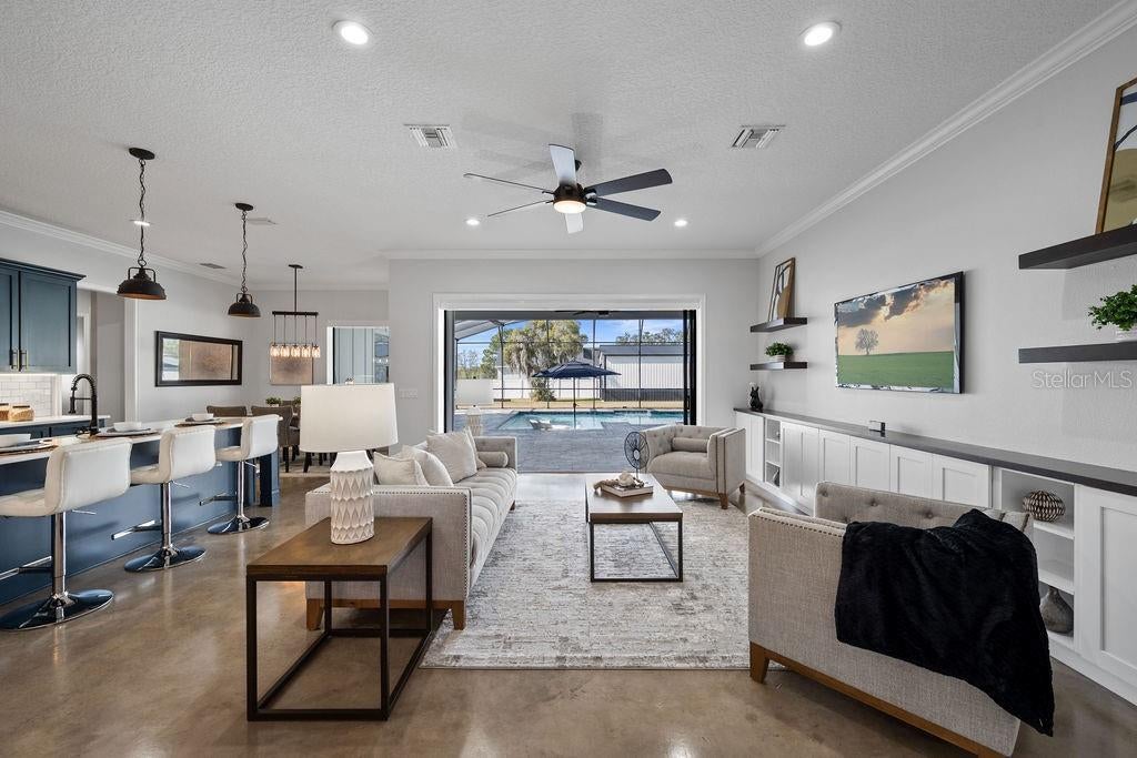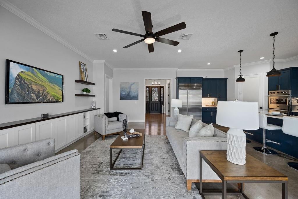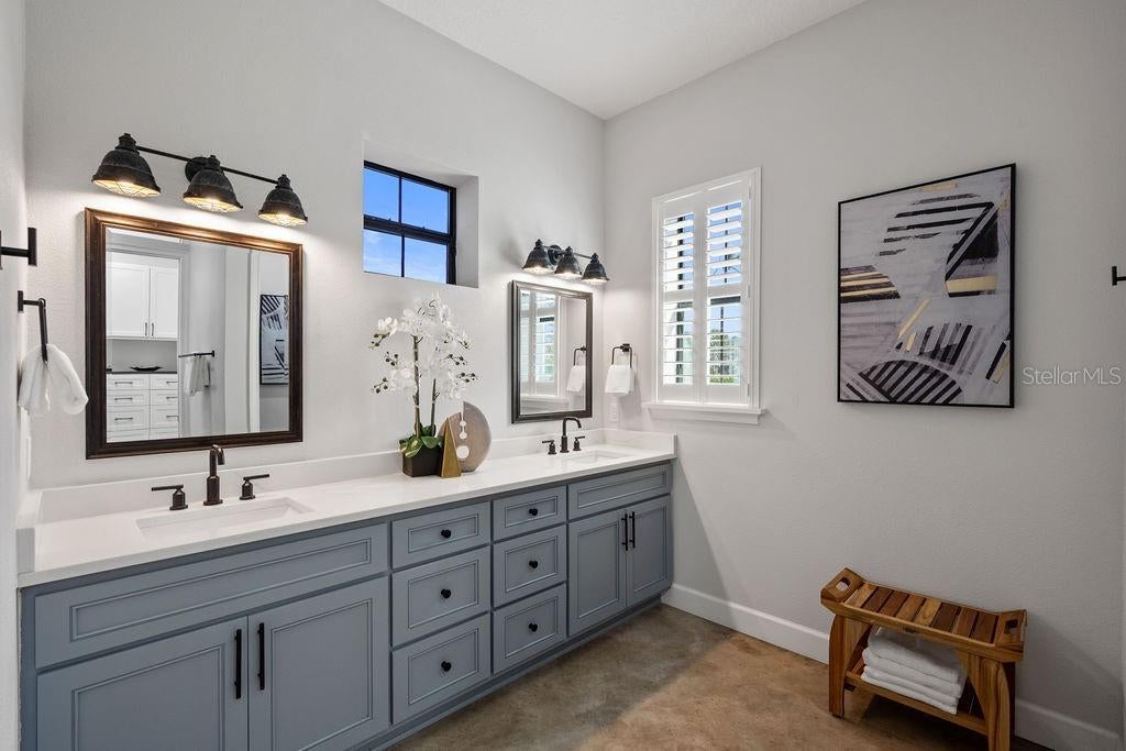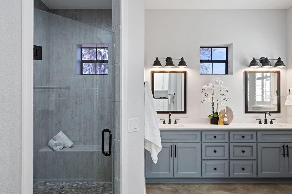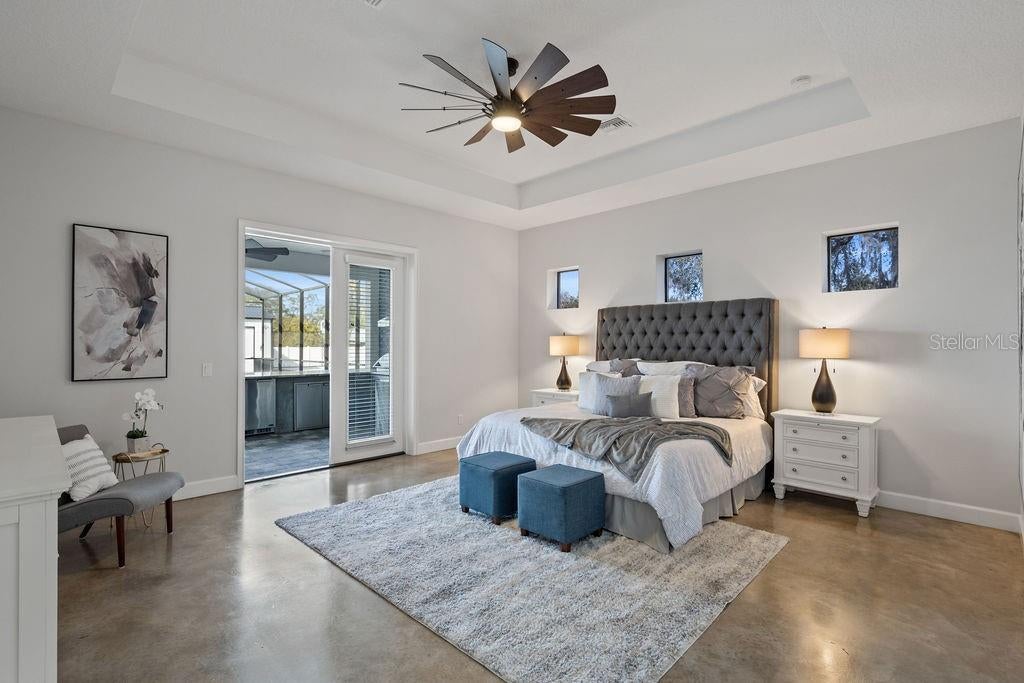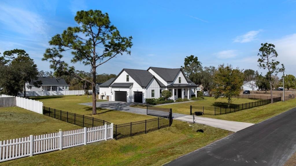 Welcome to your modern farm home estate. Meticulously designed incorporating nature, fitness and luxury. Entering through your private gates your eyes immediately fall upon the excellent craftsmanship that was put into this home. As soon as you come into your home, you’re welcomed by a plethora of natural lights that exude from the many windows, giving you a bright and airy ambience. Your newly polished concrete floors tie in perfectly with this home, providing you a modern take to this design. With the accessibility of the open floor plan, you come to your luxurious gourmet kitchen, which features 42-inch cabinets, Viking appliances, a subzero refrigerator and an enormous island with quartz countertops, perfectly overlooking your living room and your backyard oasis. Continuing through the home you come upon the master suite with its soaring tray ceilings, tinted picture windows, and private access to your backyard oasis. Your spa inspired master bathroom features dual sink vanities with beautiful quartz countertops and an enormous walk-in shower perfect to unwind from the stresses of everyday life. In addition to having an open floor plan, your split design provides you two additional guest bedrooms on the first floor both adorned with their private en-suite bathrooms. As a secret bonus upstairs, you have an enormous loft, an additional fourth bedroom with its private bath and an extra bonus room that’s already pre-plumbed for a wet bar perfect for a game room, wine room, or anything your heart desires. The Florida lifestyle would not be complete without features such as an enormous saltwater pool with volleyball netting and spectator seating or building memories around your fully equipped outdoor kitchen. As if all of this was not enough, for your avid fitness and sports lover, this estate comes with its own private 30x60 two hoop basketball court, and an enormous under a/c private gym, truly elevating your lifestyle to the fullest! And to top it all off, you could not be in a better location minute's away from restaurants, retail developments, expressways, the international airport, downtown, Central Florida’s very own lagoon, and so much more. Come and experience this one-of-a-kind masterpiece.