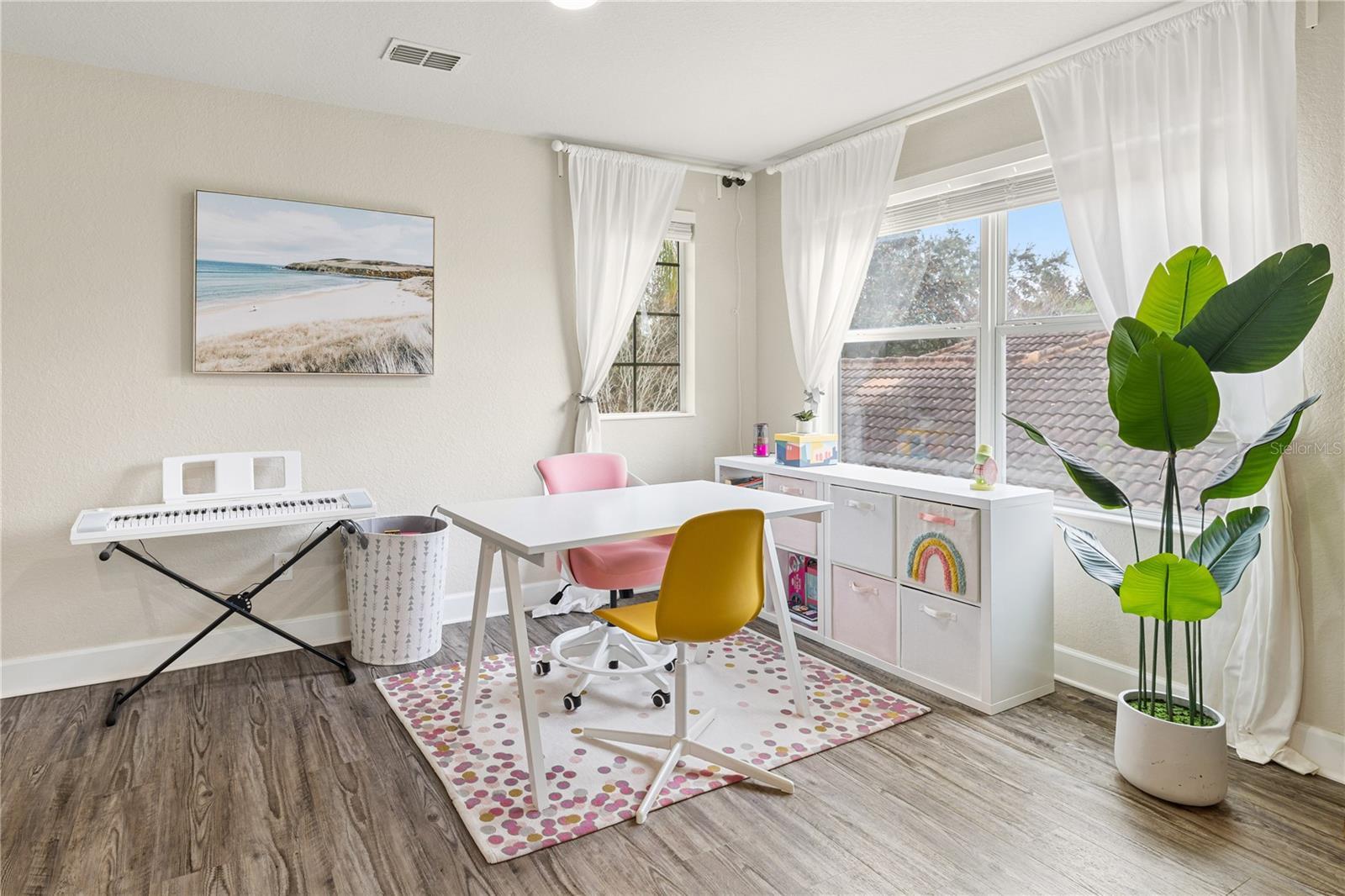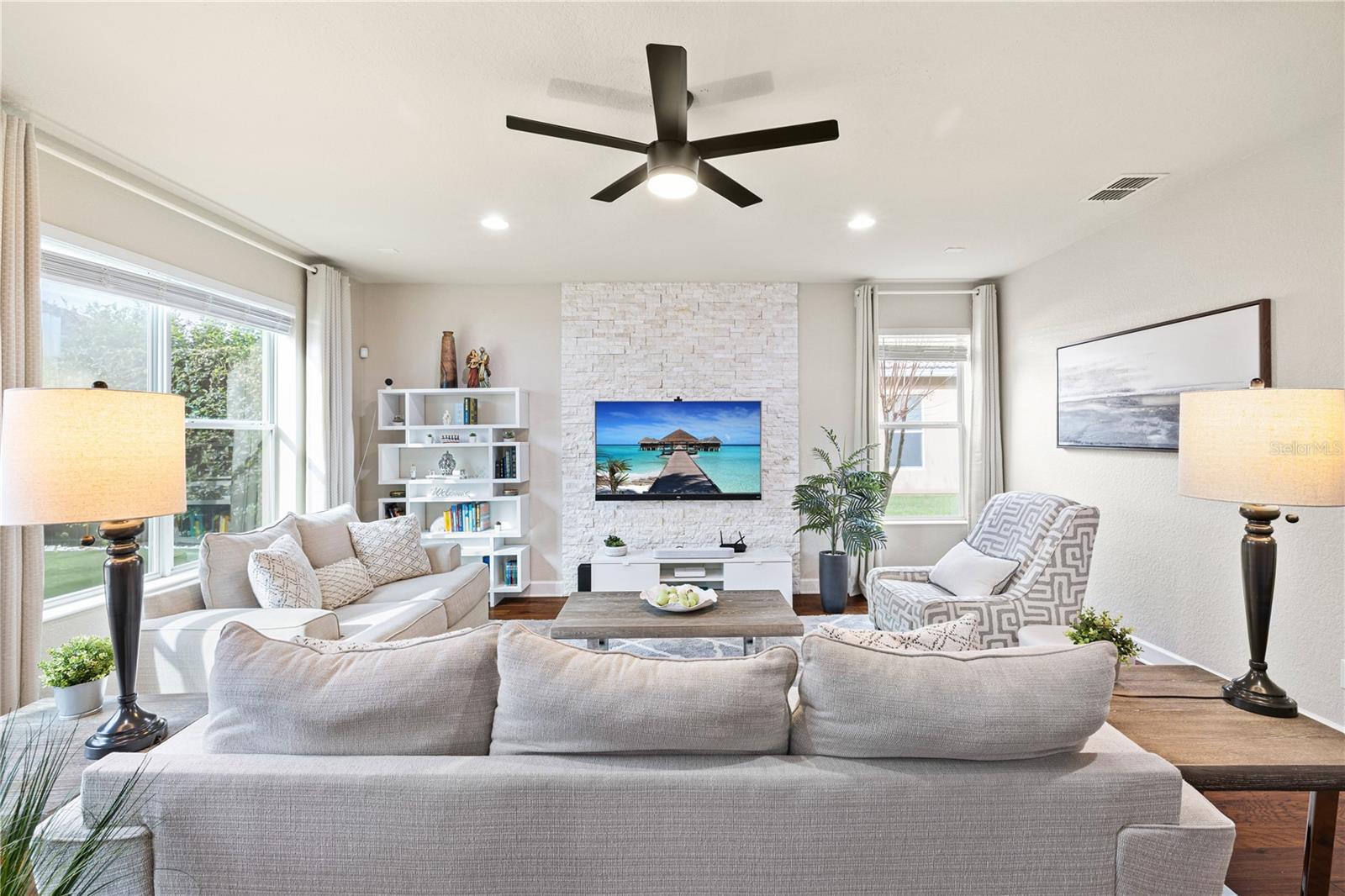 Luxurious Two-Story House with Spectacular Backyard Be enchanted by this beautiful two-story house, carefully designed to offer comfort, sophistication, and a complete lifestyle. The residence has 4 bedrooms, 3 full bathrooms, and a 3-car garage, ideal for those seeking space, functionality, and elegance. The property features large windows that guarantee excellent natural lighting and enhance the view, as well as ceiling fans in several rooms. The living room and dining room feature elegant wood floors, while the bedrooms have vinyl flooring, providing comfort and practicality. The already installed curtains and well-planned design complement the spaces with charm and harmony. At the entrance, a charming covered veranda, framed by a beautiful garden, creates a welcoming and sophisticated reception area. The house follows the desired open concept, promoting perfect integration between the social spaces. The kitchen is a true highlight, equipped with granite countertops, high-quality wood cabinets, and all stainless steel appliances, ideal for both everyday use and entertaining guests. An impressive backyard: The outdoor area was carefully planned to offer beauty, comfort, and leisure. The spacious backyard features impeccable landscaping, a syntetic turf, and excellent use of space. Sliding doors connect the interior of the house to a large covered veranda, creating a perfect environment for outdoor meals, gatherings with friends, or relaxing family moments. A true private retreat, ideal for enjoying the best of Florida's climate. The bedrooms are spacious and well-distributed, all with generous closets. Upstairs, the property also features a versatile loft, perfect for a home office, TV room, or living space. The house also has an equipped laundry room, adding even more practicality to daily life. Located in a gated community, this residence offers excellent amenities, such as: Community pool Children's playground Clubhouse Walking paths All this in a prime location, close to schools, markets, restaurants and the city's main conveniences. A complete home, with a charming backyard and ready to move in. Schedule your visit and fall in love!