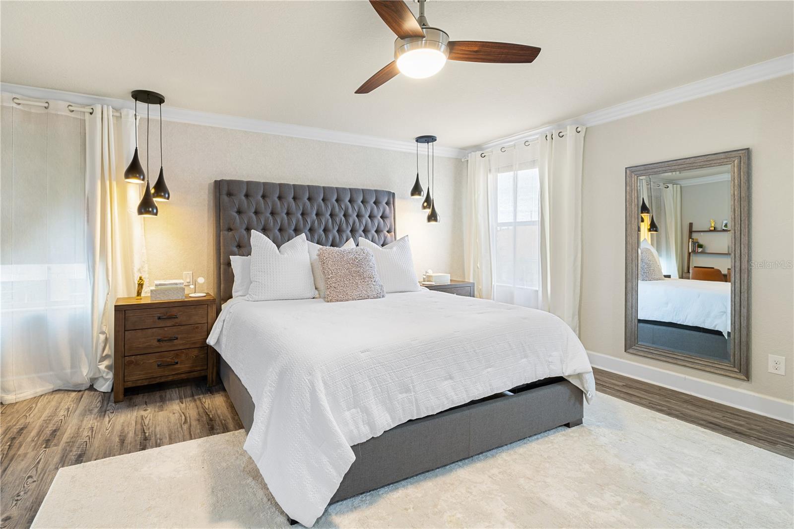 - Ceiling Fans(s), Eat-in Kitchen, Living Room/Dining Room Combo, Open Floorplan, PrimaryBedroom Upstairs, Solid Wood Cabinets, Stone Counters, Thermostat, Walk-In Closet(s)