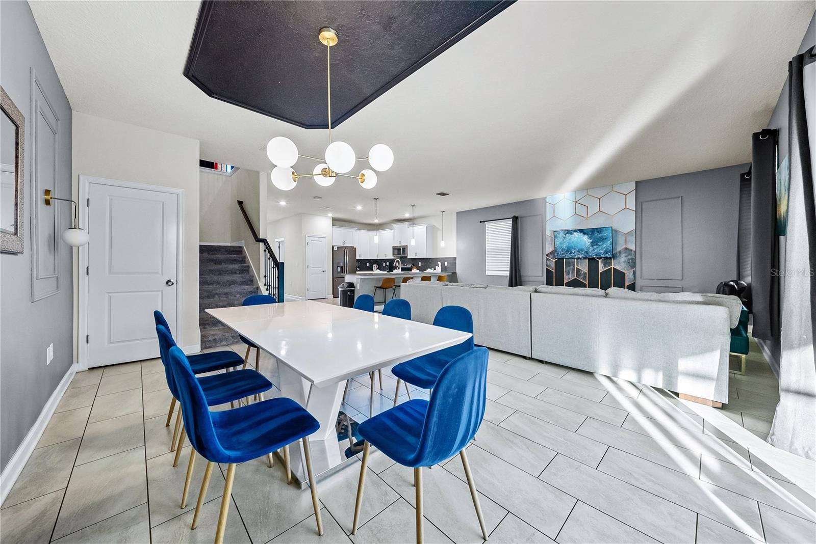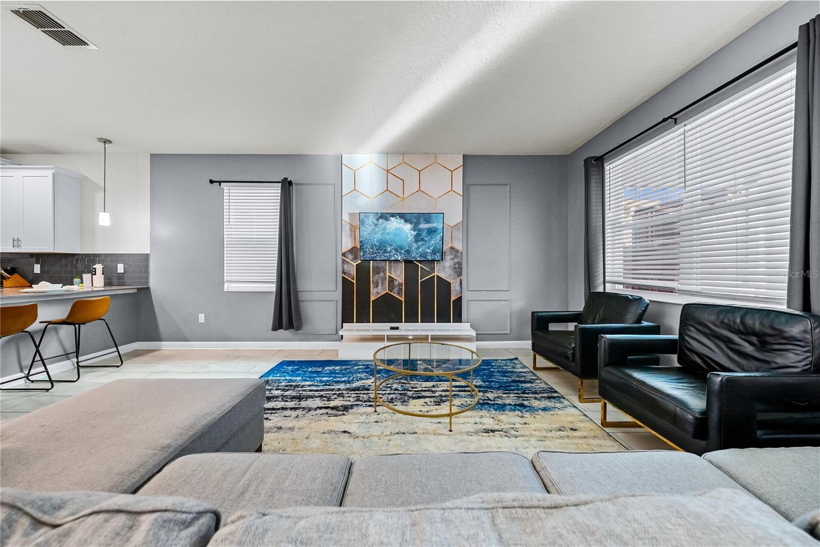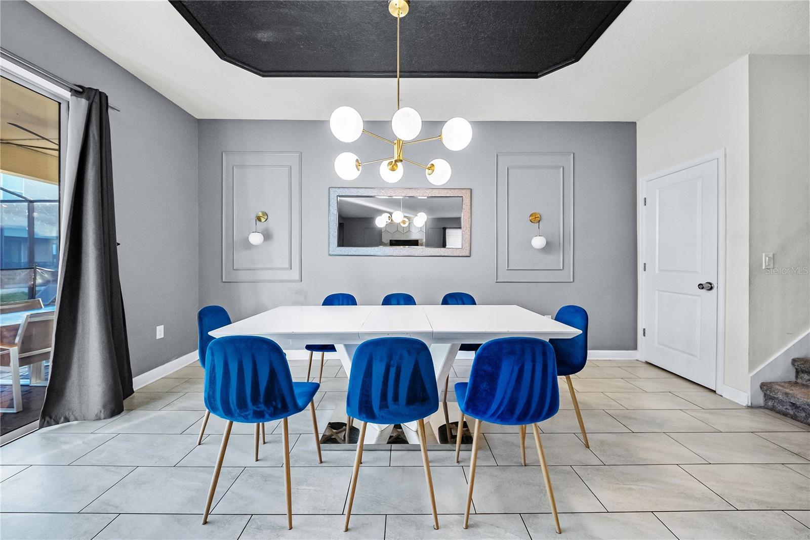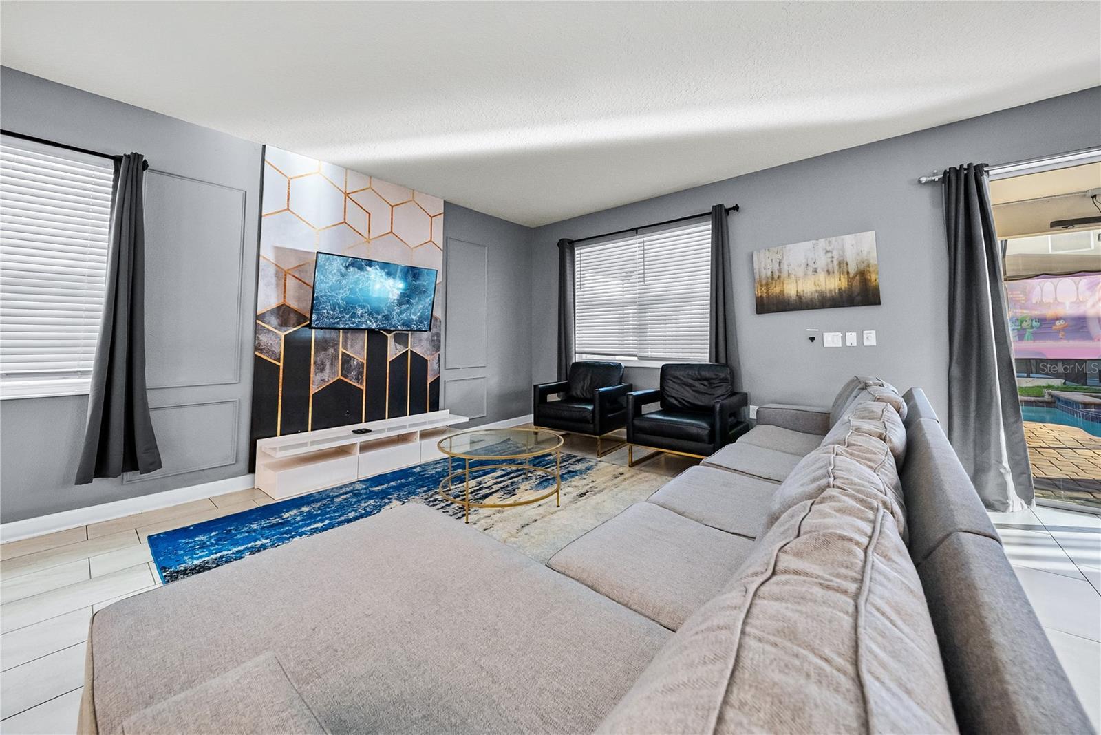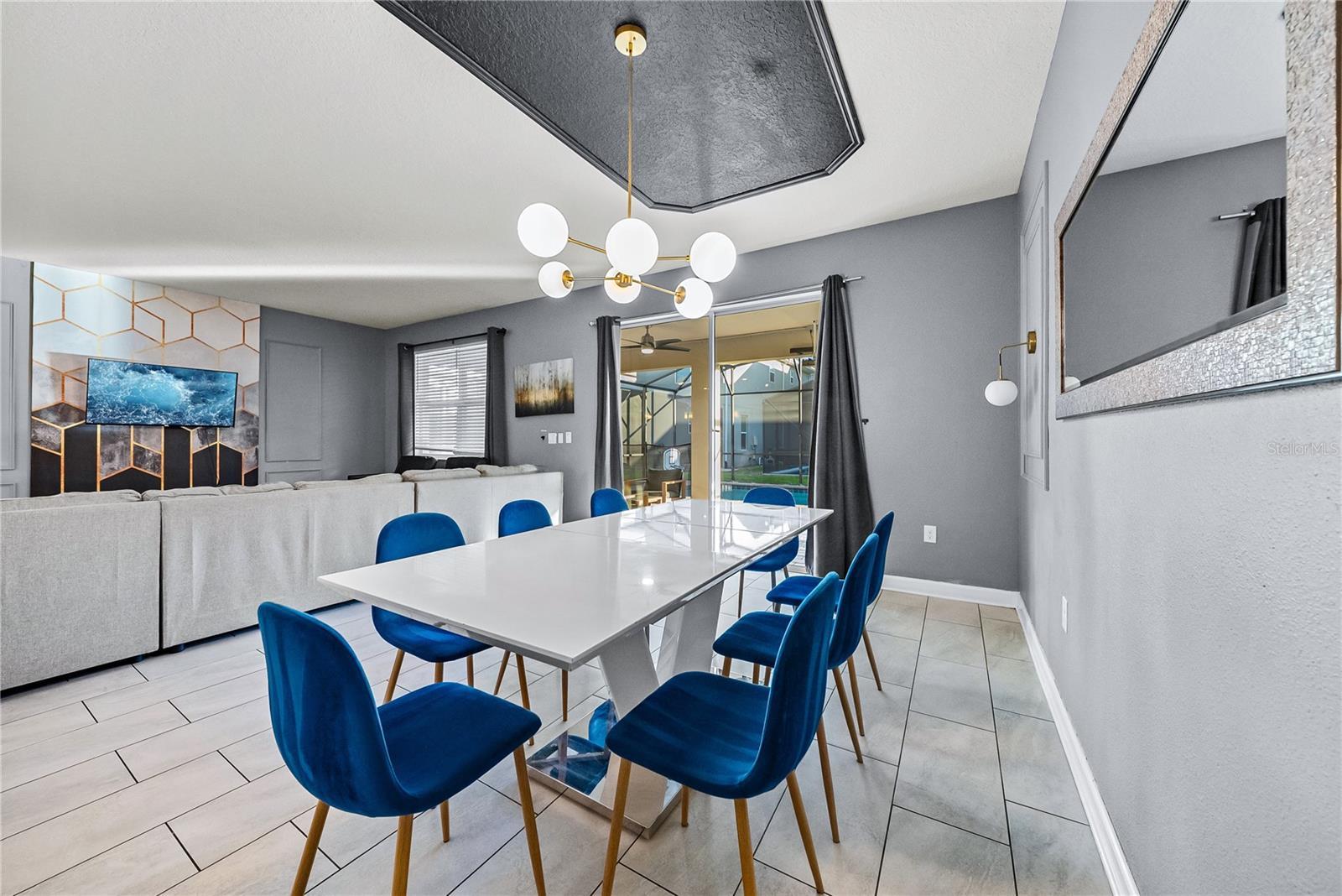 Spectacular 8-bedroom, 5-bath vacation home located in the highly desirable Storey Lake Resort, offering an unbeatable location near Orlando’s major attractions, shopping, and dining. This sought-after Santiago model, the largest and most popular floor plan in the community, is a proven income-producing property and is being sold fully furnished and turn-key. The home features a well-balanced and functional layout designed to comfortably accommodate large groups, making it ideal for multi-generational stays or short-term rental use. The first floor welcomes you with an inviting foyer and includes a full bedroom, a spacious kitchen with large breakfast bar and pantry, and open living and dining areas enhanced by modern finishes and quartz countertops throughout. Sliding glass doors lead to a covered patio and screened private pool, creating seamless indoor-outdoor living. The main level also includes a custom themed game room equipped with a VR machine, while upstairs you’ll find a spacious loft/media area, additional themed spaces, and a conveniently located laundry room. The second level features the remaining bedrooms and bathrooms, offering ample privacy for guests. A private movie theater and thoughtfully designed themed bedrooms further elevate the guest experience and rental appeal. Storey Lake Resort offers exceptional amenities, including a resort-style clubhouse, fitness center, water park with slides and lazy river, tiki bar, playgrounds, and basketball, volleyball, and tennis courts. Located approximately 4 miles from Walt Disney World and minutes from Universal Studios, SeaWorld, and major highways, this property delivers both lifestyle and investment potential. Property management information and rental financials available upon request. An excellent opportunity for investors or buyers seeking a high-performing vacation rental in one of Central Florida’s most sought-after communities.