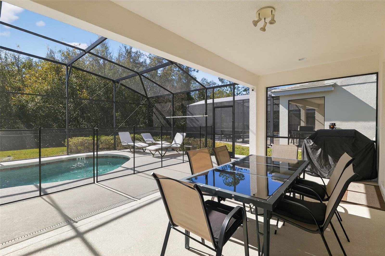 Welcome to 4577 Cabello Loop, an exceptional 6 bedroom, 6.5 bathroom property located in the highly desirable Bella Vida Resort in Kissimmee. Built in 2019 and purchased directly from the builder, this home has been lightly and occasionally used by owners who reside abroad, resulting in an immaculate, like-new condition. Designed for both comfort and short-term rental appeal, the home features six spacious en-suite bedrooms, plus a convenient half bathroom on the first floor with access to the pool area. The open-concept living space is enhanced by high ceilings and abundant natural light, creating a bright and welcoming atmosphere. The owners further elevated the property with modern upgrades, including high-gloss marble-style ceramic tile flooring, a large kitchen island with seating, and contemporary finishes throughout. The kitchen flows seamlessly into the dining and living areas, ideal for entertaining large groups. Step outside to your private screened-in pool, complete with BBQ grill and outdoor dining area—perfect for enjoying Florida living year-round. The backyard backs onto a peaceful wooded area, offering privacy with no rear neighbors or foot traffic. All bathrooms feature spacious walk-in glass box showers, a highly desirable feature for guests and extended stays, the primary bedroom ensuite features shower heads on both sides. Bella Vida Resort offers gated security, clubhouse, resort-style amenities, and a prime location just minutes from theme parks, shopping, dining, and major highways. This property is ideal as a high-performing vacation rental, second home, or primary residence. A rare opportunity to own a modern, well-maintained home in one of Kissimmee’s most sought-after resort communities. Schedule your showing today!