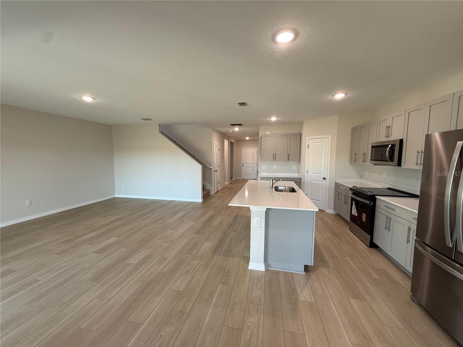 - High Ceilings, Kitchen/Family Room Combo, Open Floorplan, PrimaryBedroom Upstairs, Stone Counters, Thermostat, Walk-In Closet(s)
