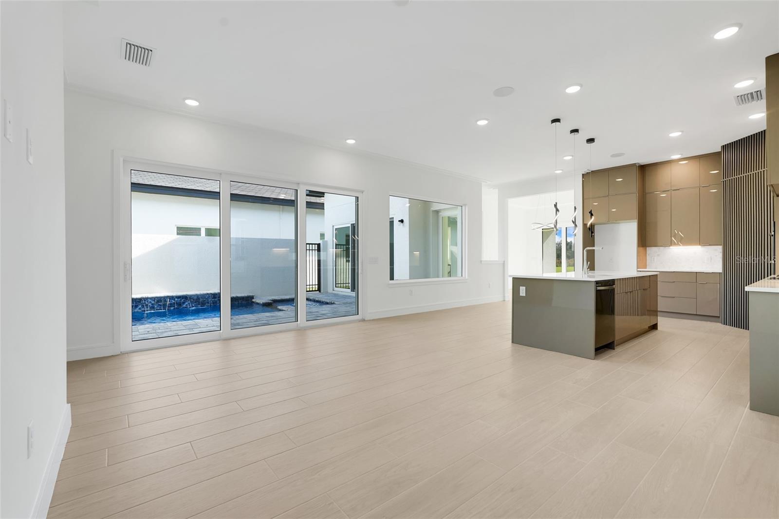 - Crown Molding, High Ceilings, Kitchen/Family Room Combo, Open Floorplan, Smart Home, Solid Surface Counters, Walk-In Closet(s)