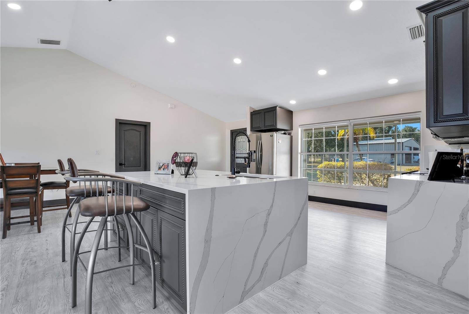 Stunning lakefront retreat on over 6.5 acres (4+ high and dry) in the heart of Groveland! This beautifully updated 3-bedroom, 2-bath home offers the perfect blend of privacy, comfort, and modern waterfront living. The interior has been completely remodeled with ceramic tile throughout, a brand-new kitchen featuring rich wood cabinetry and quartz countertops, and both the primary and guest bathrooms masterfully updated with contemporary finishes. Enjoy expansive living spaces filled with natural light and peaceful views of Lake Stewart. Step outside to a screened-in pool and spa, spacious paver patio, and your own dock and boat launch—ideal for boating, fishing, and unforgettable sunsets. A large detached storage garage/workshop provides ample space for boats, tools, and hobby projects, making this property truly versatile. With no HOA and acres of land, there is room to expand, build, or simply enjoy wide-open space and privacy. Located just minutes from Groveland’s exciting new downtown development, restaurants, shopping, trails, and waterfront parks, this home offers the rare combination of peaceful country living with convenient access to modern amenities. Additional highlights include vaulted ceilings, split-bedroom floor plan, updated fixtures, and a newer roof. Whether you’re searching for a full-time residence, weekend lake escape, or private retreat, this exceptional property delivers the very best of Florida lakefront living.