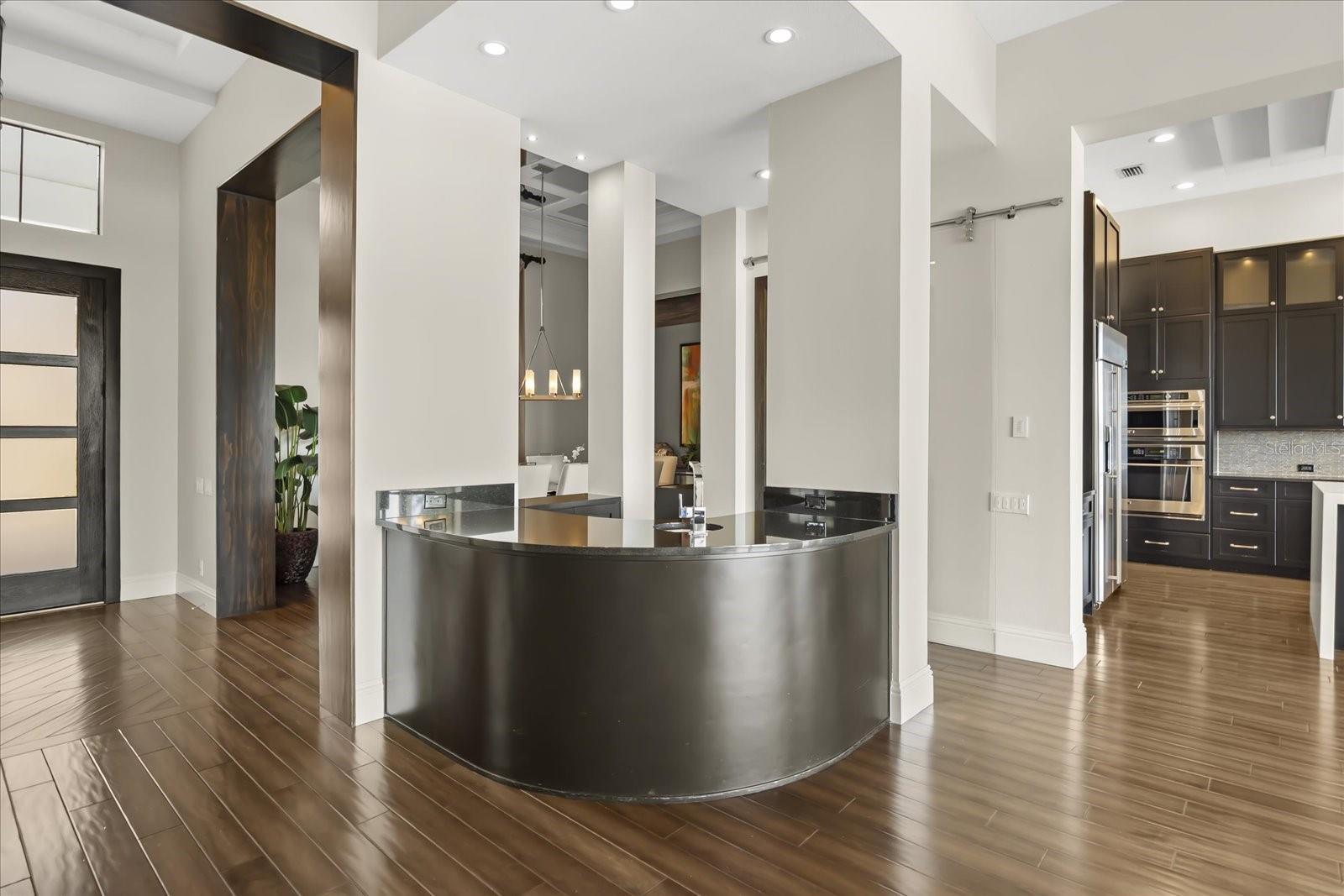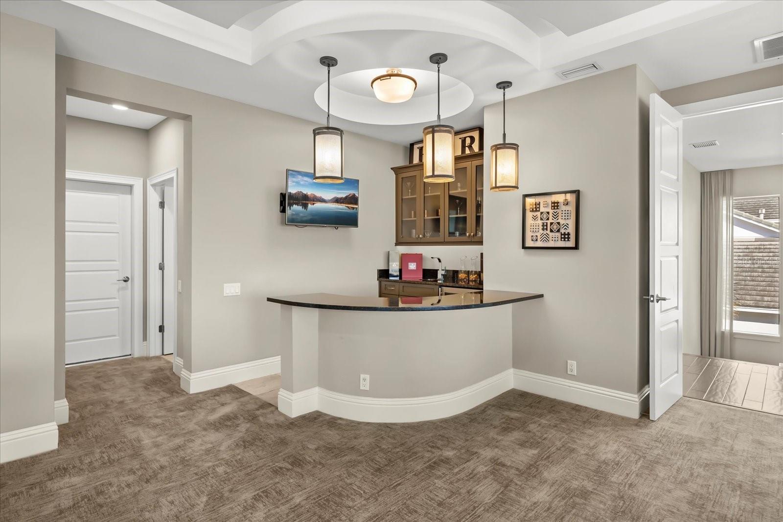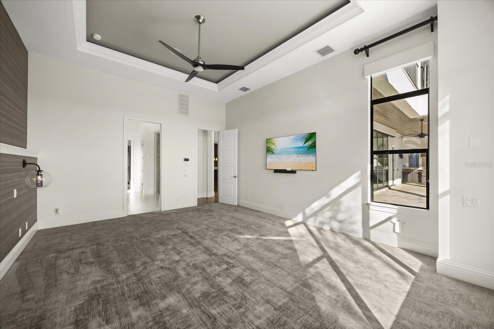 - Built-in Features, Ceiling Fans(s), Coffered Ceiling(s), Eat-in Kitchen, High Ceilings, Kitchen/Family Room Combo, Open Floorplan, Primary Bedroom Main Floor, Smart Home, Solid Surface Counters, Solid Wood Cabinets, Split Bedroom, Stone Counters, Walk-In Closet(s)