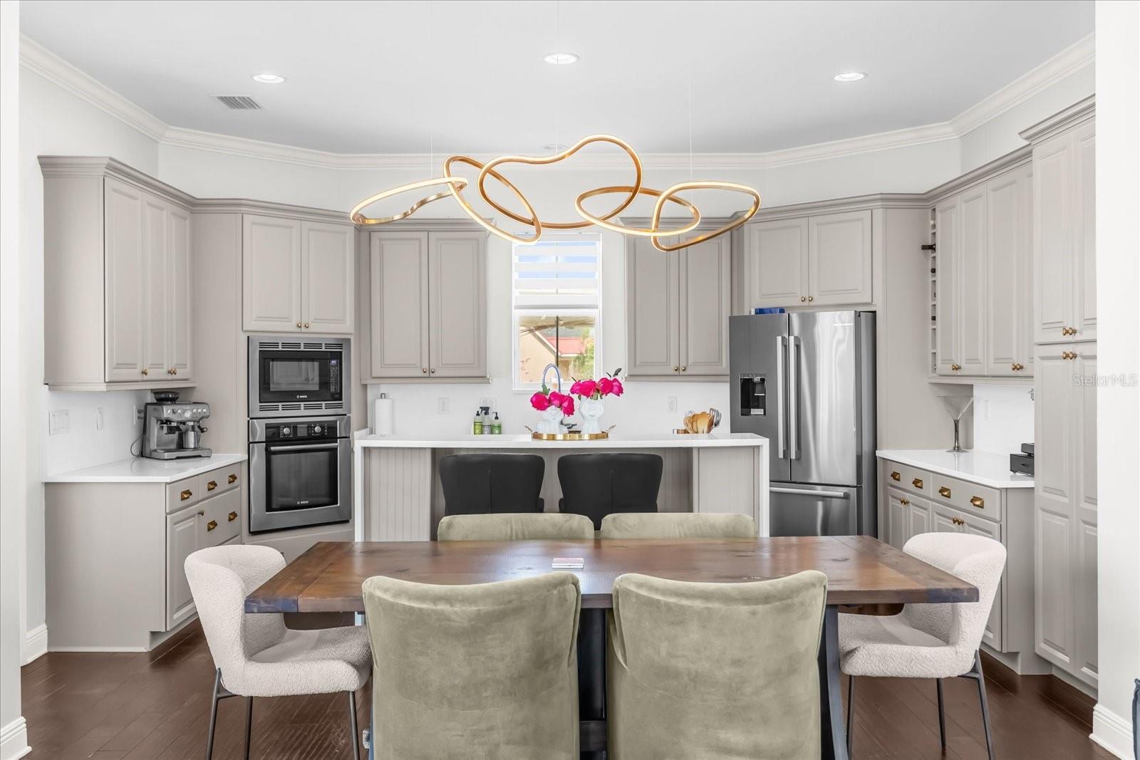 - Accessibility Features, Ceiling Fans(s), Crown Molding, Elevator, High Ceilings, Kitchen/Family Room Combo, Open Floorplan, PrimaryBedroom Upstairs, Solid Wood Cabinets, Stone Counters, Thermostat, Walk-In Closet(s), Window Treatments
