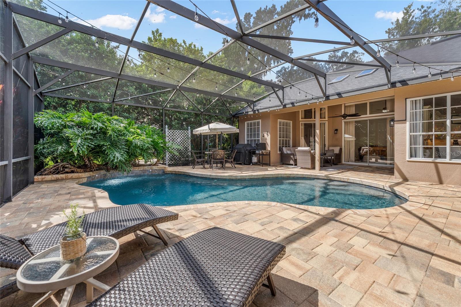 This beautiful 4 bedroom home has been lovingly maintained and thoughtfully updated. Updated kitchen, new roof, new hot water tank and more. Oversized primary suite with seating area and 3 additional bedrooms on the other side of the home. Vaulted ceilings with skylights in the kitchen. Out back is a stunning lagoon style pool with screen enclosure. Centrally located near major roadways, schools, restaurants and more.