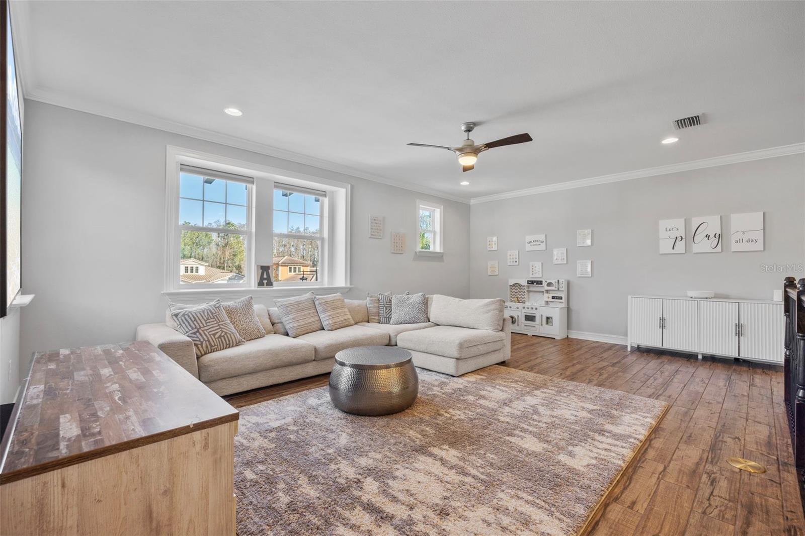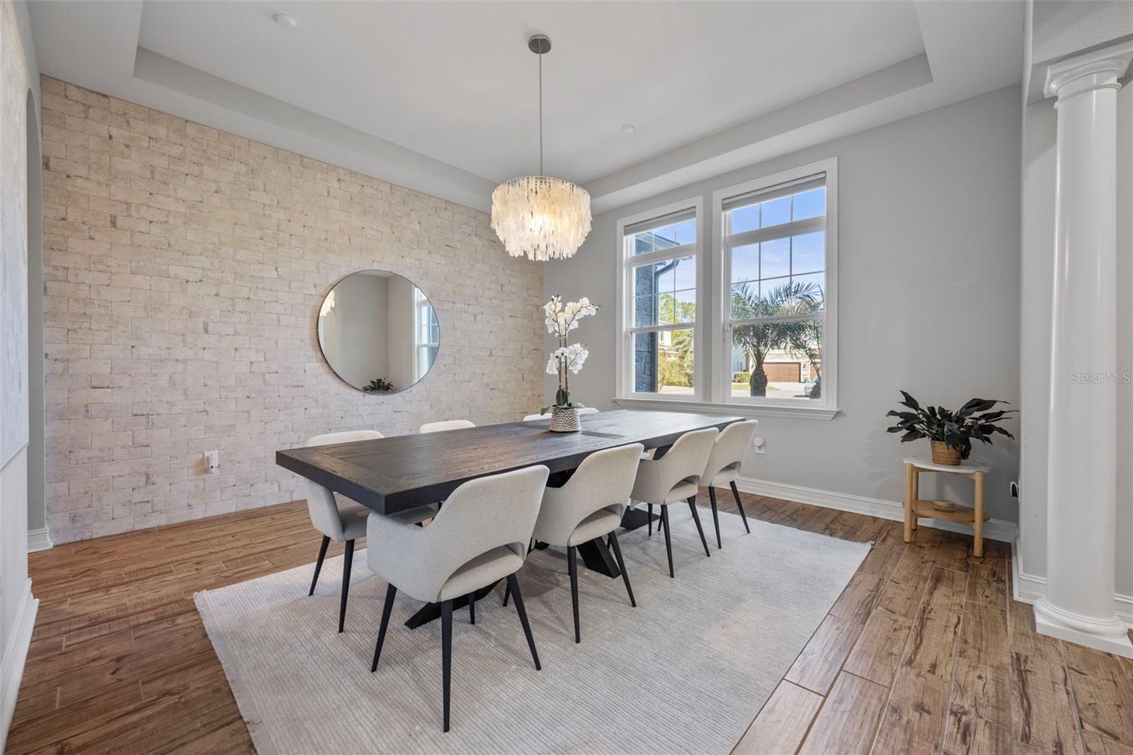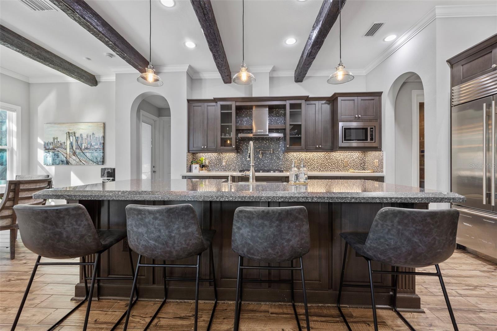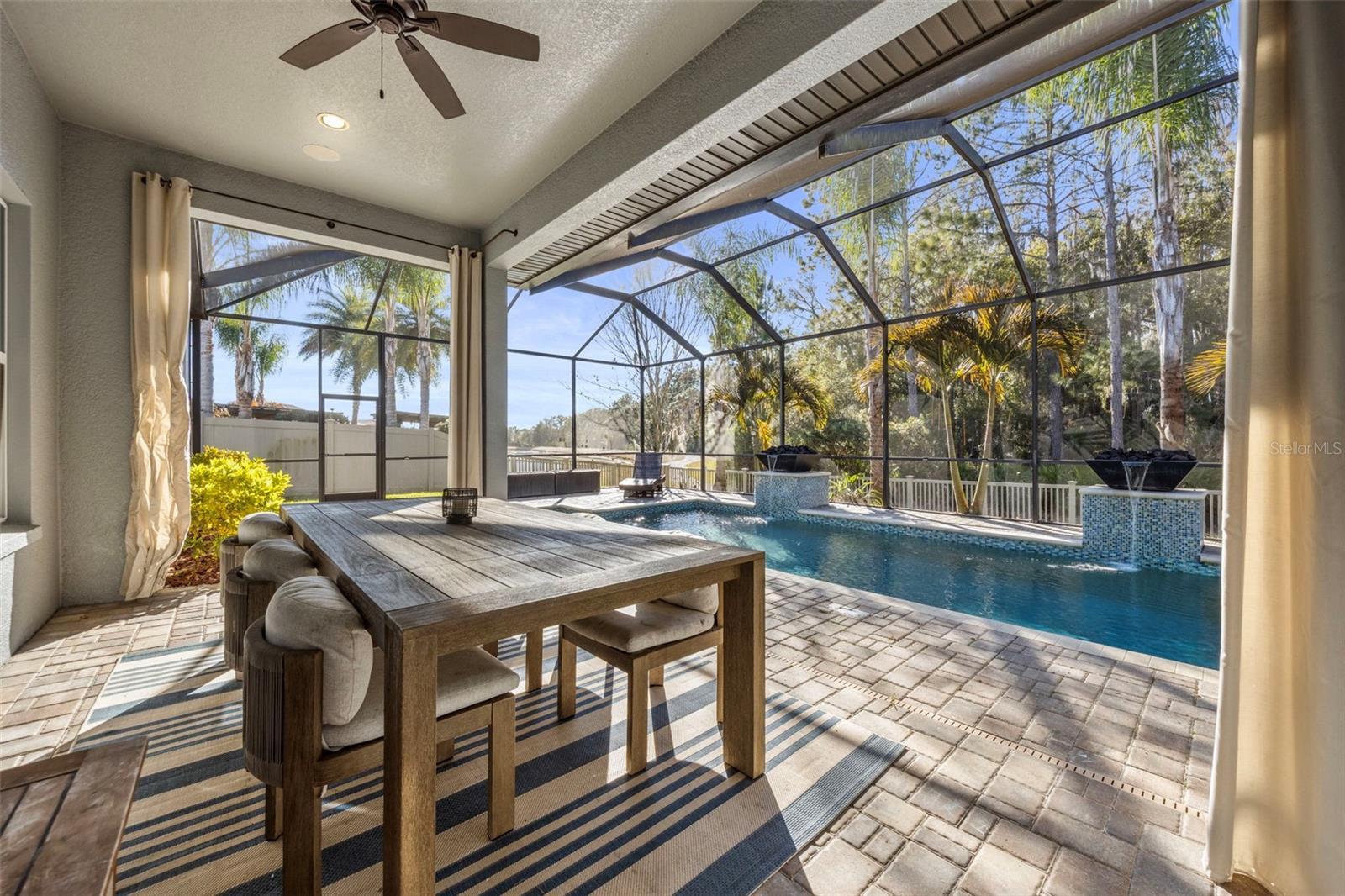 Picture-perfect and privately positioned on a cul-de-sac, this exceptional luxury residence offers resort-style living in the gated community of Toscana at Estancia in Wesley Chapel. The fully fenced oversized private backyard is a true oasis, featuring a heated saltwater pool within a screened enclosure, putting green and wooded conservation views with a pond, and unmatched privacy. No streets or alligators in this backyard! A striking European-style stone elevation, paver driveway, and custom cast-iron front door set the tone as you enter. Inside, soaring two-story ceilings and an open, light-filled floor plan create an elegant yet inviting atmosphere. The grand family room showcases a floor-to-ceiling sand brick fireplace with custom shelving and expansive picture windows. The gourmet kitchen is a chef’s dream, appointed with stainless steel appliances, double ovens, a Sub-Zero refrigerator, quartz countertops, solid wood cabinetry, custom tile backsplash, and rich wood ceiling beams. A formal dining room with a stone accent wall provides the perfect setting for entertaining. The spacious owner’s retreat features a double tray ceiling, spa-inspired bath with quartz countertops, garden tub, oversized walk-in shower, and a large custom walk-in closet. An additional first-floor bedroom with full bath offers flexibility for guests or multigenerational living. Upstairs, a rich wood staircase leads to a large open loft, three generously sized bedrooms, and two full bathrooms. French doors open to the paved lanai, where the deep-blue heated saltwater pool is enhanced by two lava fire water bowls and a putting green to take the stress away after a long day - enjoying a serene yet impressive outdoor living space. Additional highlights include an oversized three-car split garage, whole-home water softener, dual Reme Halo in-duct LED air purifiers, and numerous premium upgrades throughout. Residents of this premier community enjoy a 7,000-square-foot clubhouse with a junior Olympic-sized resort pool, fitness center, tennis and basketball courts, playground, dog park, scenic nature trails, and more. Conveniently located near shopping, dining, hospitals, ice rink, top-rated schools, and major highways including I-75 and I-275. Schedule your private showing today and experience luxury living at its finest.
