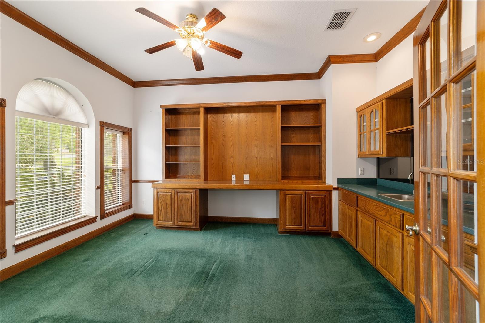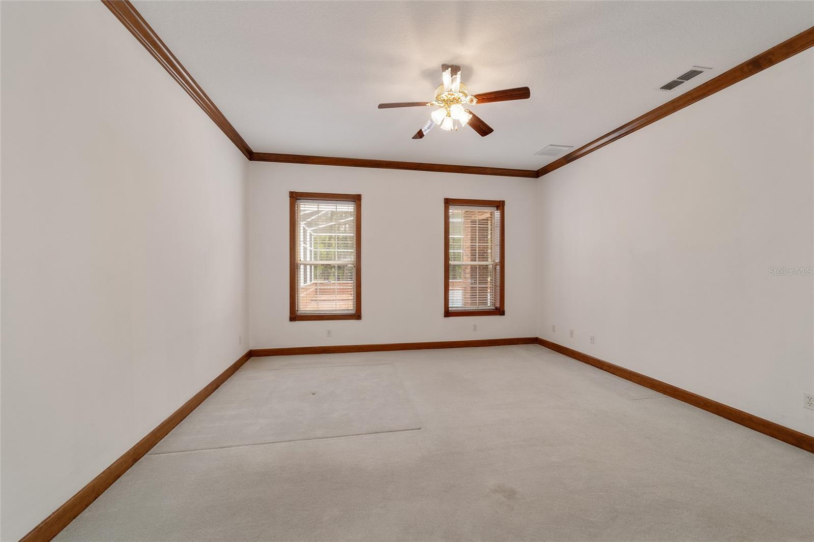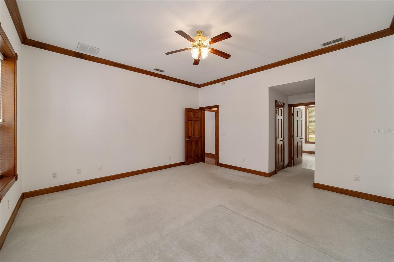 - Built-in Features, Ceiling Fans(s), Crown Molding, Eat-in Kitchen, Primary Bedroom Main Floor, Solid Surface Counters, Walk-In Closet(s), Window Treatments