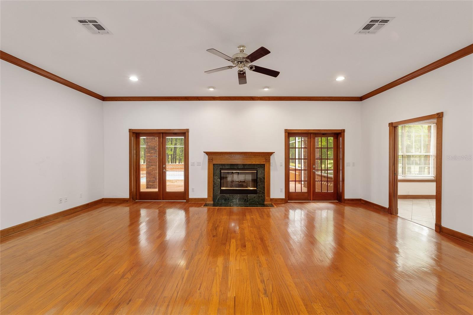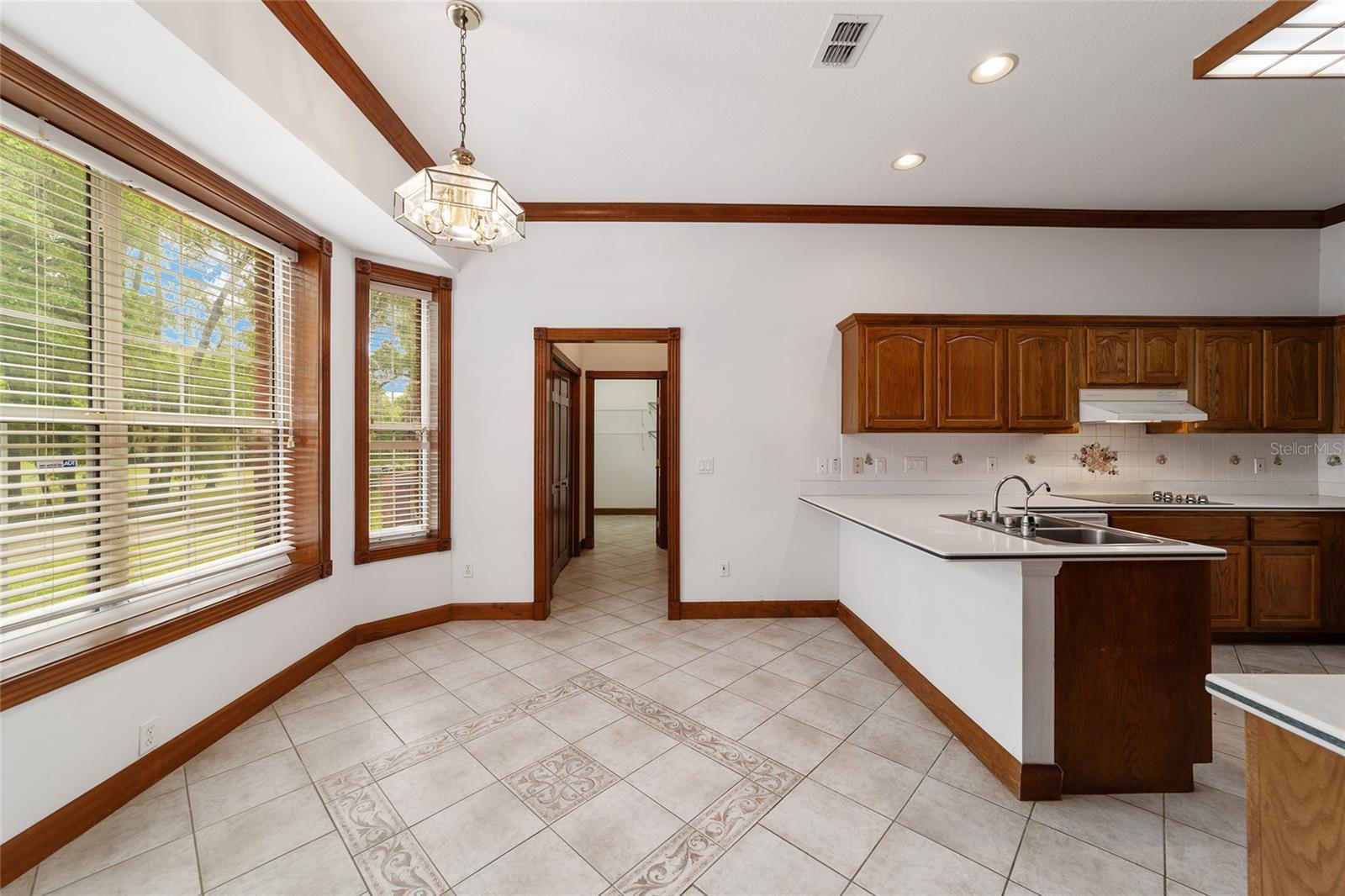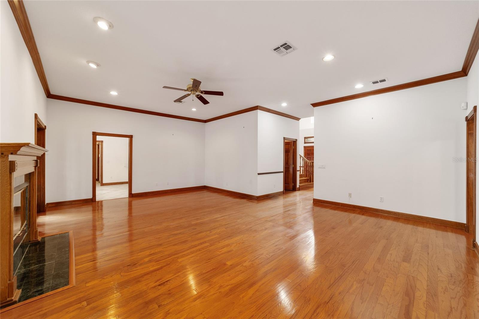 - Built-in Features, Ceiling Fans(s), Crown Molding, Eat-in Kitchen, Primary Bedroom Main Floor, Solid Surface Counters, Walk-In Closet(s), Window Treatments