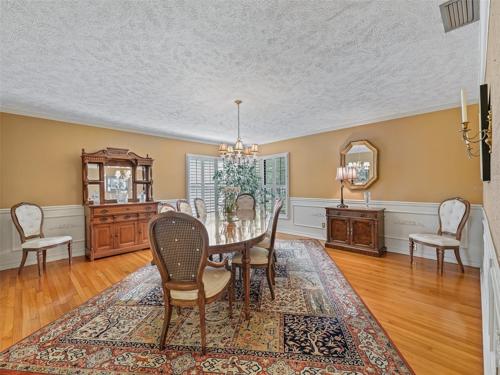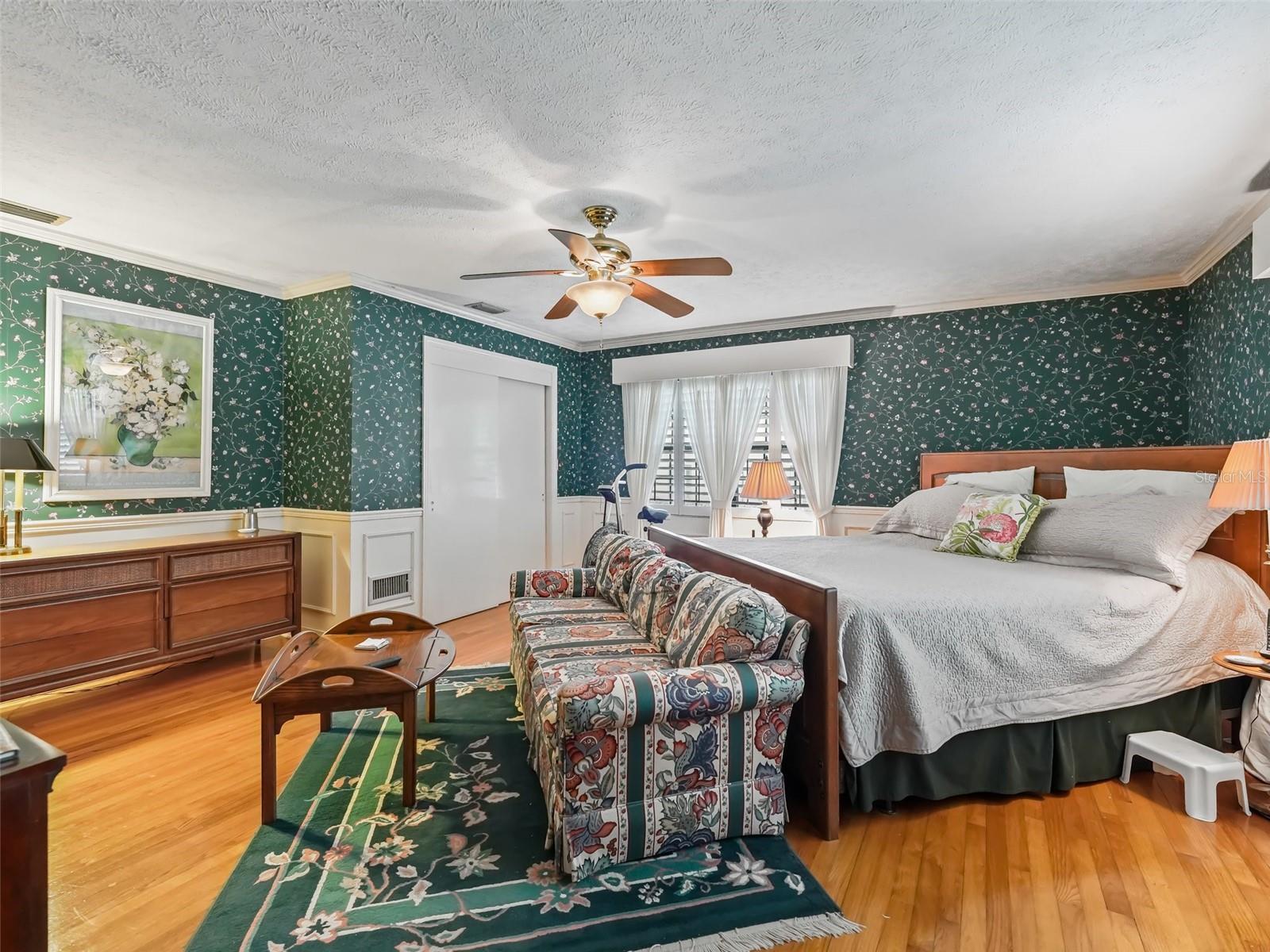 - Ceiling Fans(s), Crown Molding, Eat-in Kitchen, L Dining, Open Floorplan, Primary Bedroom Main Floor, Solid Surface Counters, Solid Wood Cabinets, Thermostat, Walk-In Closet(s)