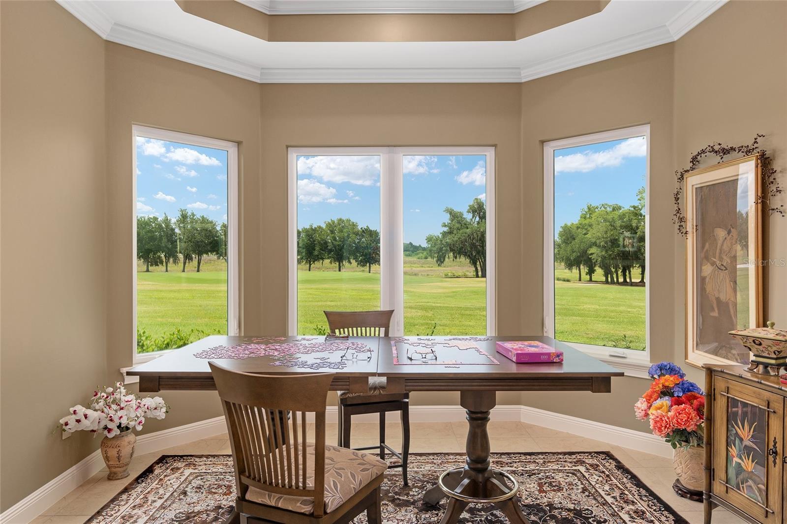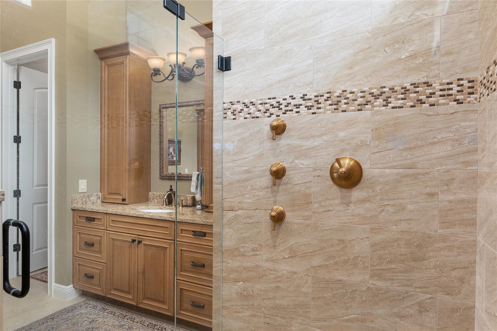 Your Golf and Equestrian home awaits in the Exclusive Golden Ocala Golf and Equestrian Club adjacent to the World Equestrian Center! Don’t miss this masterfully designed custom home featuring 3 bedrooms and 3.5 bathrooms, a spacious home office (could also be an 4th bedroom), outdoor living space and patio overlooking the golf course. The beautiful kitchen is designed for entertaining with a large center island for gathering around, built in gourmet appliances and an enormous walk in pantry. Just off the kitchen is a large dining area. The kitchen opens up to the spacious living area, complete with a stately fireplace and sliding glass doors opening to the spectacular views of the golf course. The master suite is spacious and boasts large walk in closets with built in storage and cabinet systems. The master bathroom features his and her vanities and a large shower. Your guests will enjoy their suites complete with walk in closets, and beautifully appointed baths. Enjoy the huge, private office space overlooking the course and landscape that can also serve as a 4th bedroom with a large walk in closet space. The home has many features including 12ft ceilings, beautiful trim and woodwork, Energy efficient with high performance low-E windows, spray foam insulation, and a high efficiency HVAC system by Rheem. Outside you’ll find a brick paver driveway, extensive landscaping, and a 3 car garage, perfect for storing any vehicles or toys you may have. Meticulous thought went into every detail of this home. Don’t miss this special opportunity to own a better than new home in Golden Ocala!
