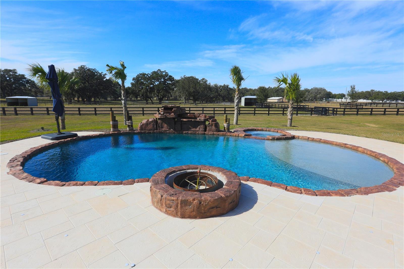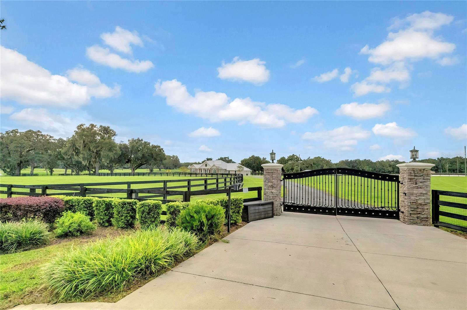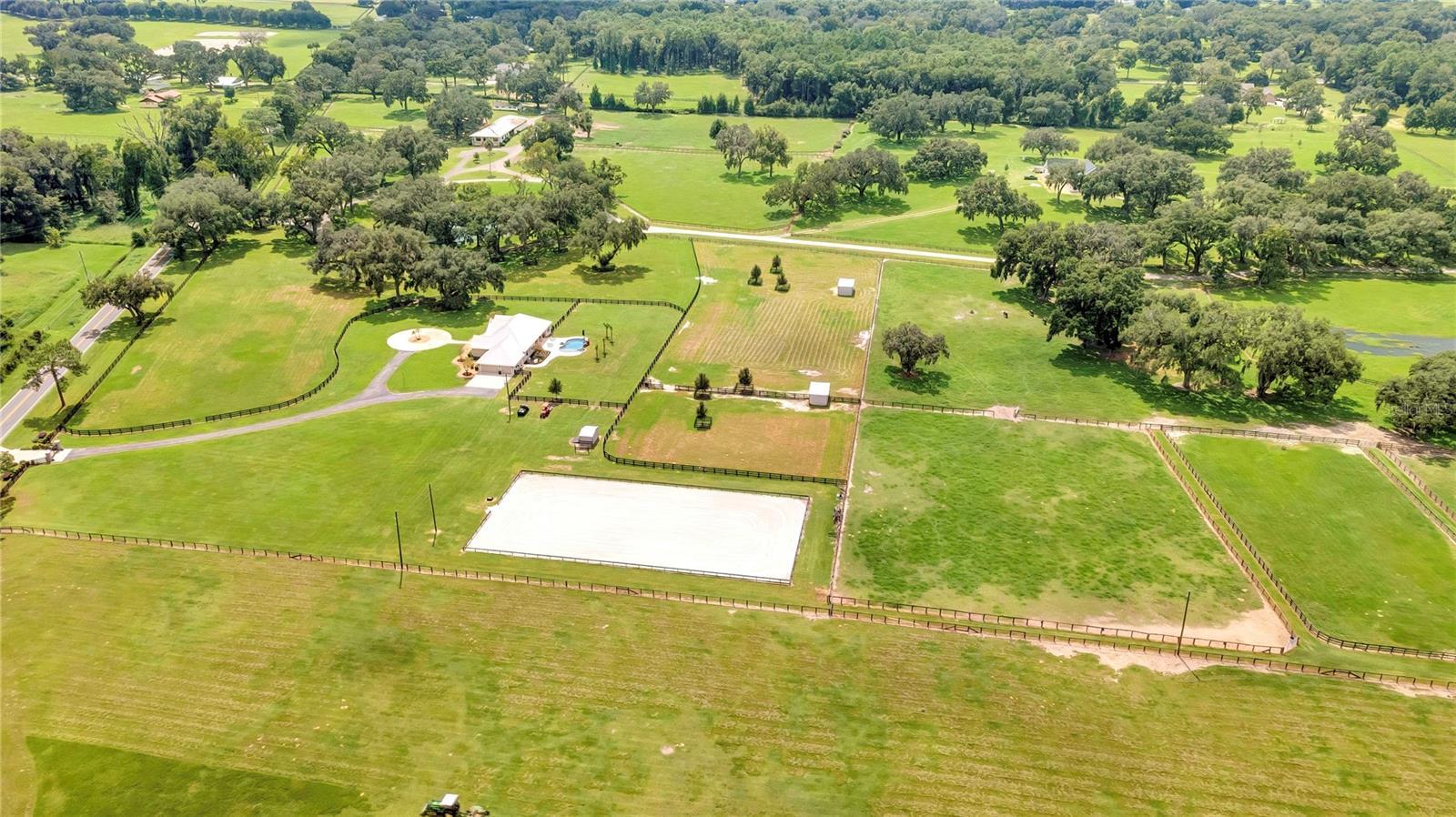 DEEDED GREENWAY ACCESS TO THE FLORIDA GREENWAYS AND TRAILS - Unlock the door to unparalleled living with this extraordinary estate nestled on over 10 acres of pristine Central Florida countryside. This is not just a home; it is a statement of luxury living designed for those who demand the absolute best in both style and equestrian. This stunning property offers the perfect blend of luxury living and equestrian amenities designed to provide serenity and function. A custom electric gate welcomes you as you drive to the elegant circular driveway that greets you at the residence. At the center of this magnificent property lies a beautifully crafted 4-bedroom, 3.5-bath home, thoughtfully surrounded by exquisite landscaping. Inside, the open, split-bedroom design is enhanced by soaring cathedral ceilings, creating a refreshing and spacious ambiance. Expansive windows invite natural light into every corner while offering spectacular views of the surrounding landscape. The main living area boasts a striking floor-to-ceiling stacked stone gas fireplace, complemented by charming wood-beamed ceilings. French doors seamlessly connect you to the expansive back patio, perfect for outdoor relaxation or entertaining. For culinary enthusiasts, the eat-in kitchen is a dream come true, featuring modern stainless-steel appliances, custom wood cabinetry, and generous counter space that includes an island, along with a cozy breakfast nook. The bonus is the Generac whole-house generator and two propane tanks. The Starlink hardware and ring will remain also. Indulge in the owner's suite, a haven for tranquility, featuring two spacious walk-in closets with custom shelving and an en-suite luxurious bathroom complete with dual vanities, a walk-in shower, and a garden tub for ultimate relaxation. If you love hosting gatherings, the expansive back patio will not disappoint. It offers a large, covered area with plenty of space for seating, a full summer kitchen, a built-in fire pit, and inviting outdoor lighting, ensuring enjoyment both day and night. Adding to the enjoyment is a heated saltwater pool, spa, and waterfall with a self-cleaning system. For equestrian enthusiasts, the property boasts a new, 100 x 200 all-weather arena with perimeter rails and a built-in watering system, making it perfect for training and riding year-round. Three fully fenced pastures with high-quality three-rail no-climb fencing. There are also two open barns totaling four stalls, each with corner feeders. Additional outbuildings include a feed and tack barn with a wash rack to accommodate all your equestrian needs. Beautiful Spanish Moss-draped oaks surround the property, adding charm and tranquility to the landscape. This property also presents many opportunities for horse enthusiasts, with the potential to create the barn of your dreams and set up paddocks. Additionally, you will have recorded access to the extensive Florida Greenway trail system, providing convenient riding access to the nearby Florida Horse Park! This Central Florida estate offers an unparalleled opportunity to experience luxury living, privacy, and equestrian excellence. Do not miss the chance to make this exceptional property your own!